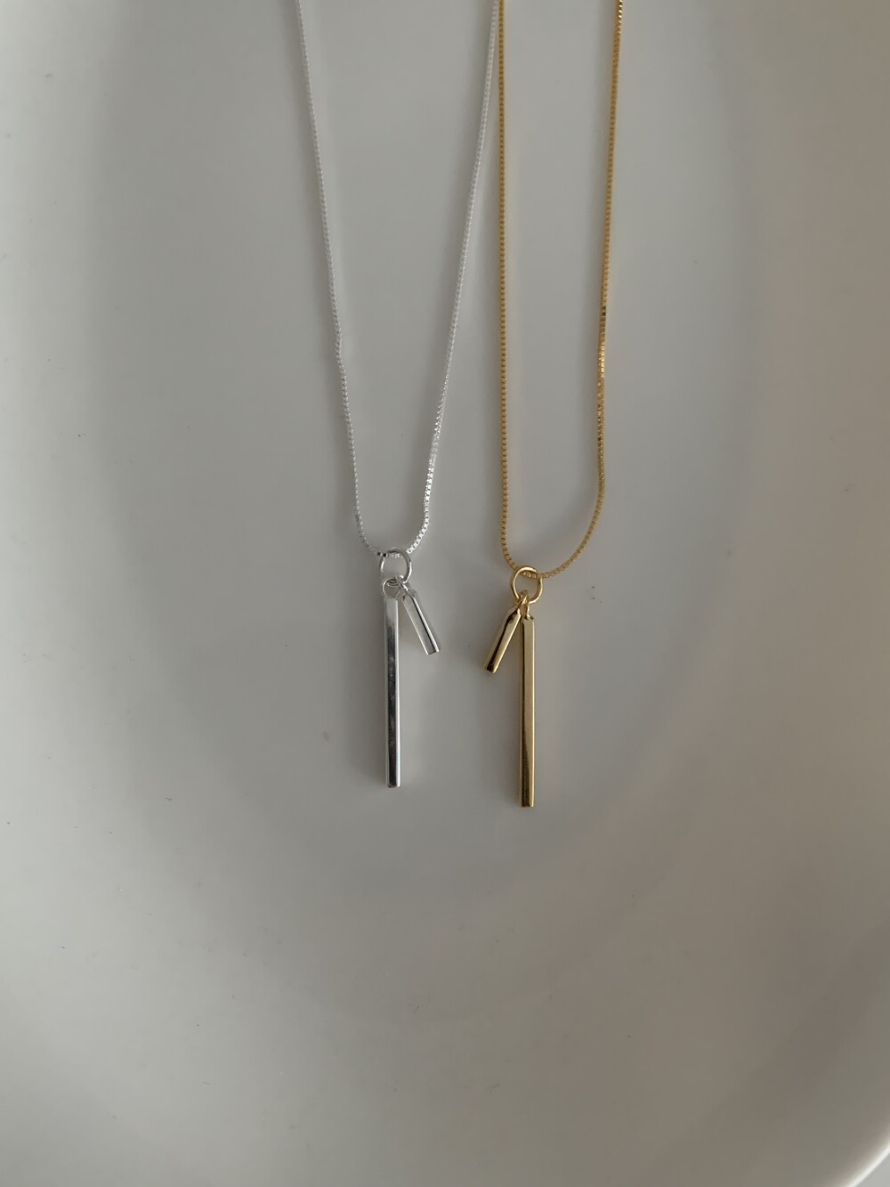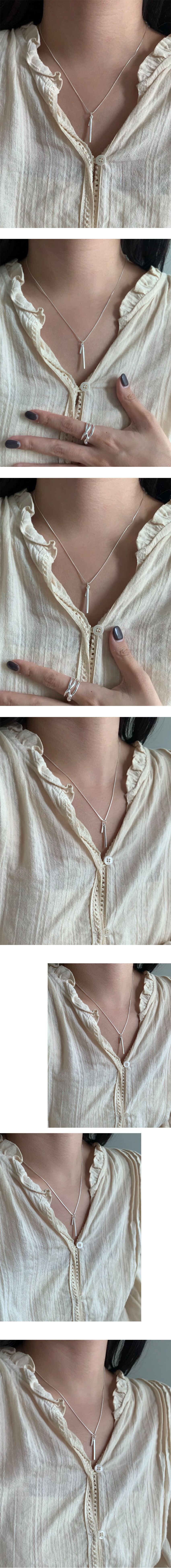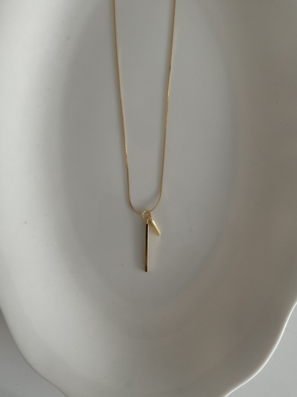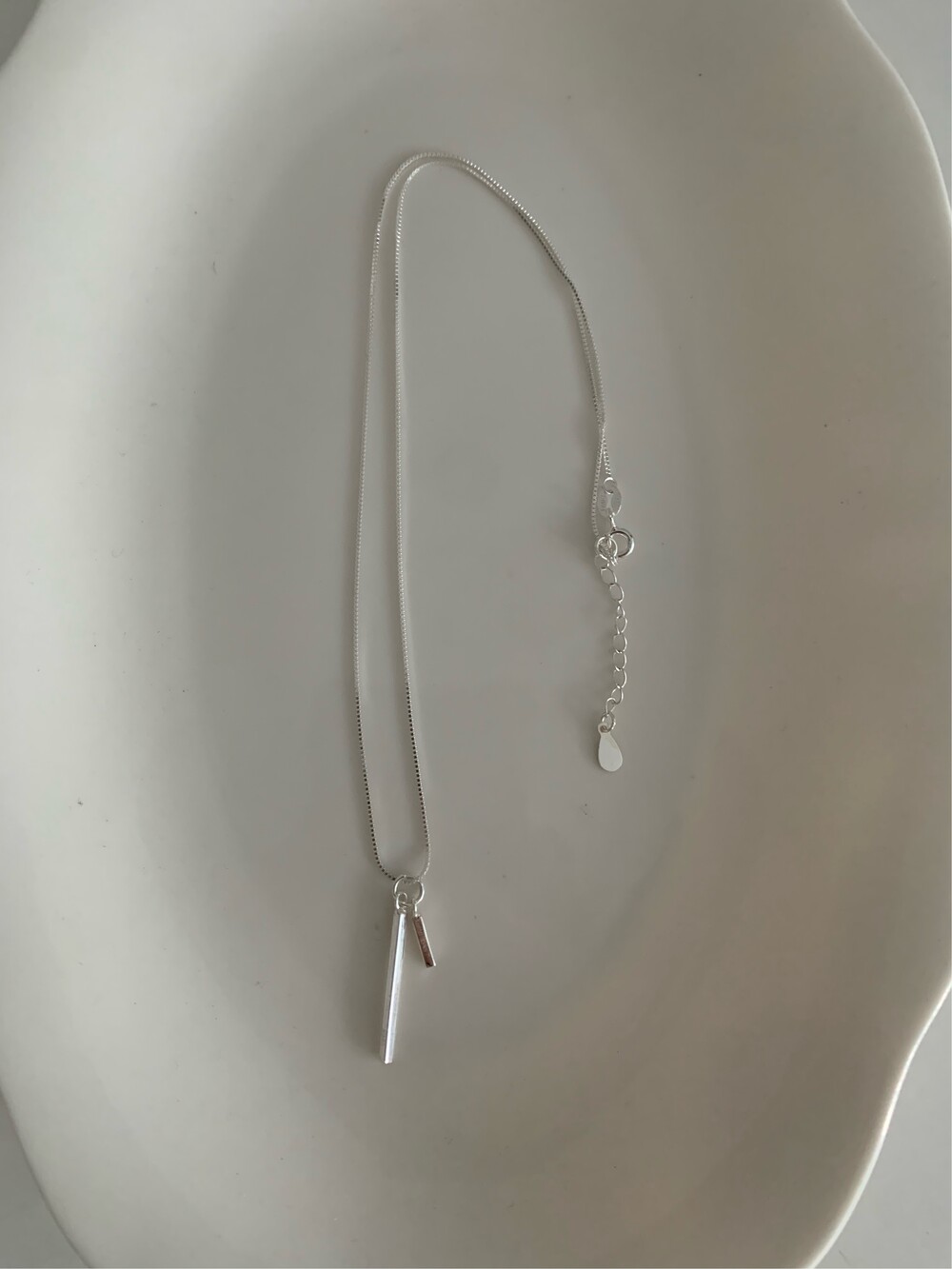 군더더기 없는 매끈한 라인 바 팬던트가 길게 떨어지는 심플 네크리스.