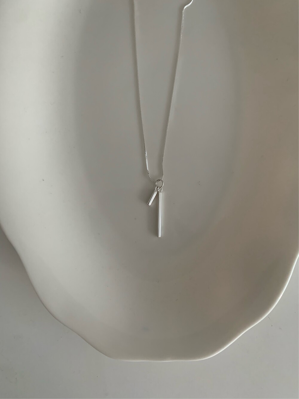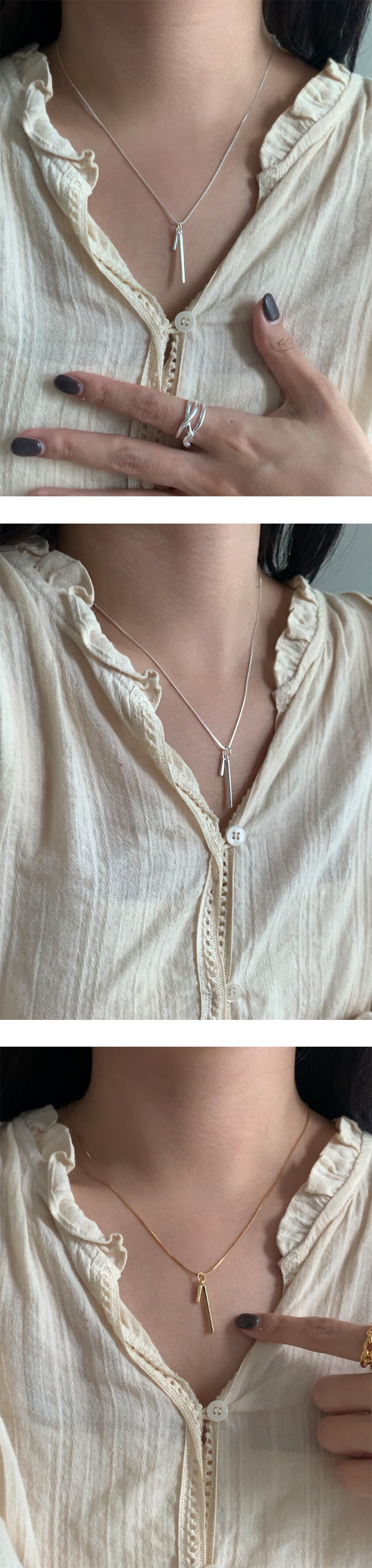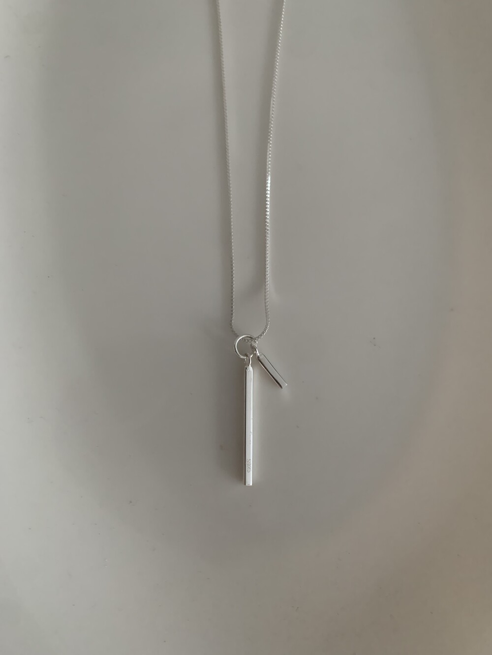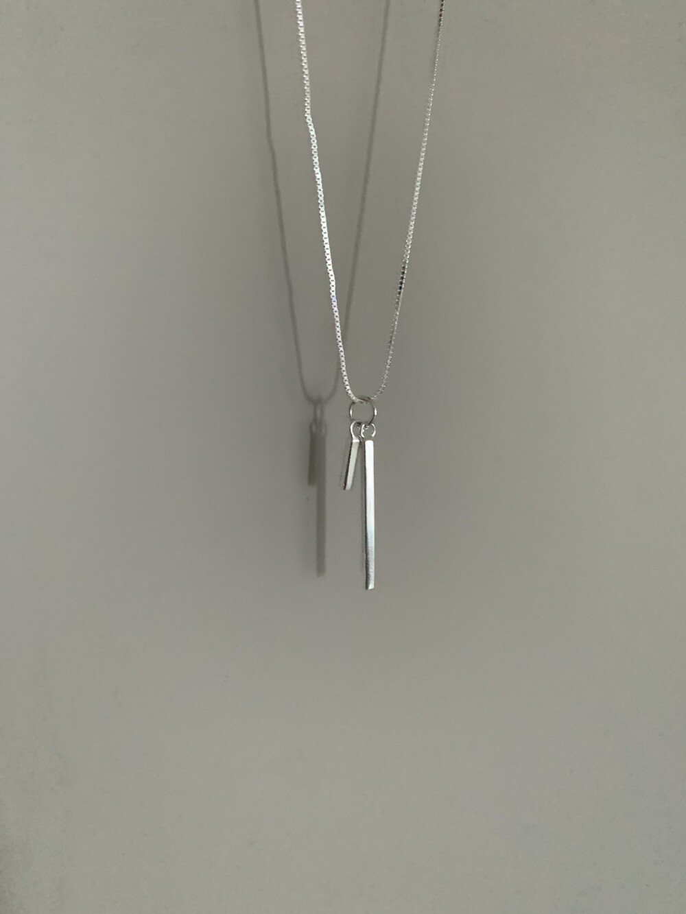 군더더기 없는 매끈한 라인 바 팬던트가 길게 떨어지는 심플 네크리스.
