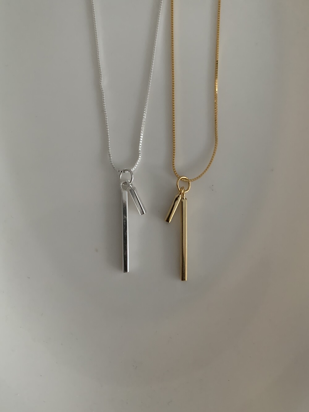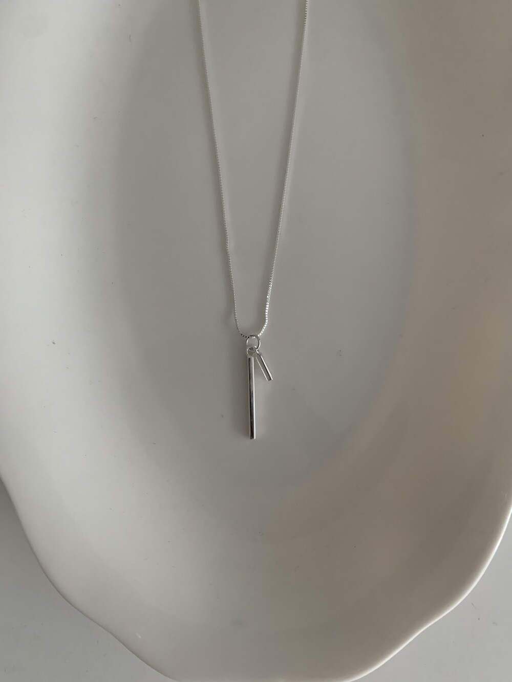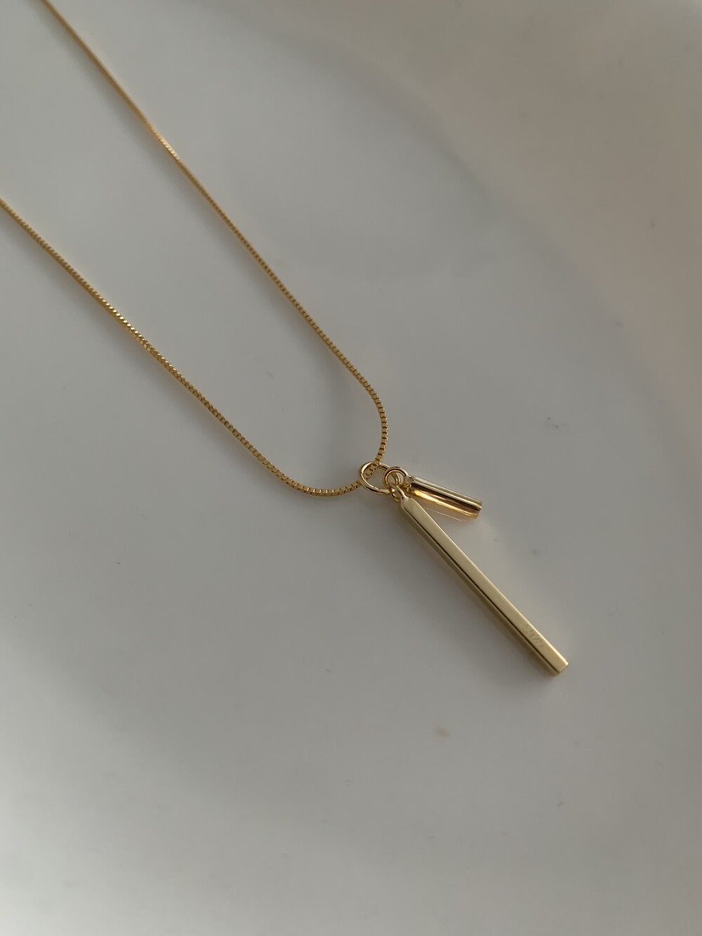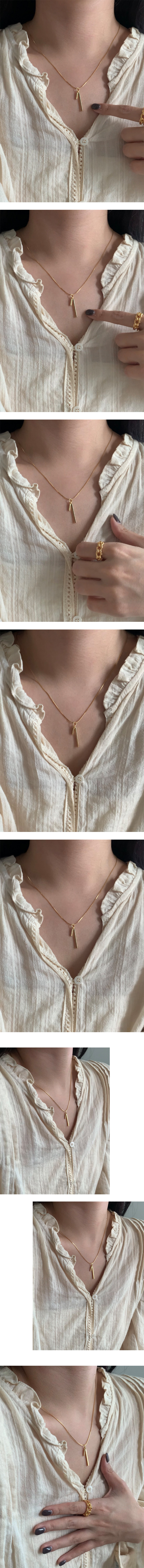 군더더기 없는 매끈한 라인 바 팬던트가 길게 떨어지는 심플 네크리스.