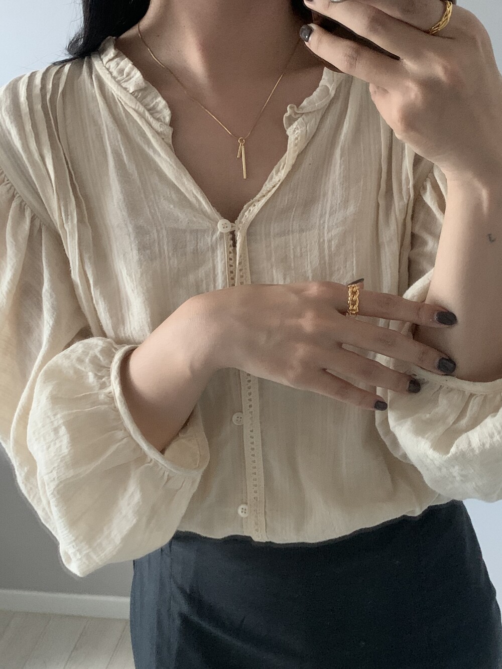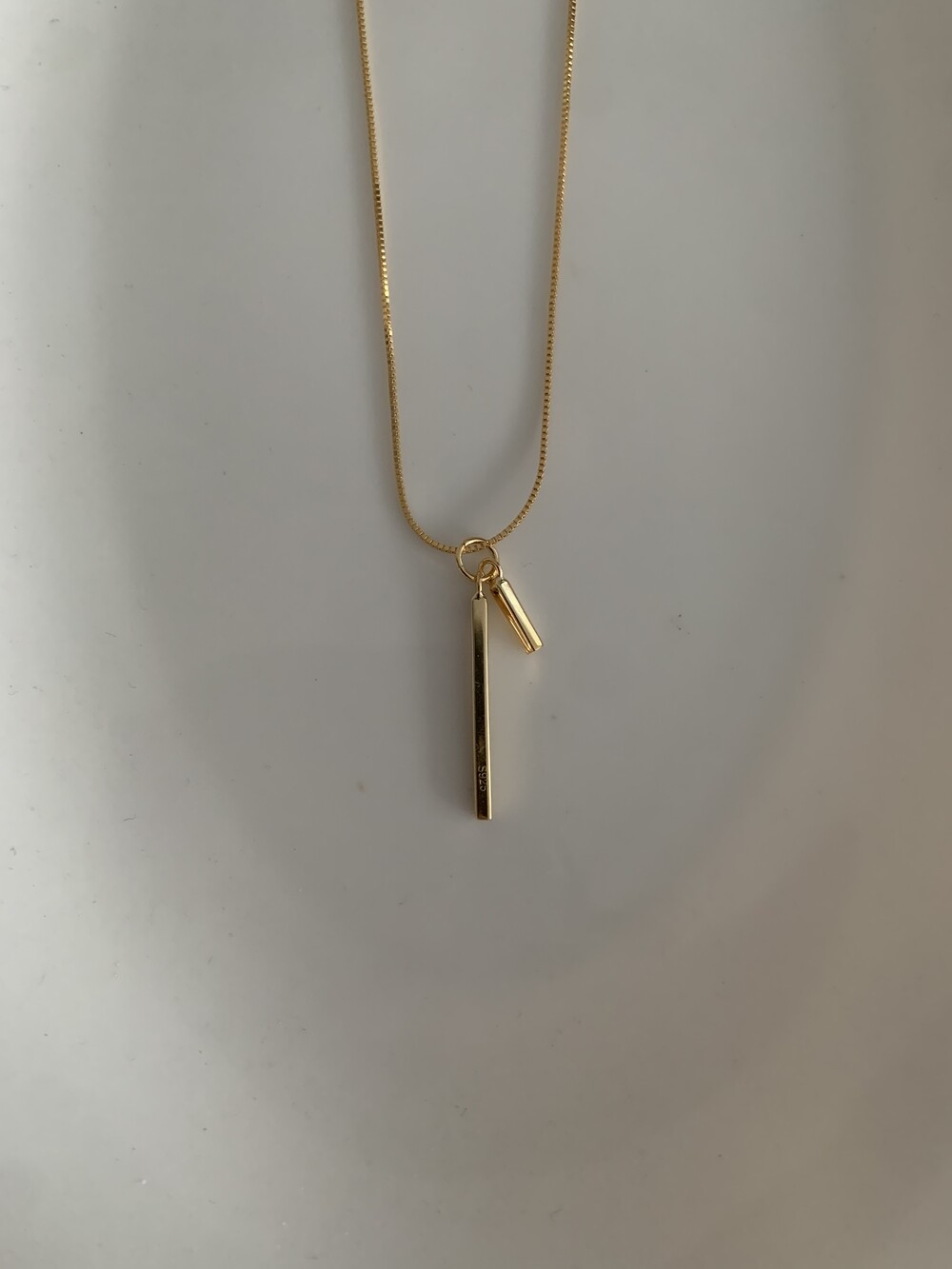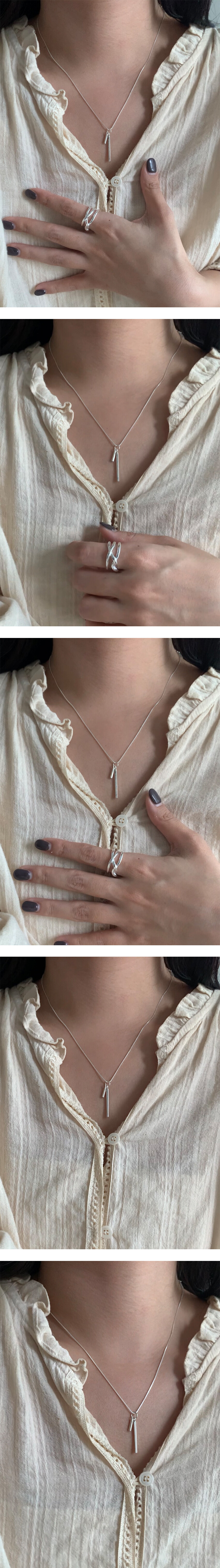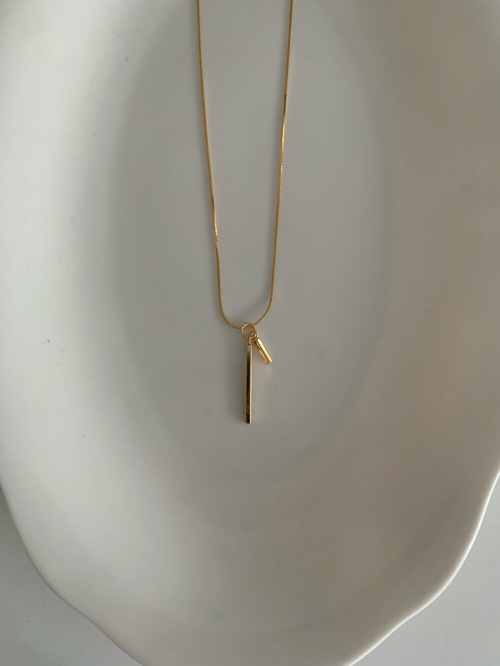 군더더기 없는 매끈한 라인 바 팬던트가 길게 떨어지는 심플 네크리스.