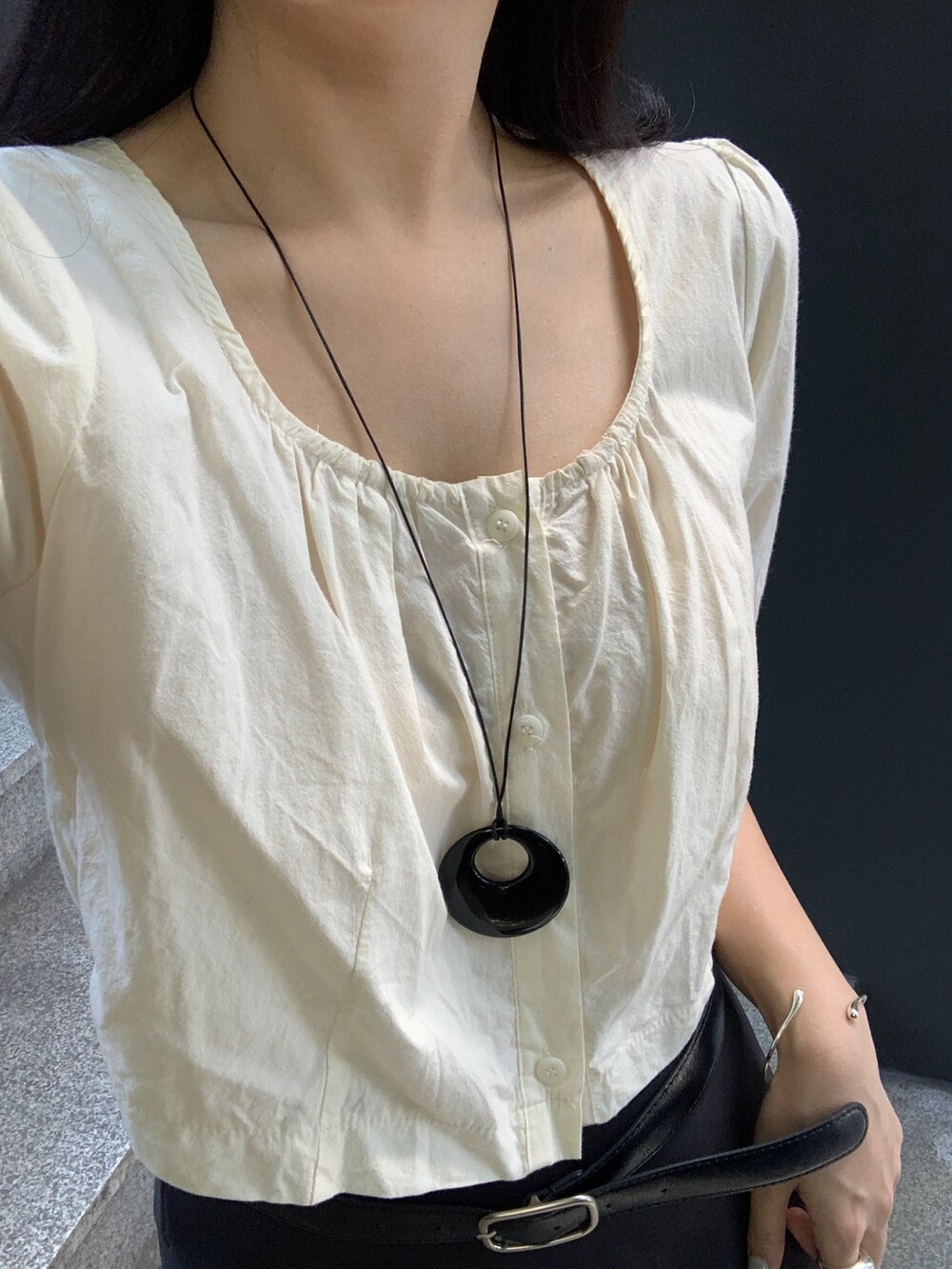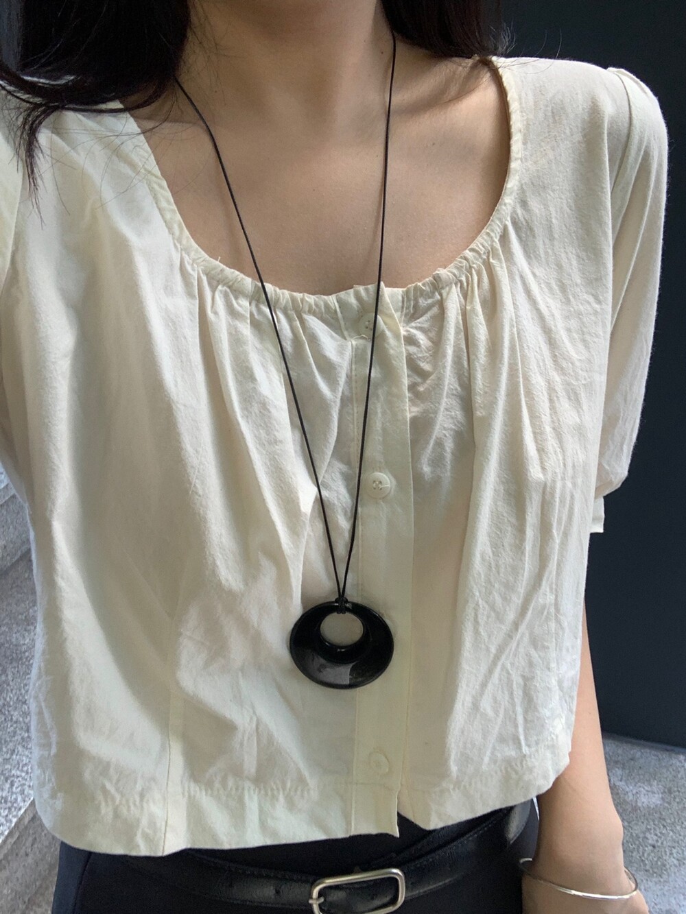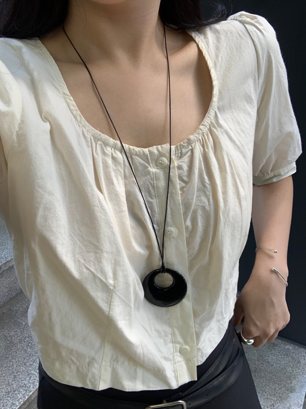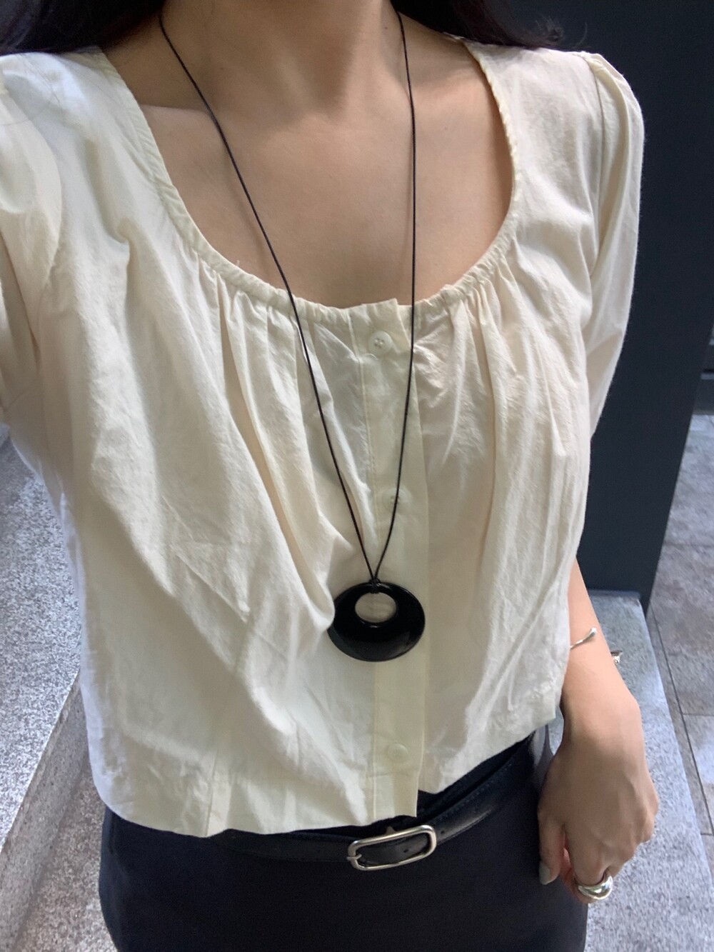 블랙옥 펜던트가 길게 떨어지는 스트랩에 달린 롱 네크리스.