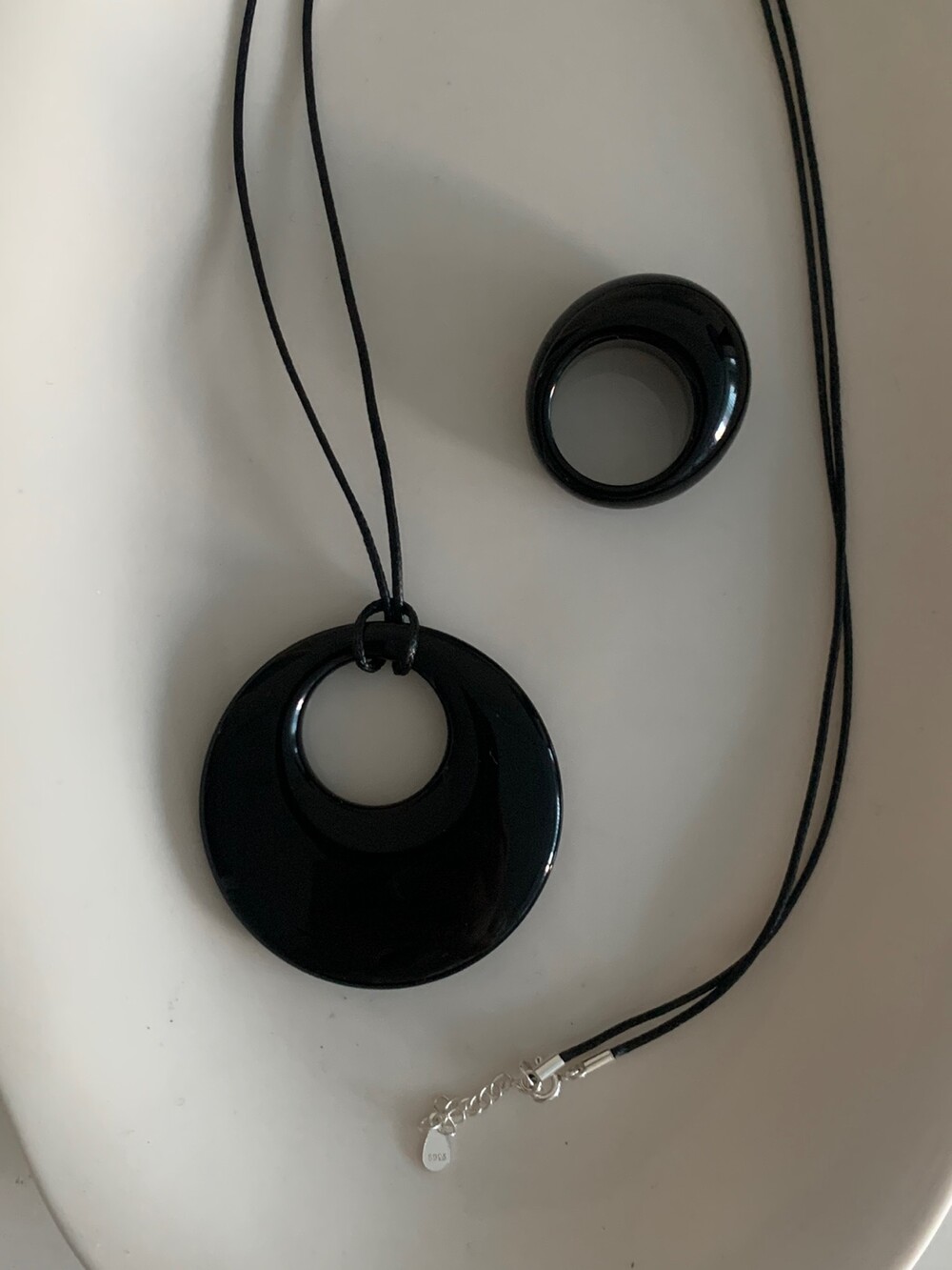 묵직하고 광택 있는 블랙 옥이 멋스럽고 시크한 포인트가 되어 심플한 룩에 하나만 착용해도 스타일의 완성도를 높일 수 있는 제품입니다.
