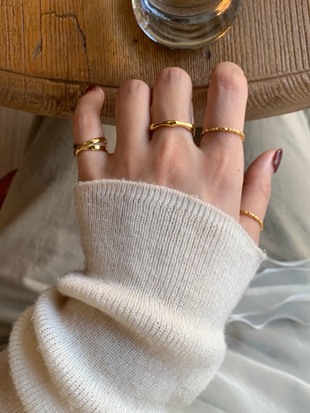 작은 도트들이 자연스럽게 이어지며 완성된 심플하면서 유니크한 실루엣의 데일리링.