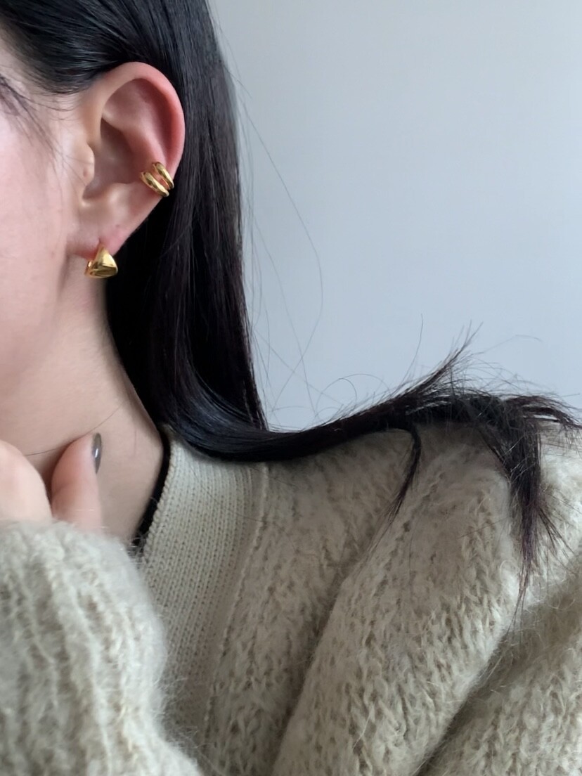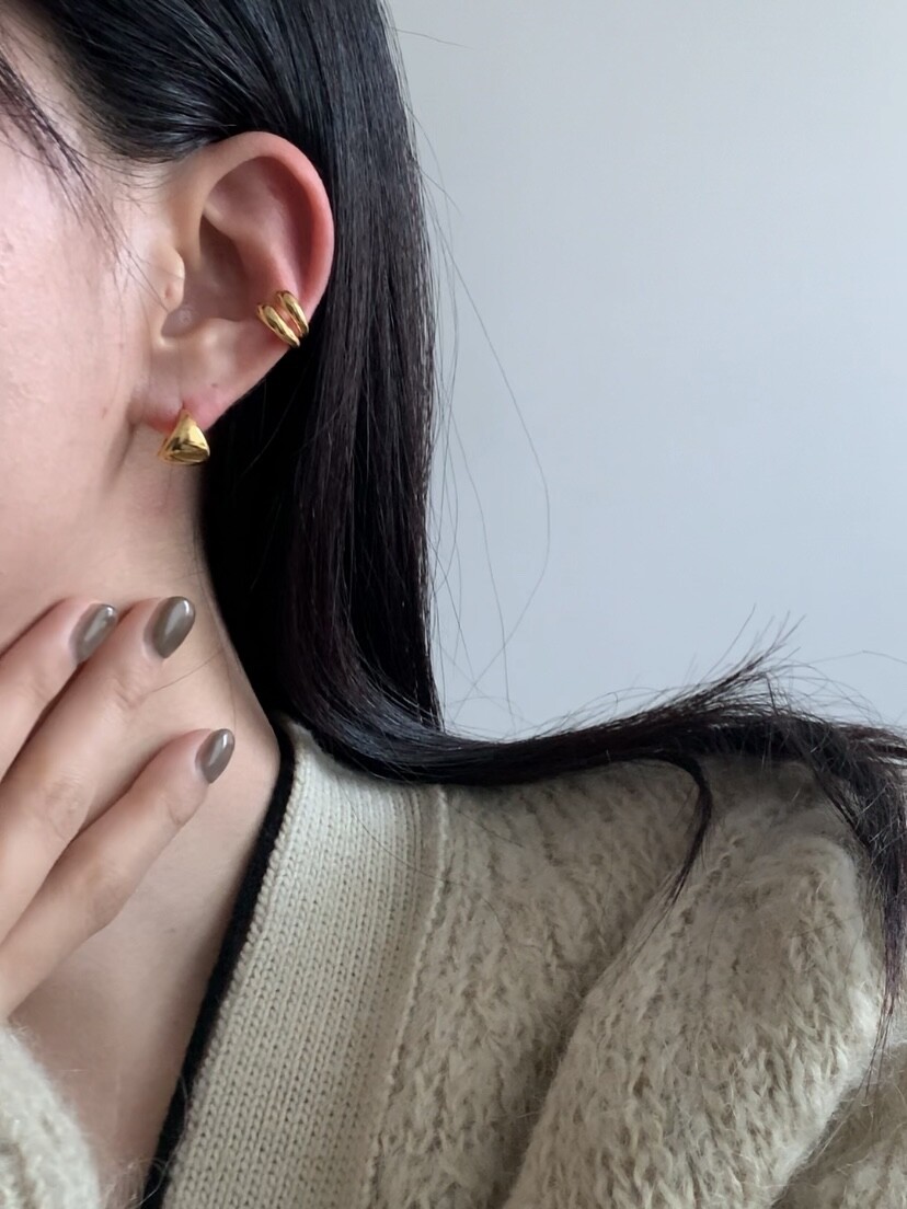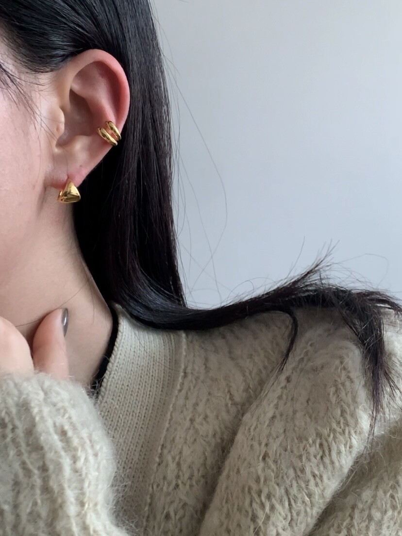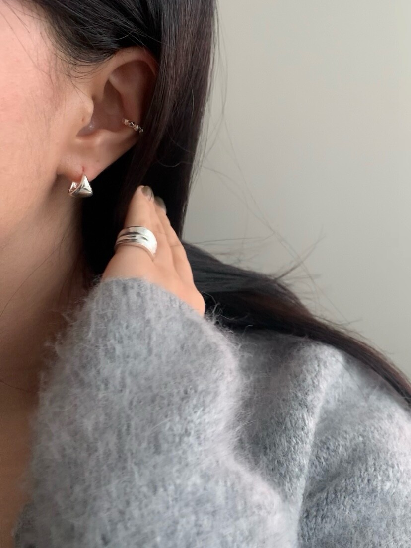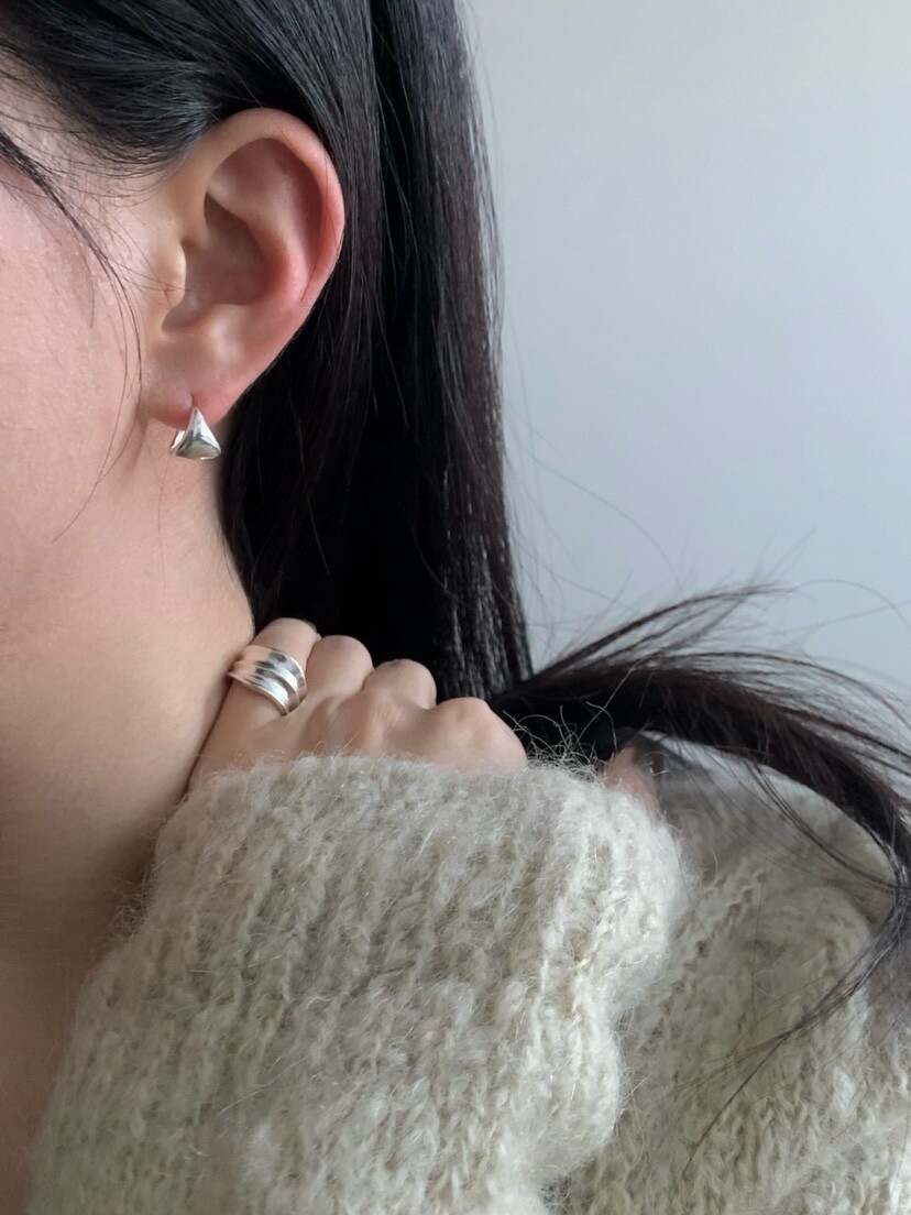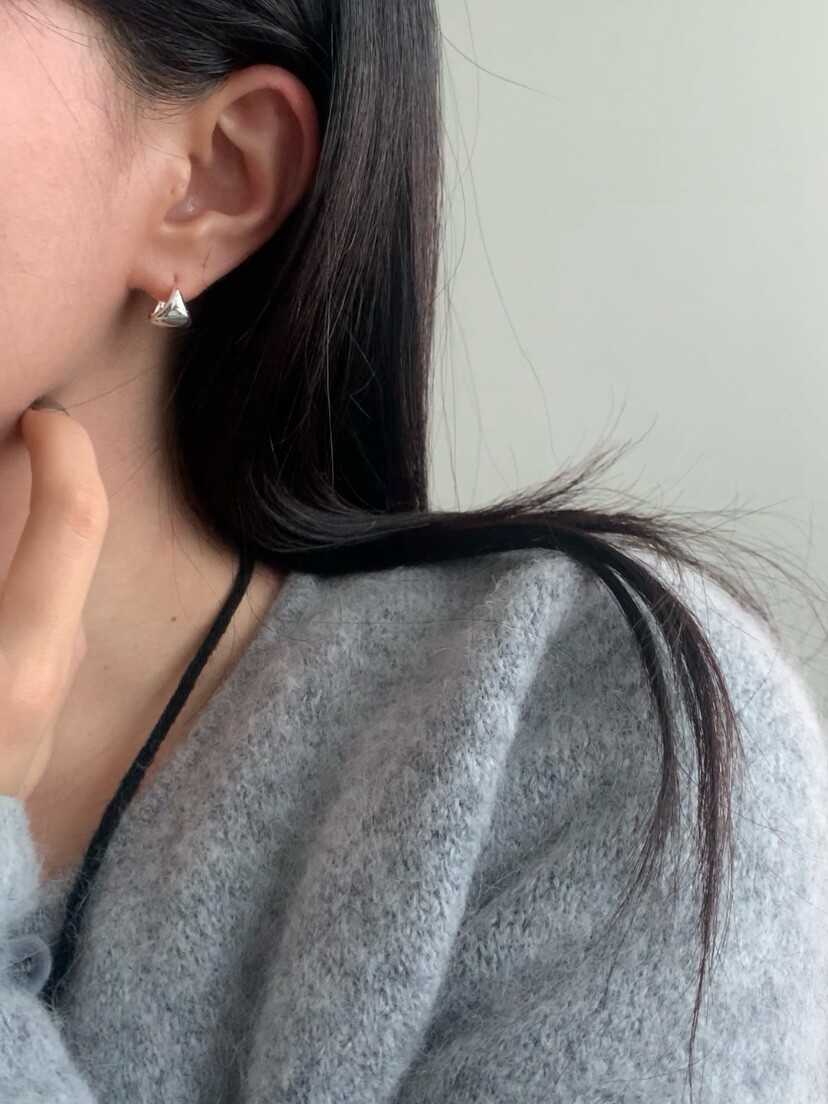 (silver925) Fan shaped one touch earrings