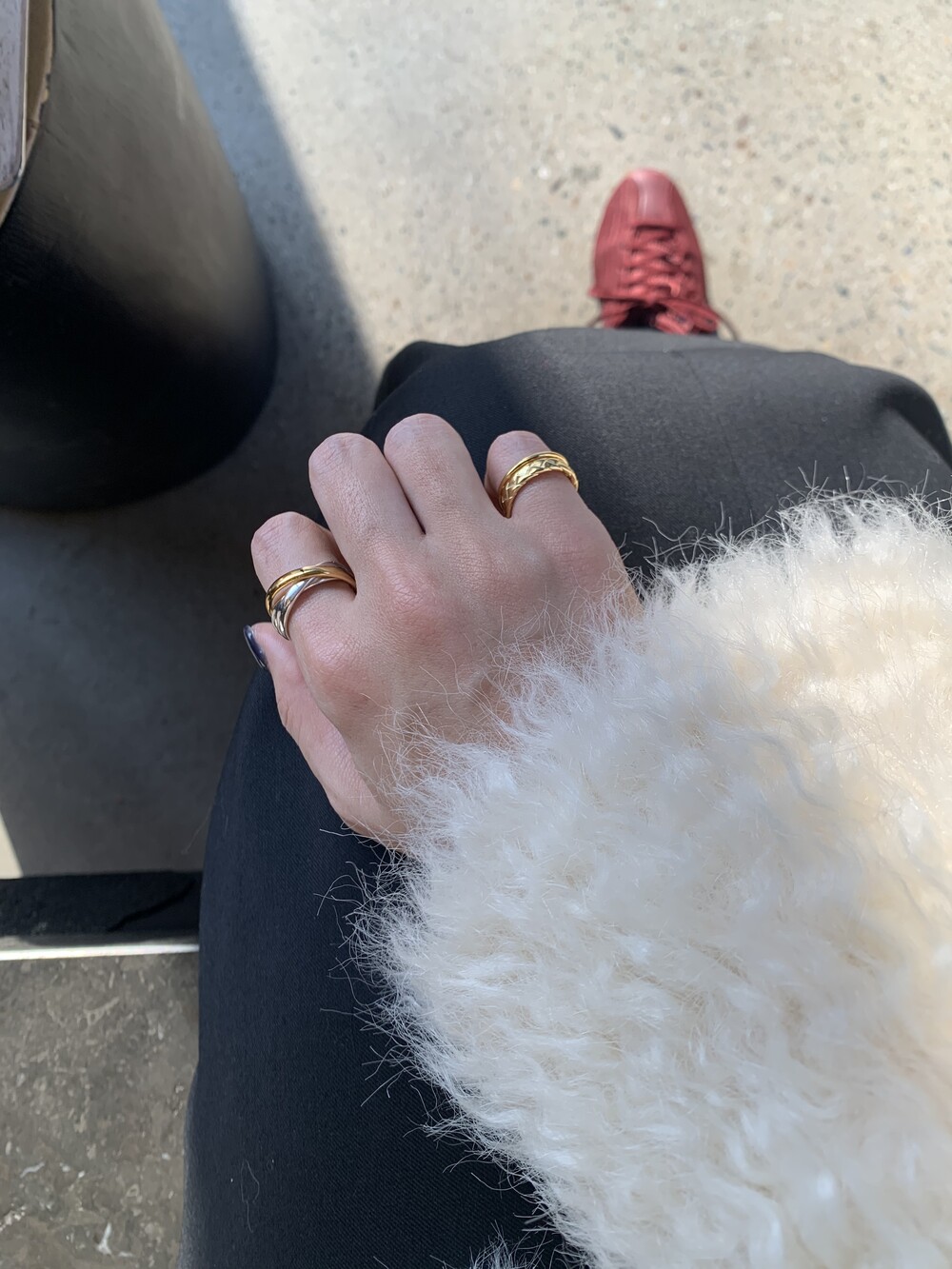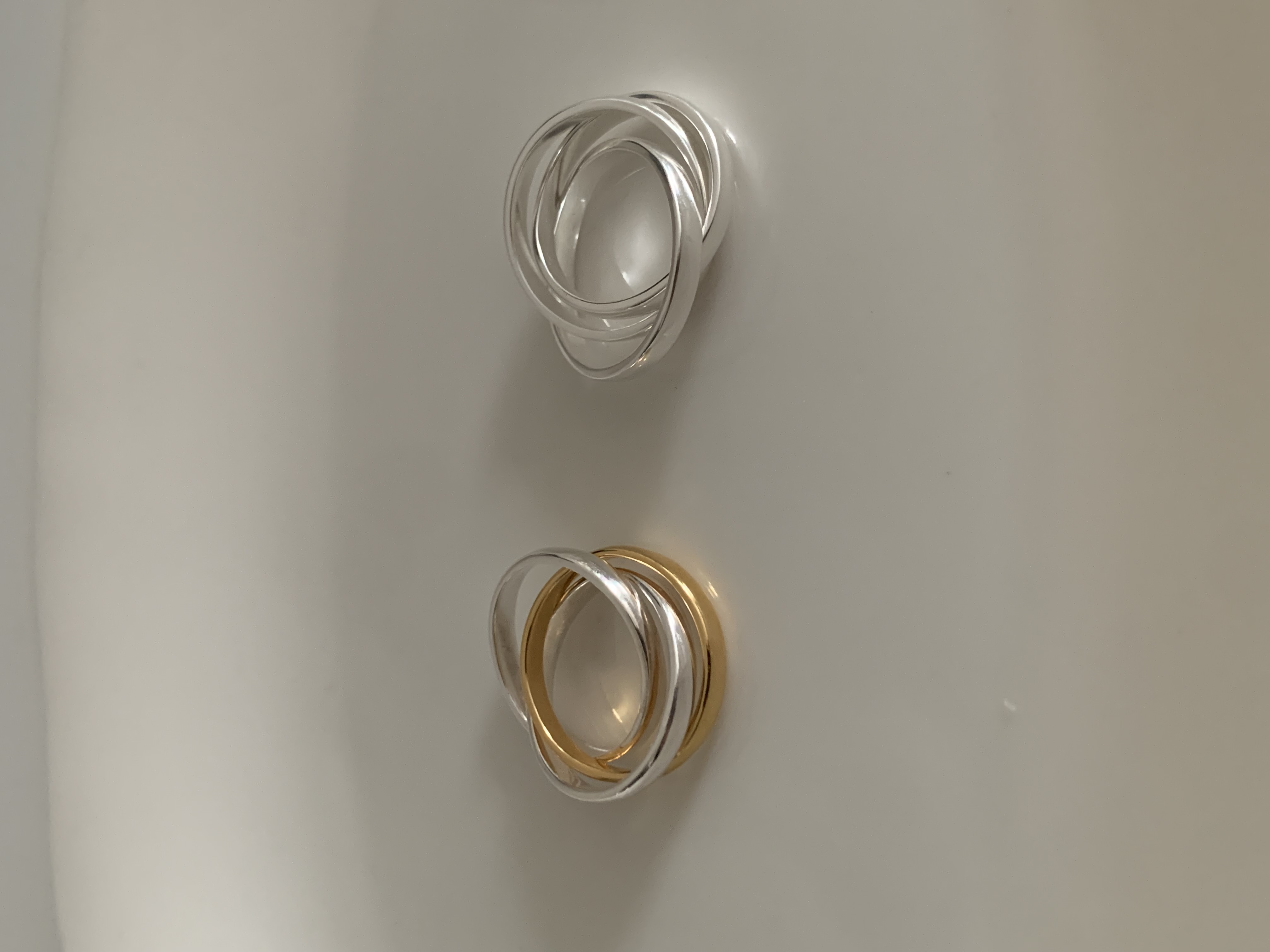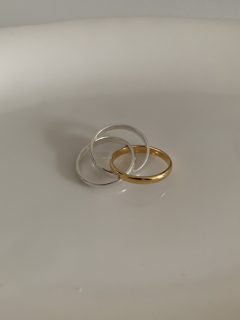 세 개의 링이 서로를 감싸며 하나의 리듬처럼 흐르는 멋스러운 볼드링 소개해드려요.