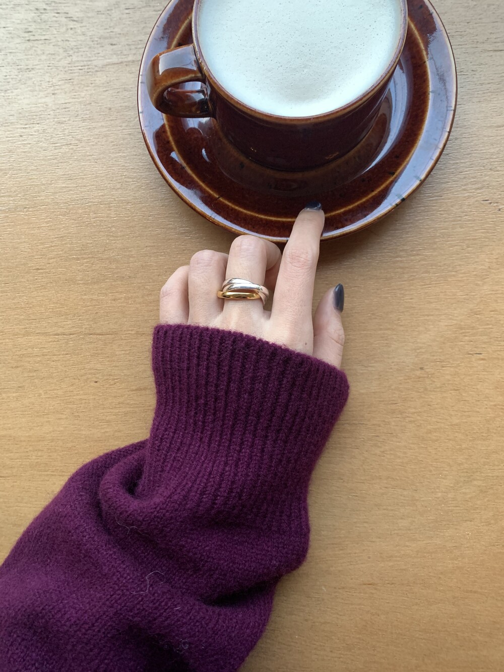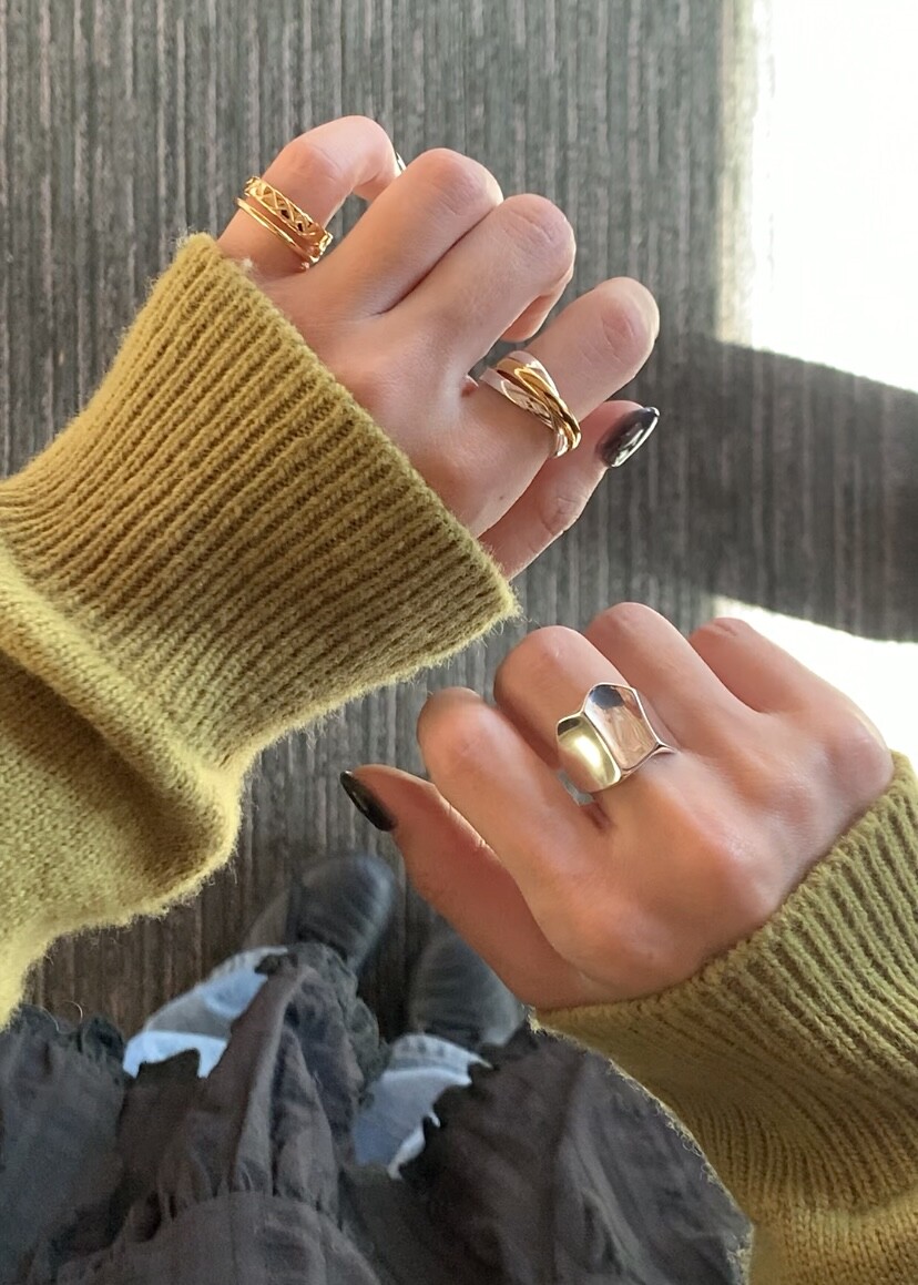손의 움직임에 따라 미묘하게 달라지는 실루엣이 볼드한 디자인에 유연한 인상을 더해 단순한링 이상의 특별한 존재감을 완성합니다.