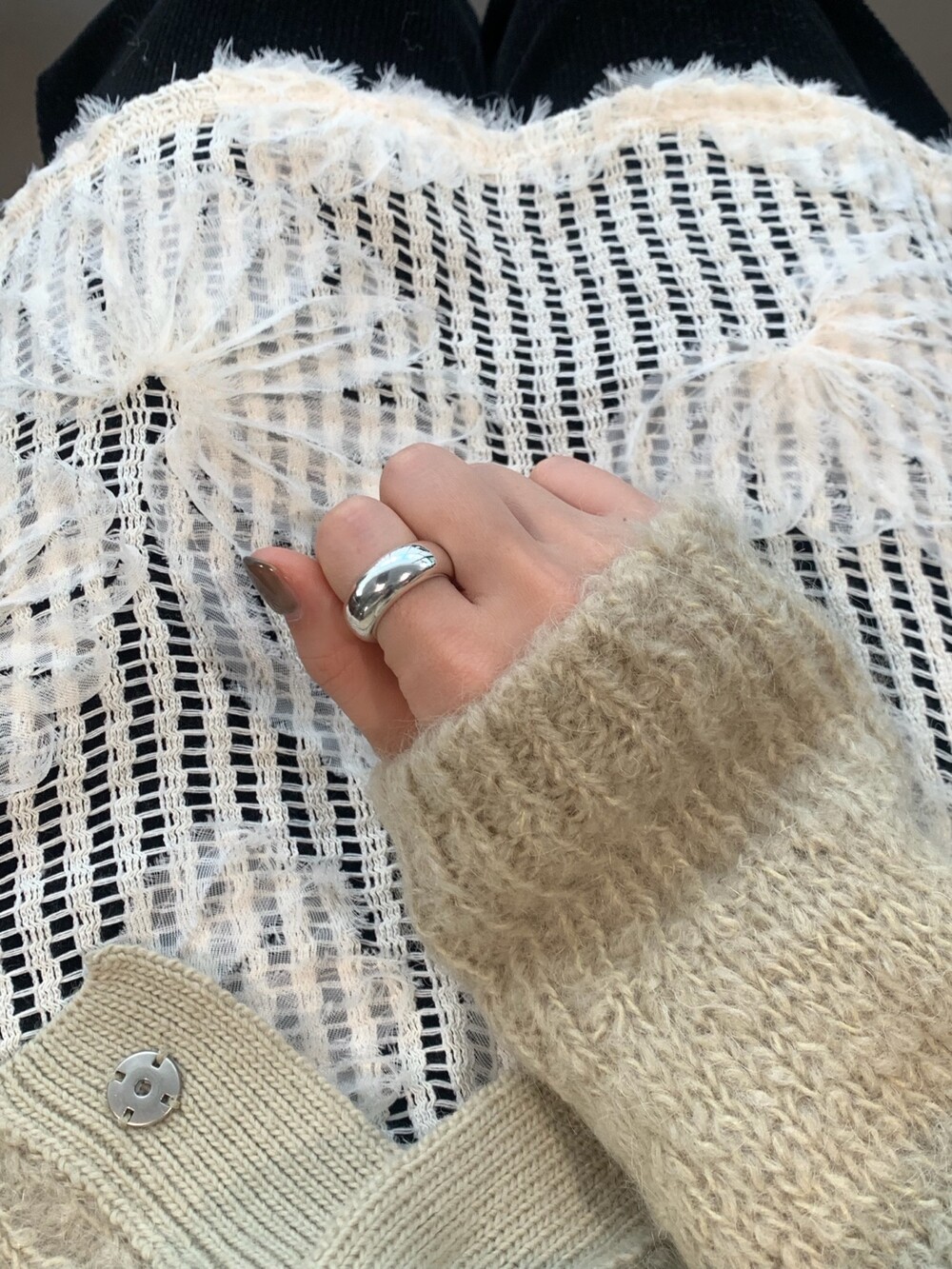 가벼운 중량감이지만 두께감과 볼륨감이 있어 하나만 껴주어도 눈에 딱 띄는 제품이라 제가 개인 소장하고싶어서