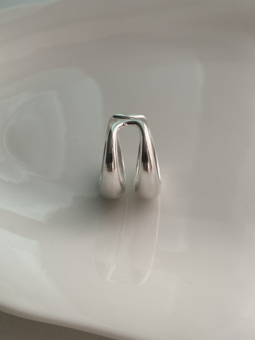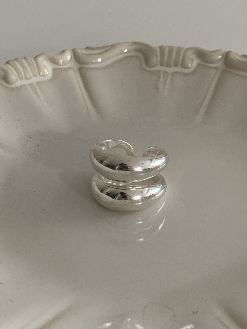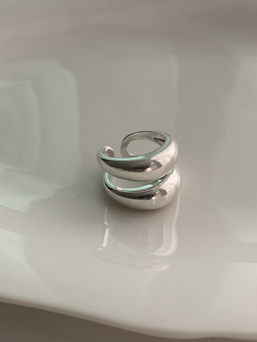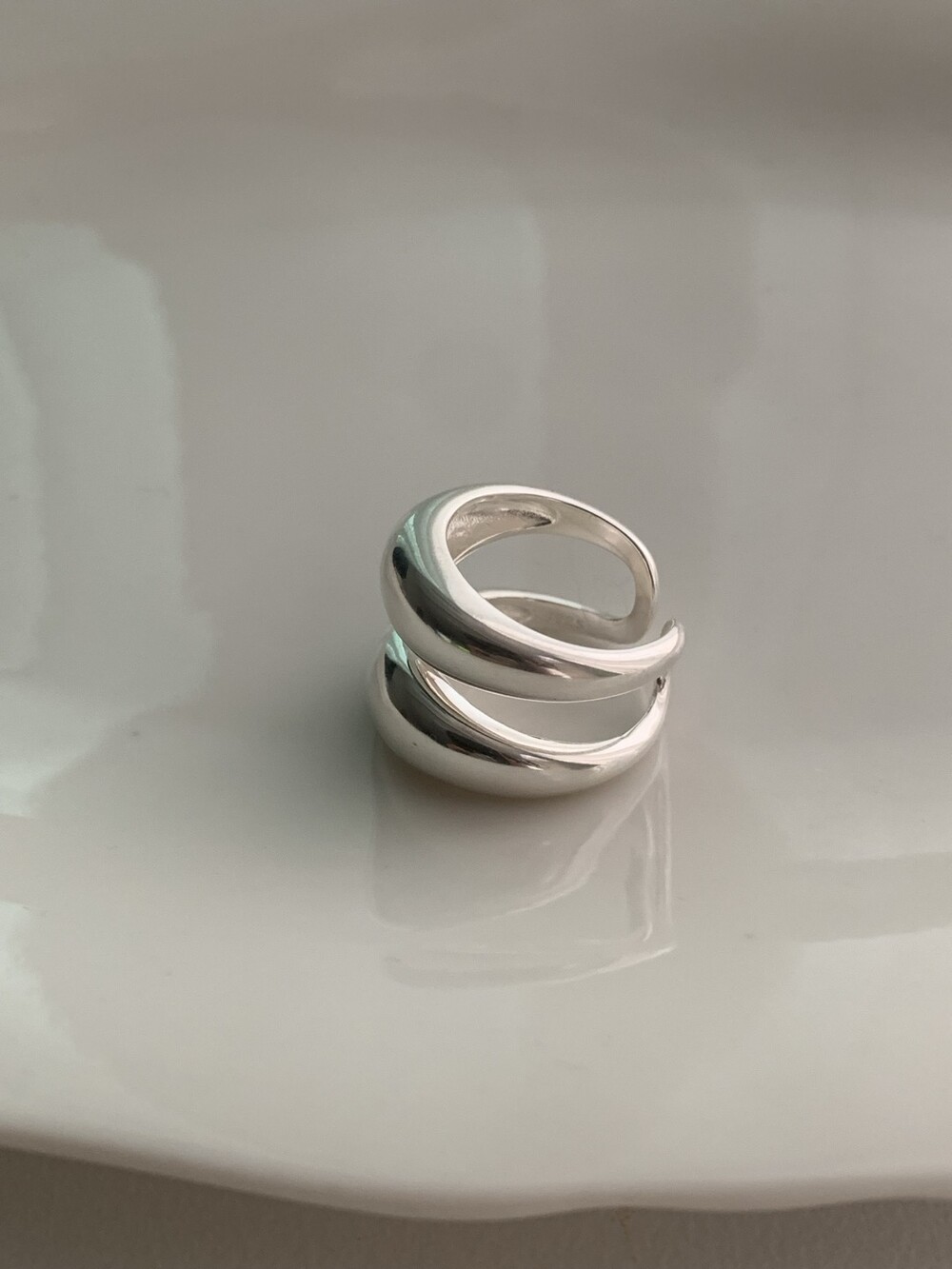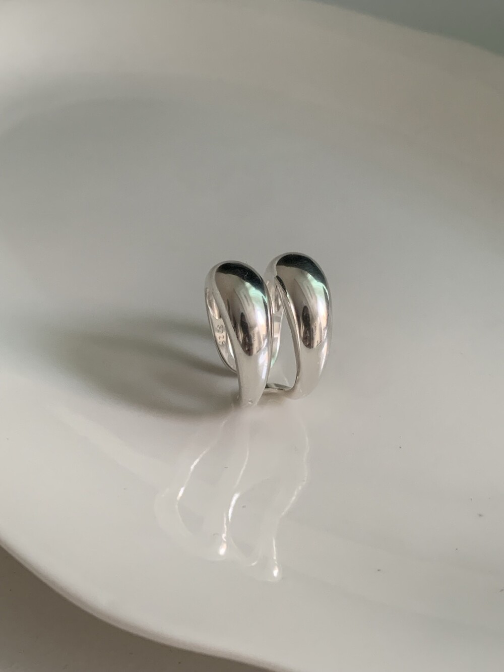 볼륨감 있는 두 개의 실버 라인이 레이어드한 듯 입체적인 실루엣을 완성해, 간결하면서도 강렬한 인상을 남깁니다.