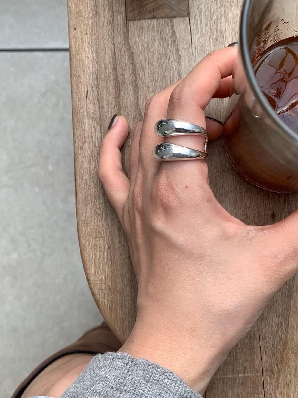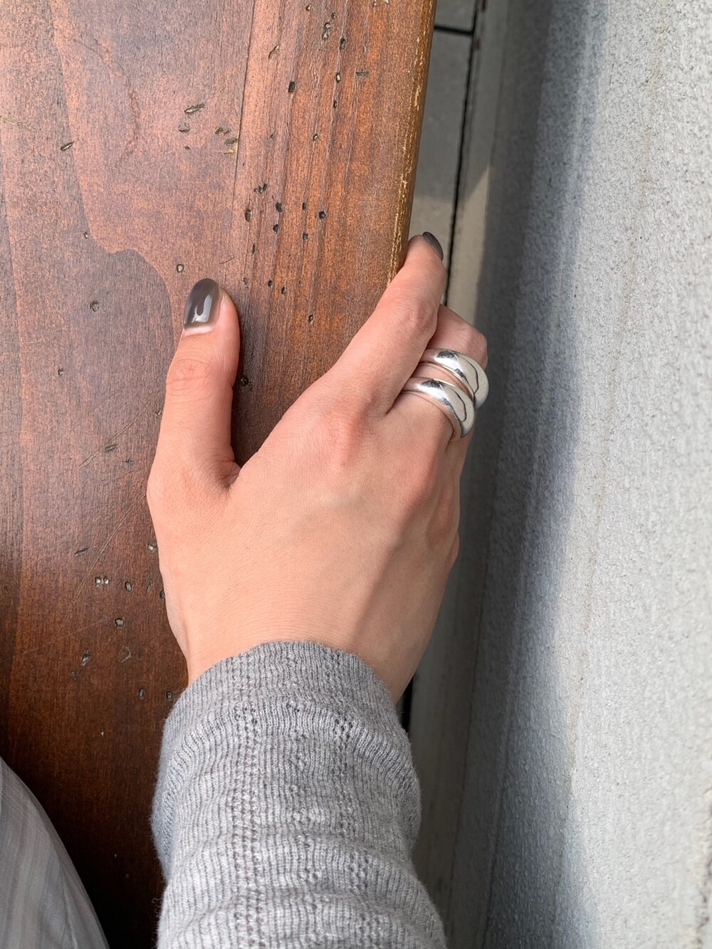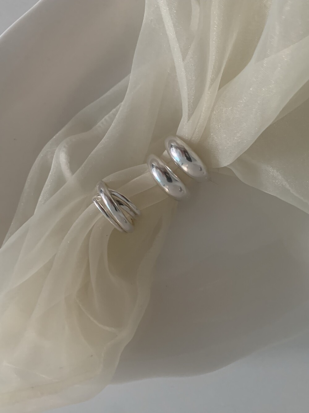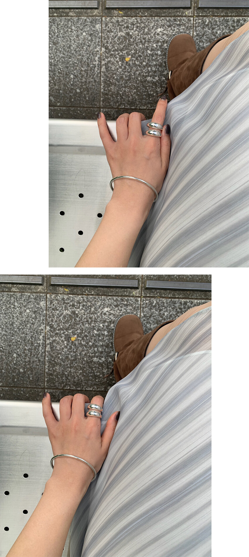 볼륨감 있는 두 개의 실버 라인이 레이어드한 듯 입체적인 실루엣을 완성해, 간결하면서도 강렬한 인상을 남깁니다.