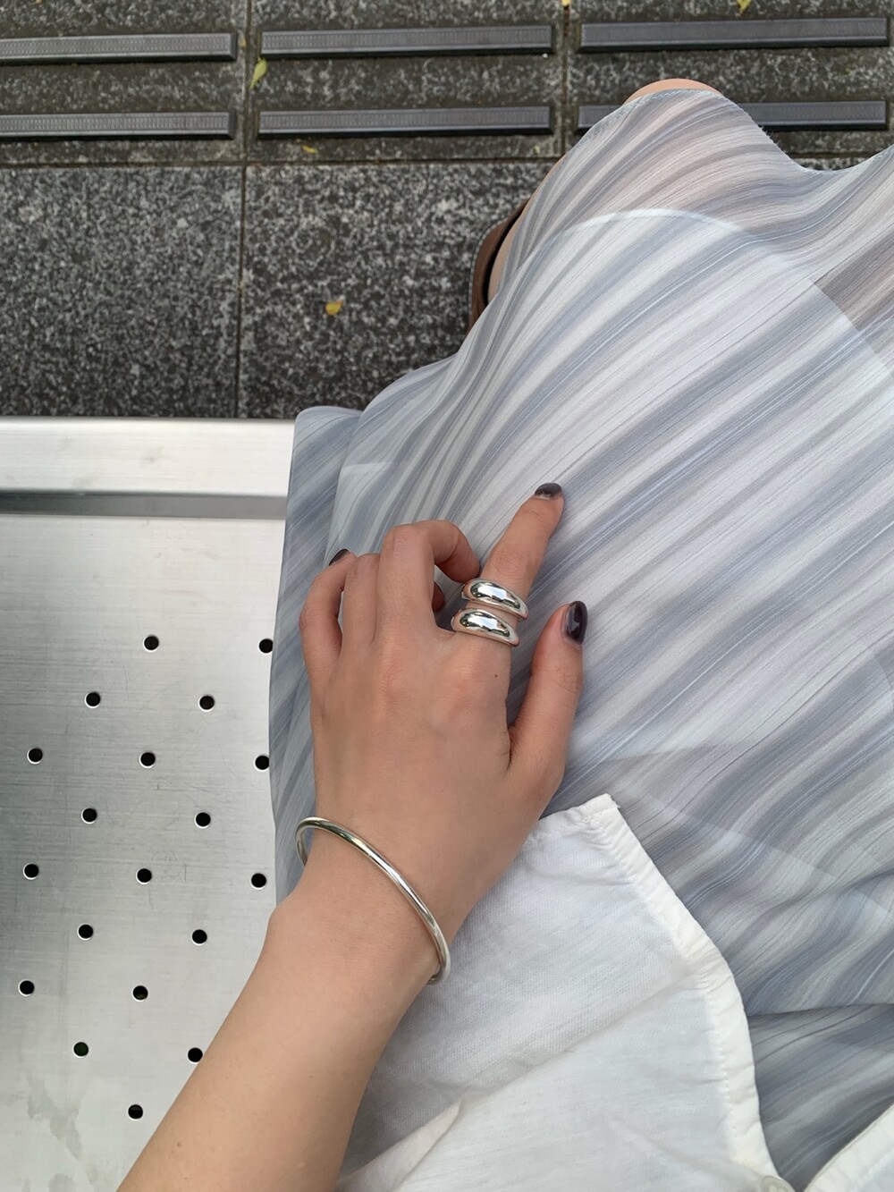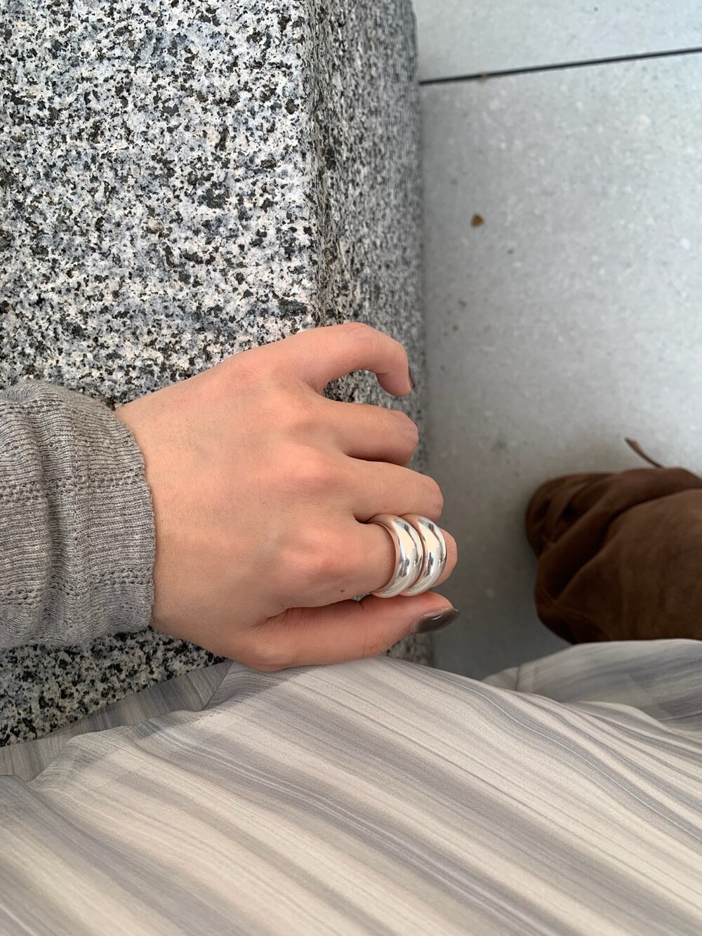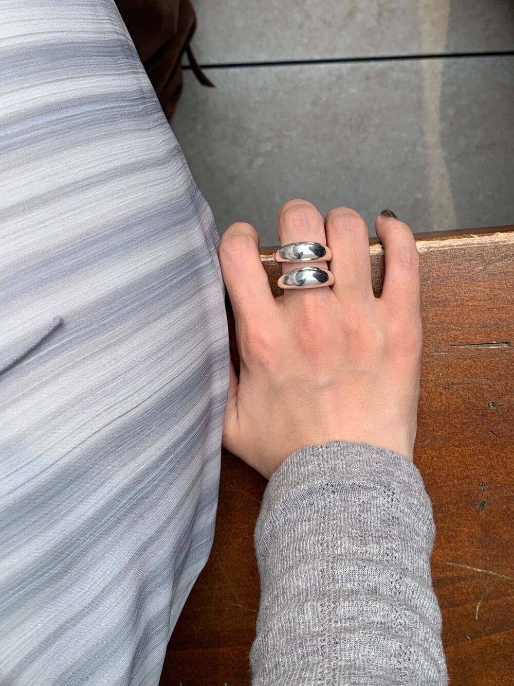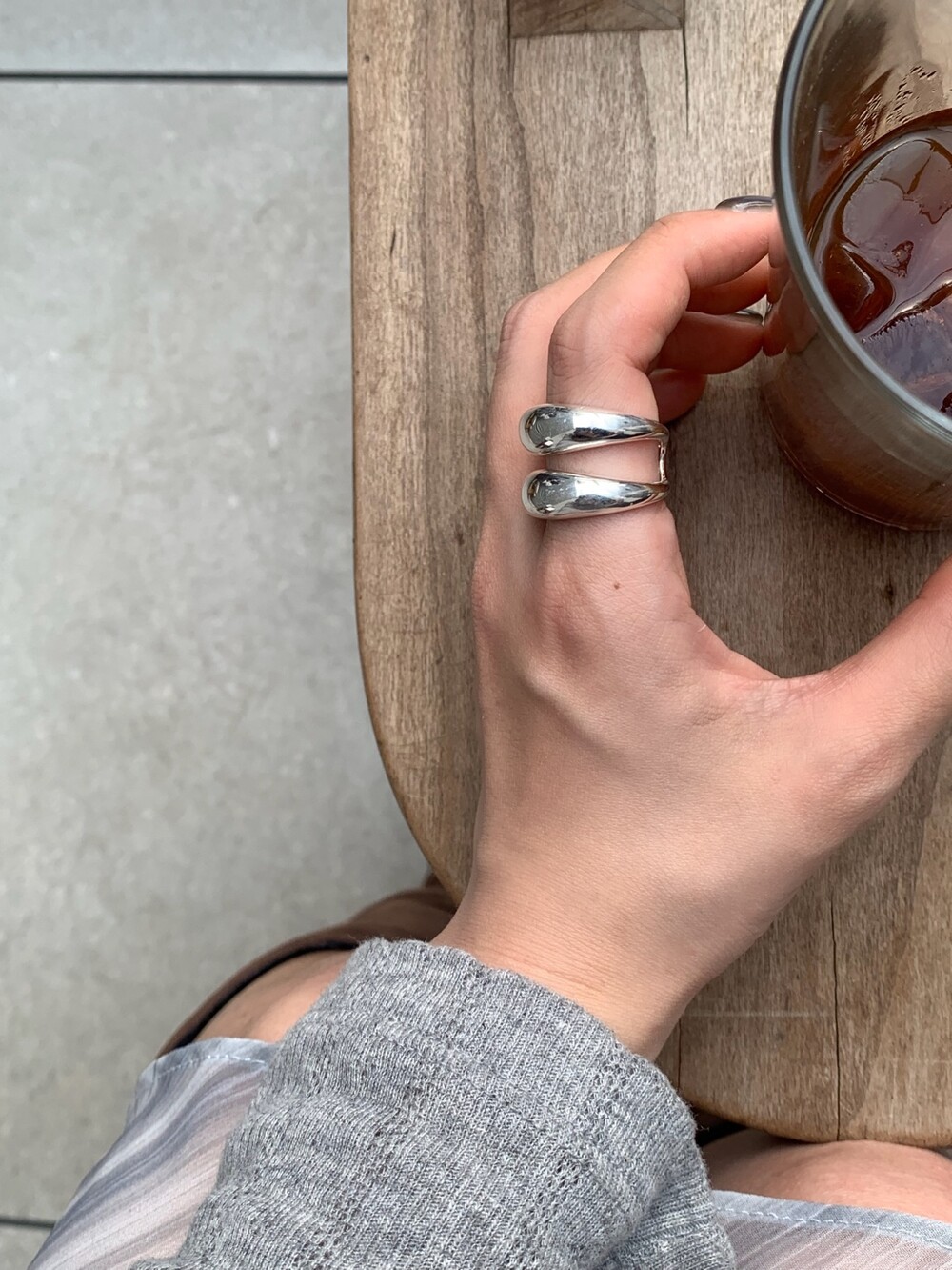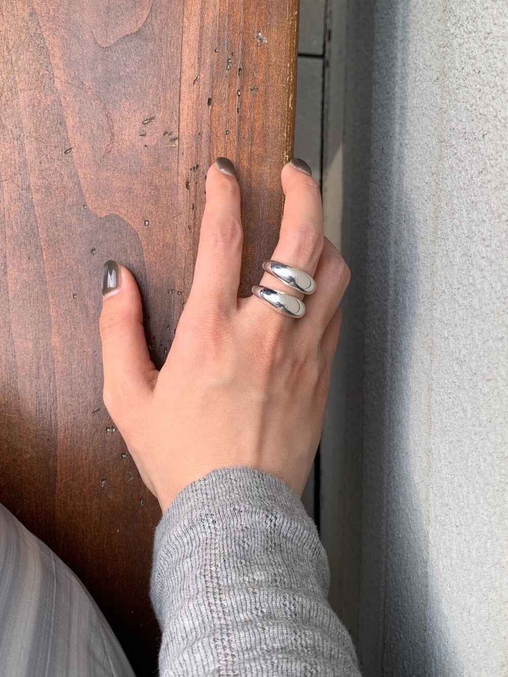 볼륨감 있는 두 개의 실버 라인이 레이어드한 듯 입체적인 실루엣을 완성해, 간결하면서도 강렬한 인상을 남깁니다.