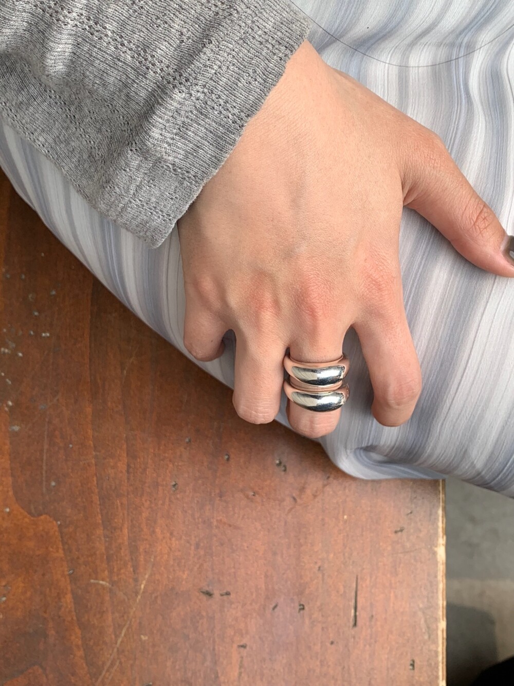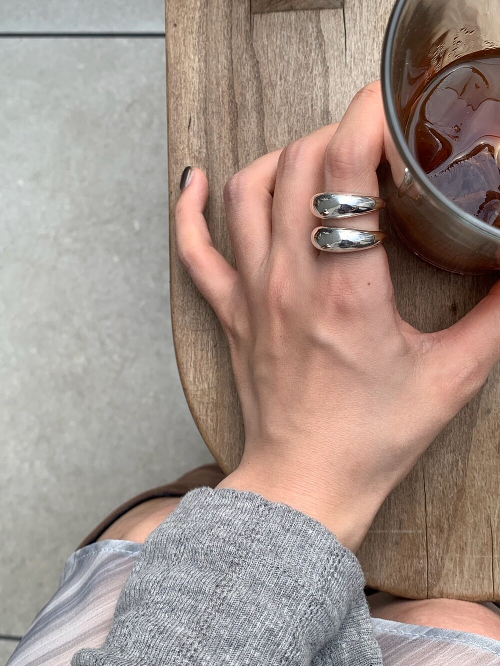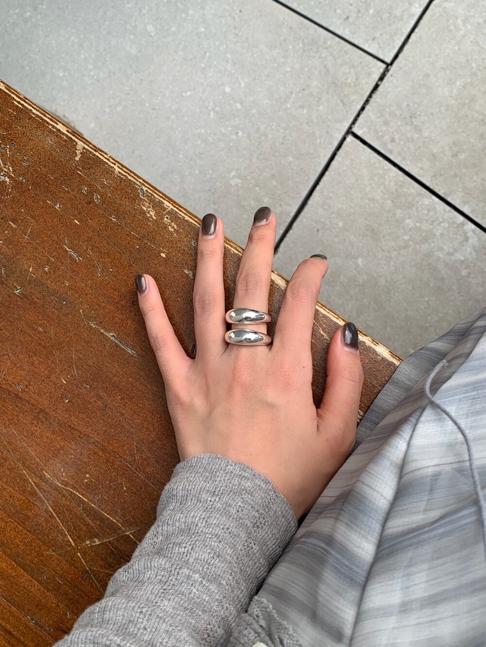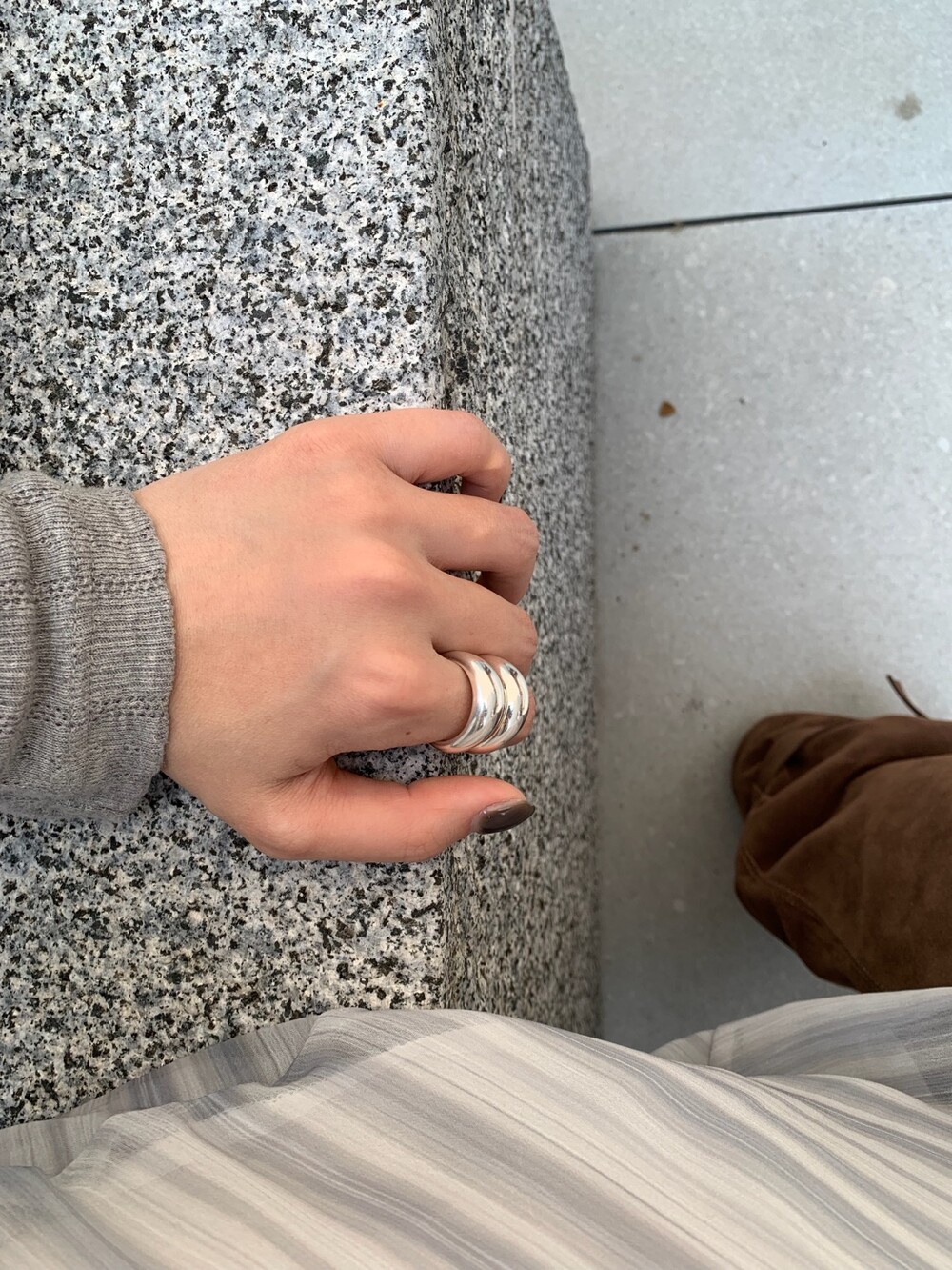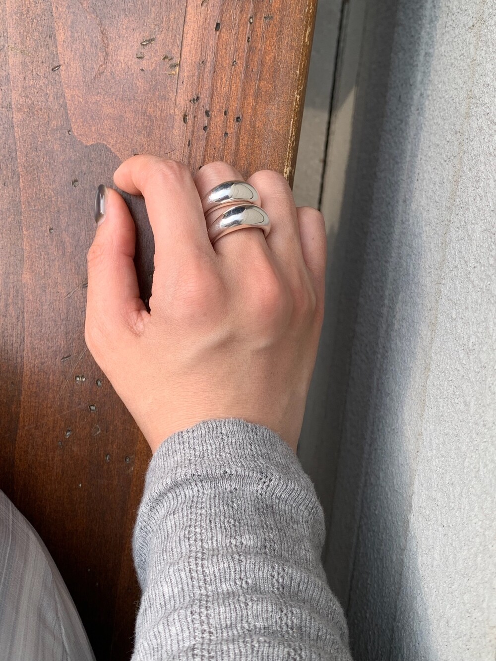 볼륨감 있는 두 개의 실버 라인이 레이어드한 듯 입체적인 실루엣을 완성해, 간결하면서도 강렬한 인상을 남깁니다.