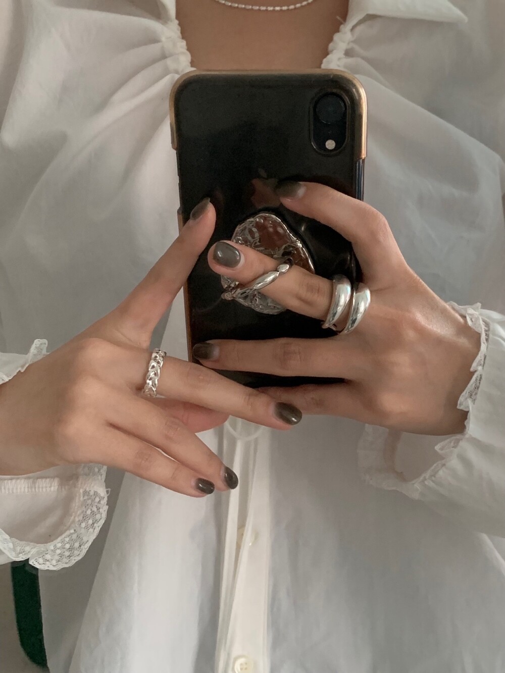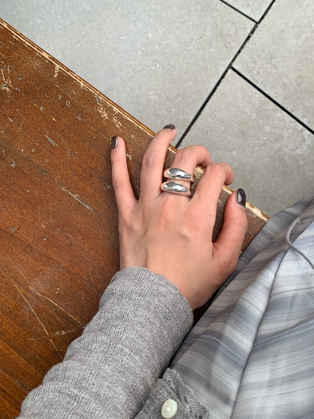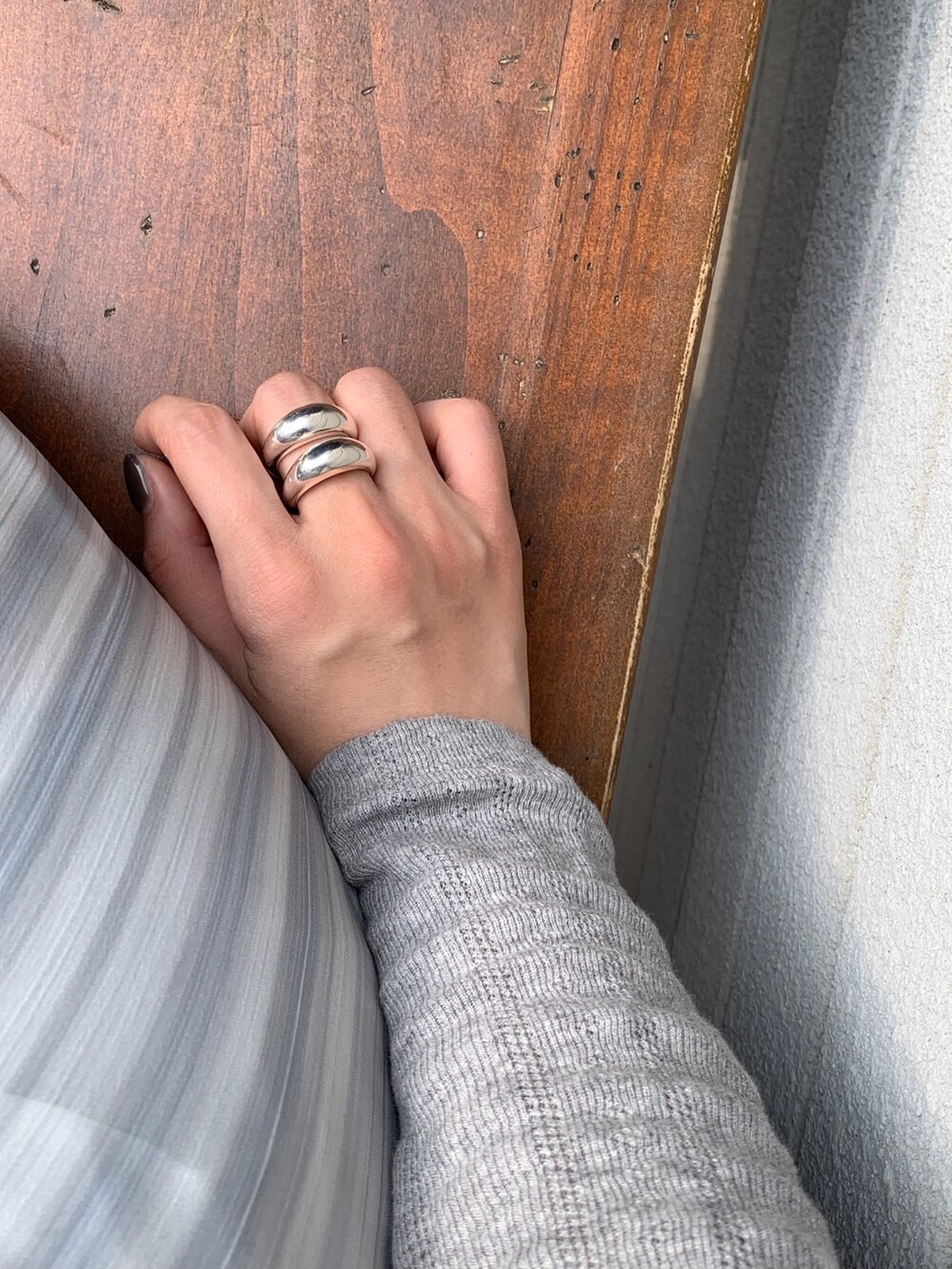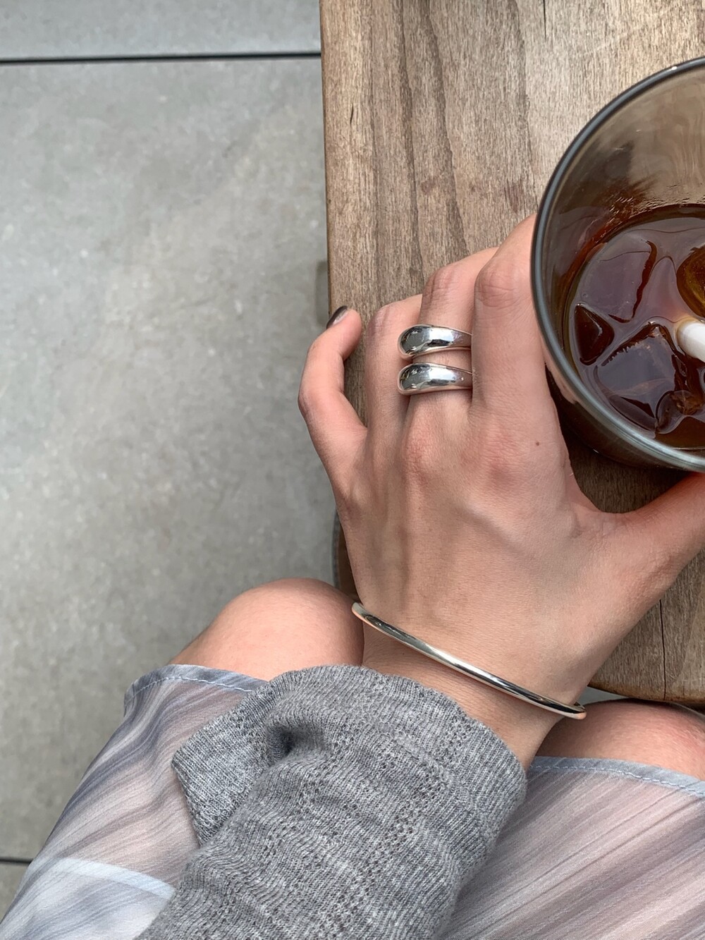 볼륨감 있는 두 개의 실버 라인이 레이어드한 듯 입체적인 실루엣을 완성해, 간결하면서도 강렬한 인상을 남깁니다.