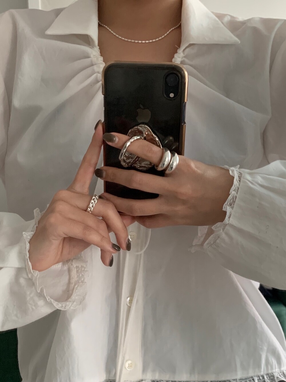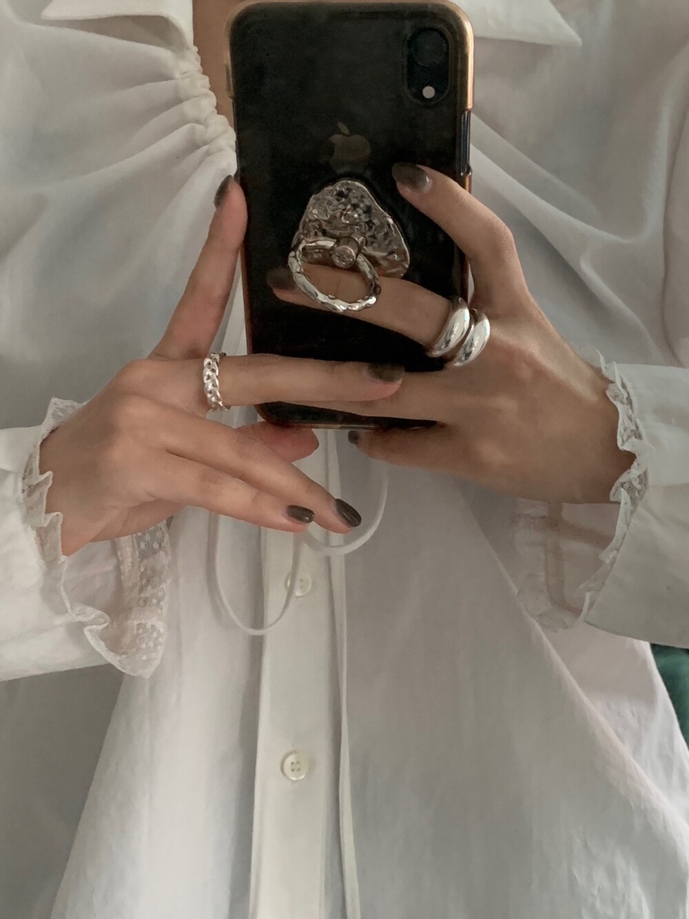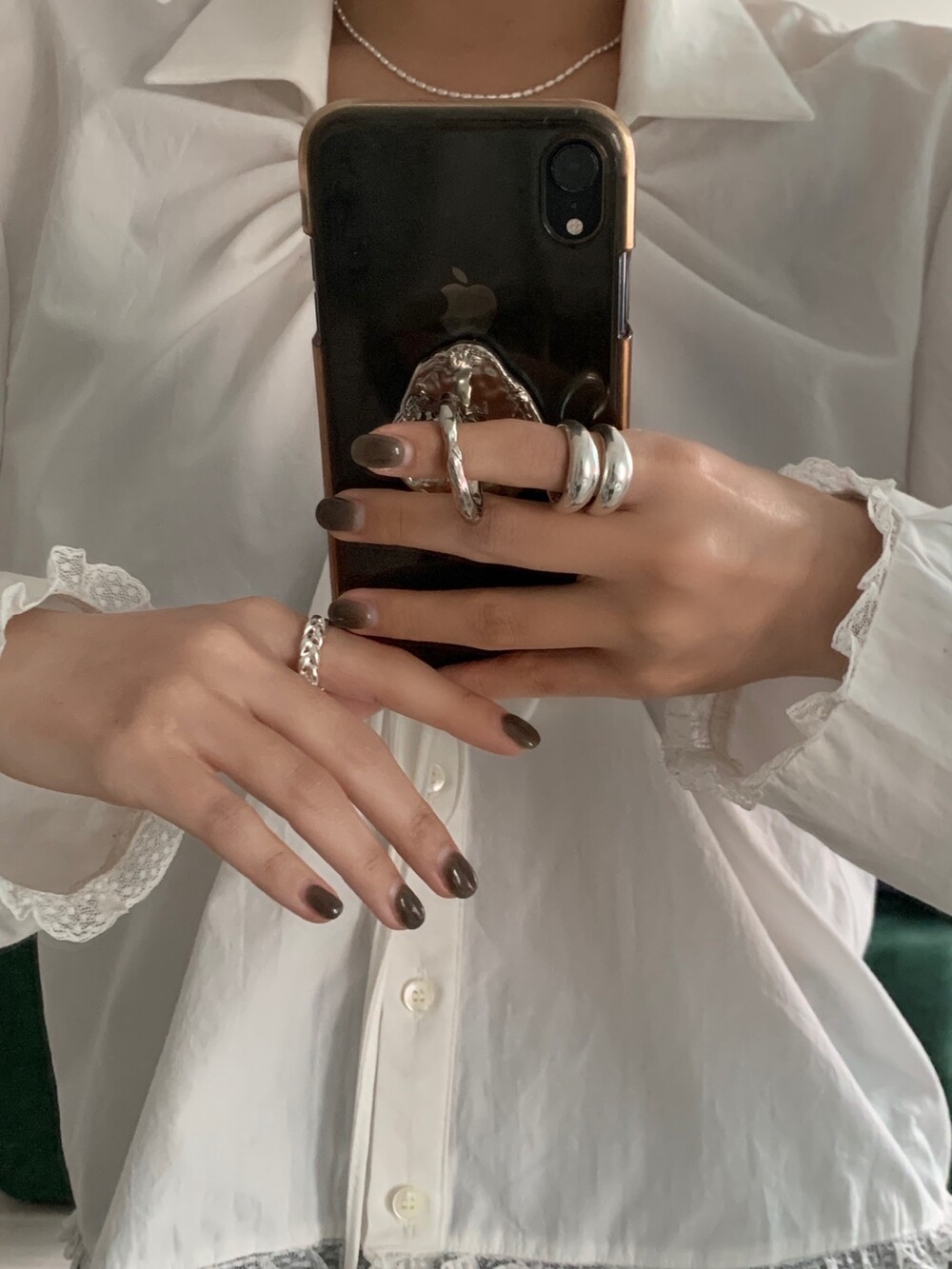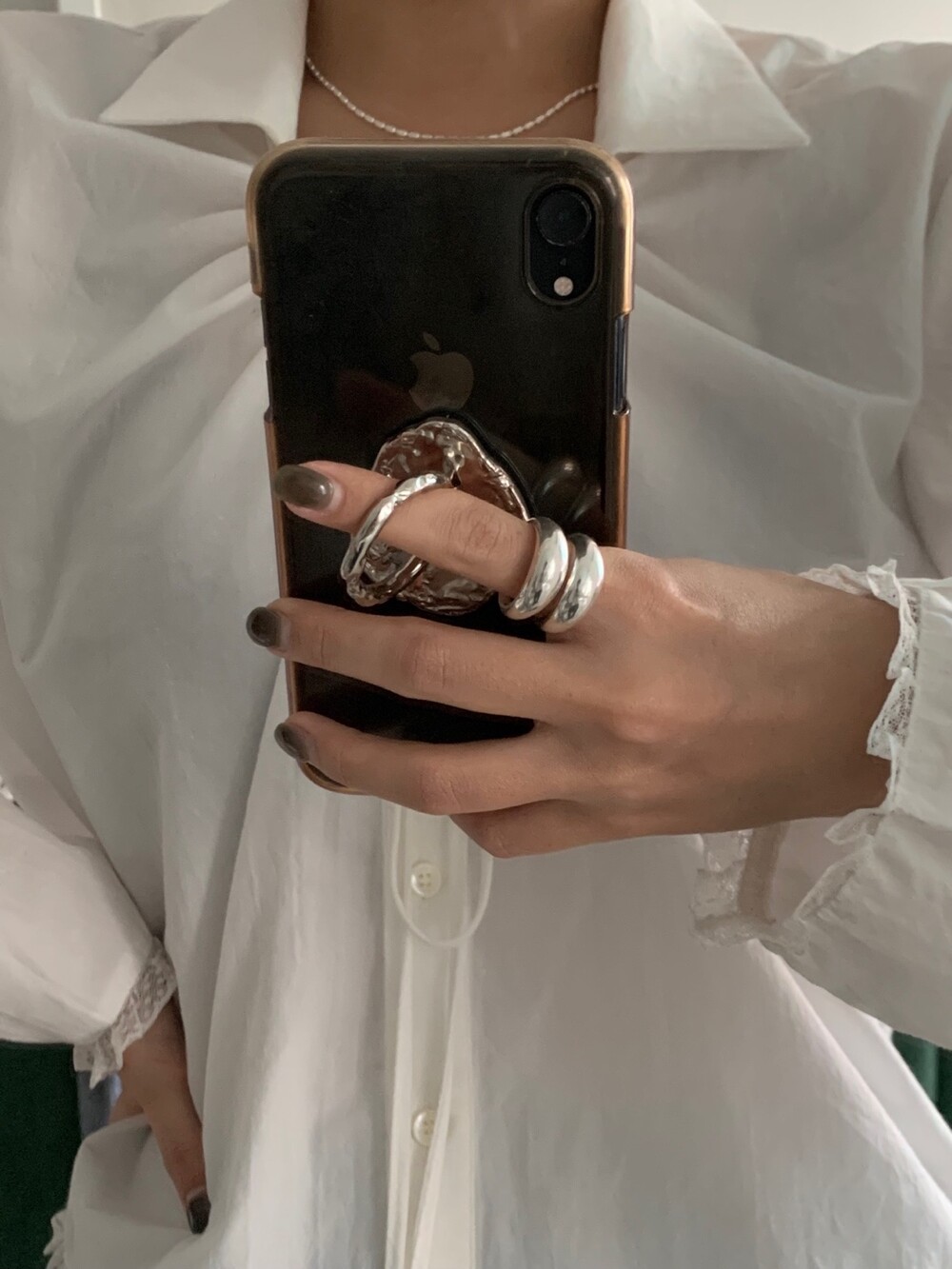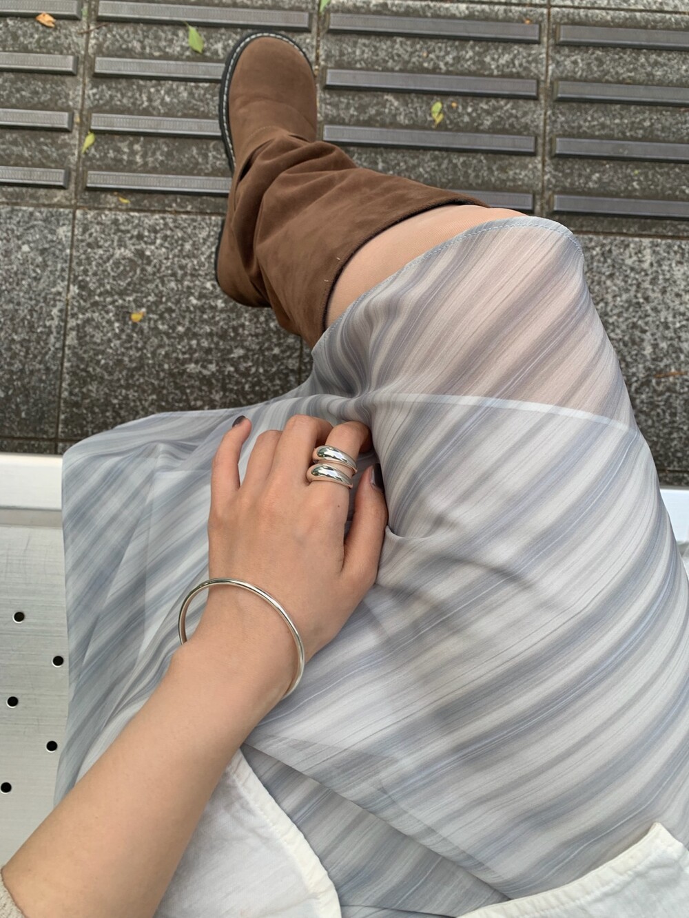 볼륨감 있는 두 개의 실버 라인이 레이어드한 듯 입체적인 실루엣을 완성해, 간결하면서도 강렬한 인상을 남깁니다.