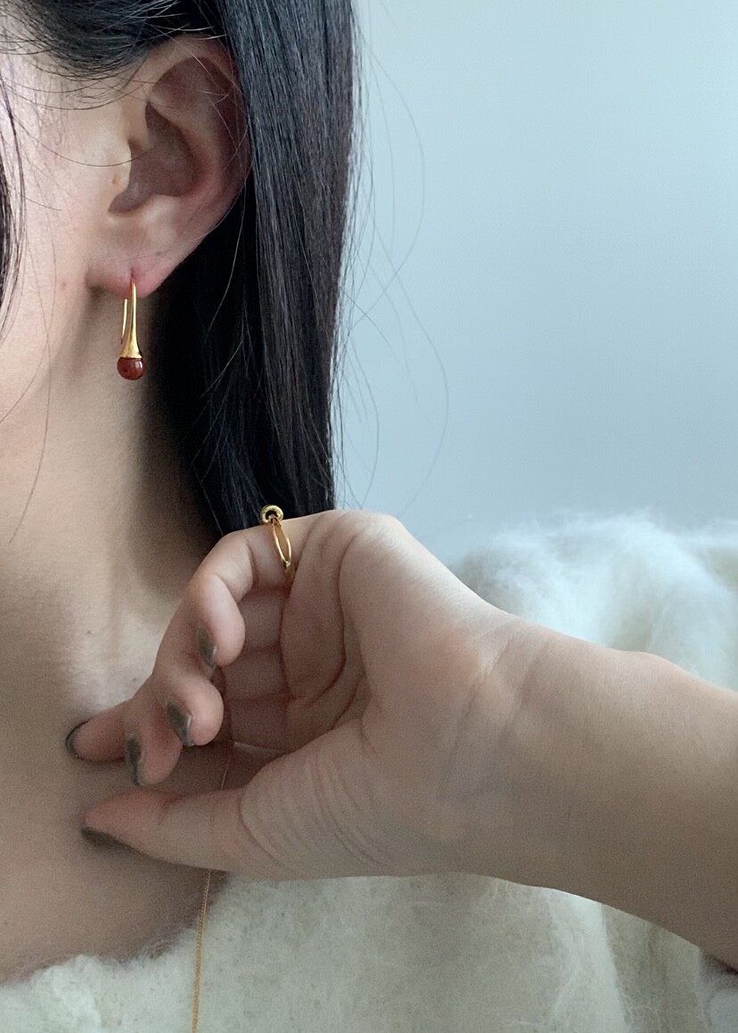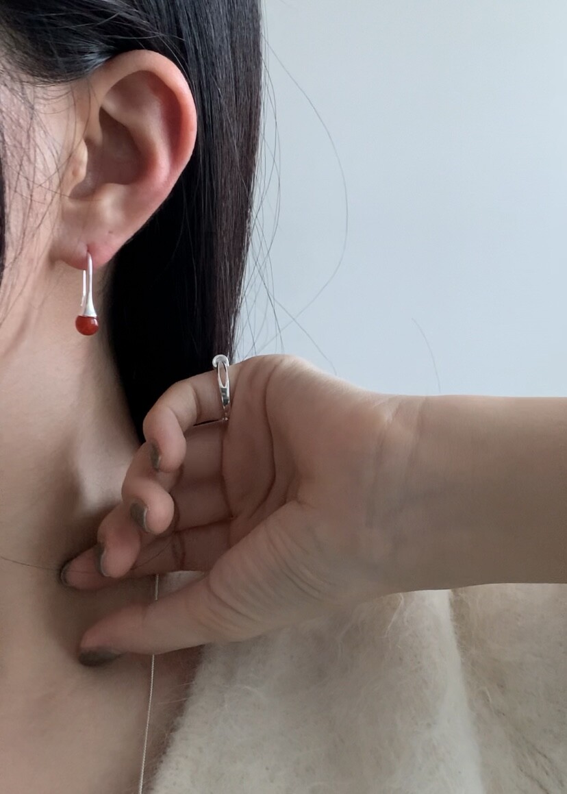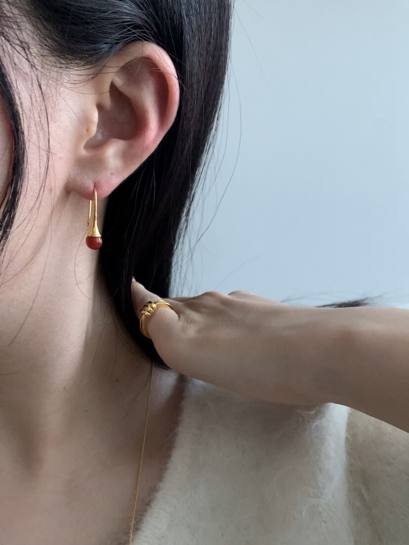 (silver925) Red sunset drop earrings