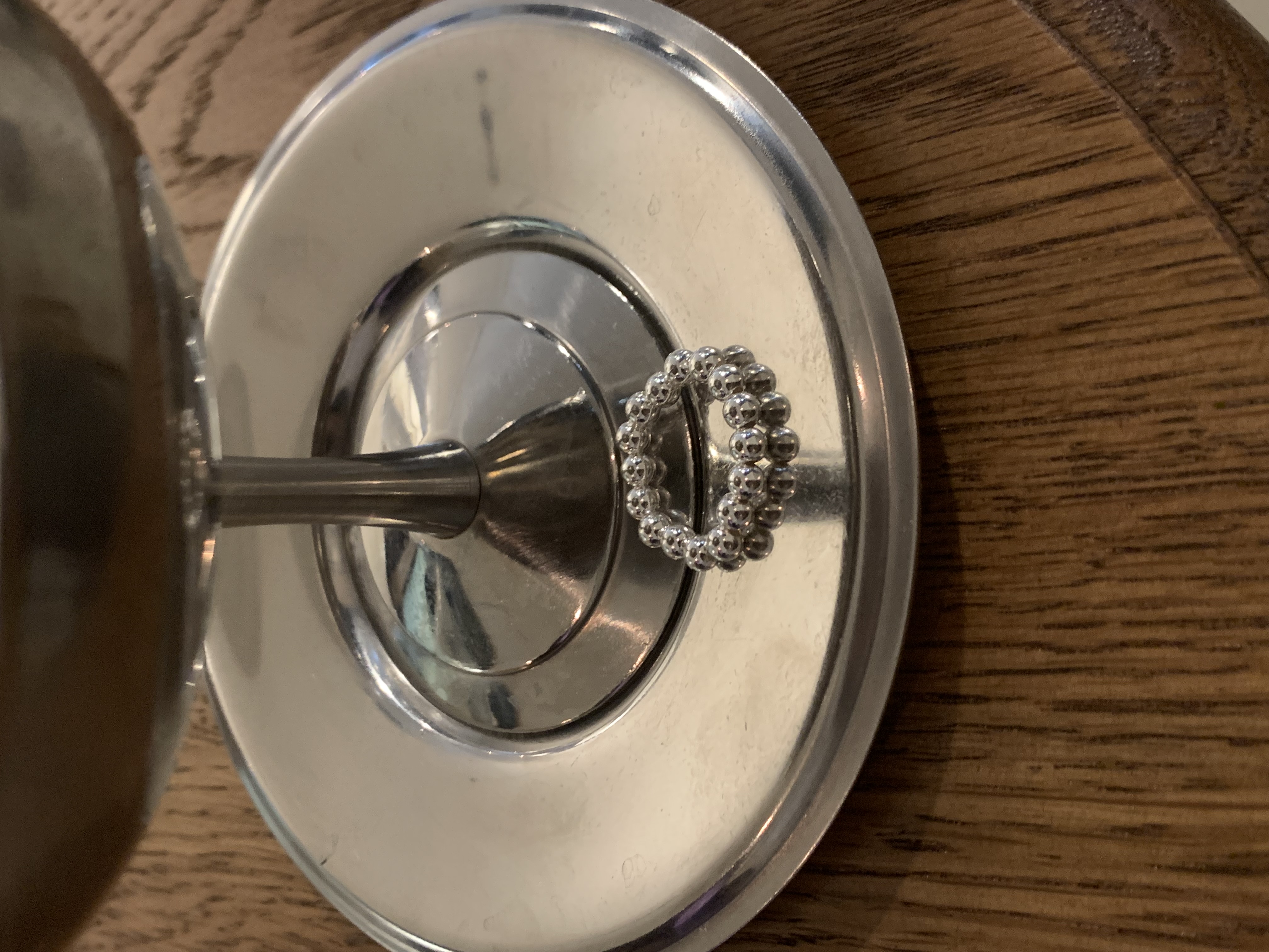 은은하게 빛나는 실버 볼이 일정한 리듬으로 이어진 밴드링.