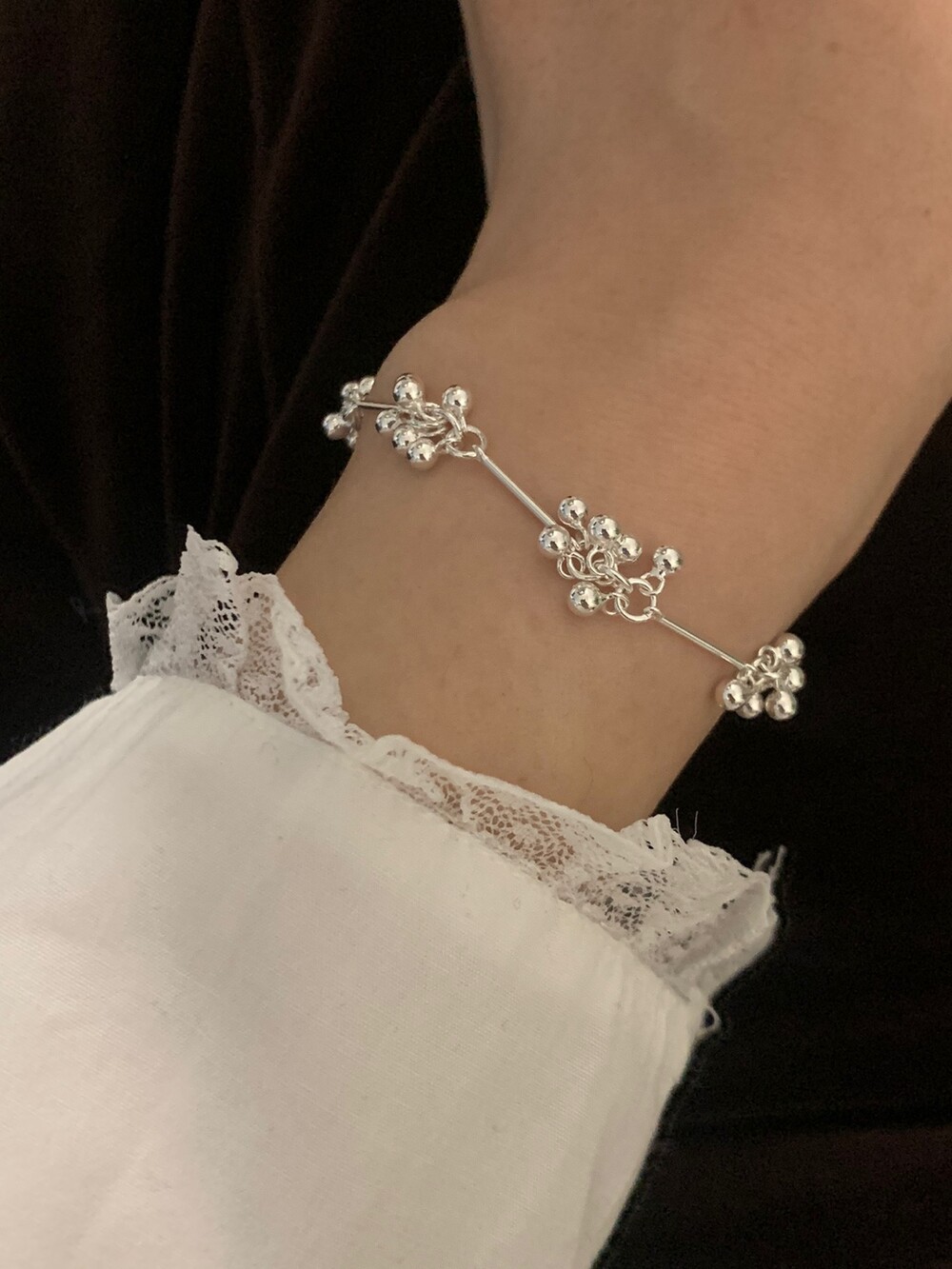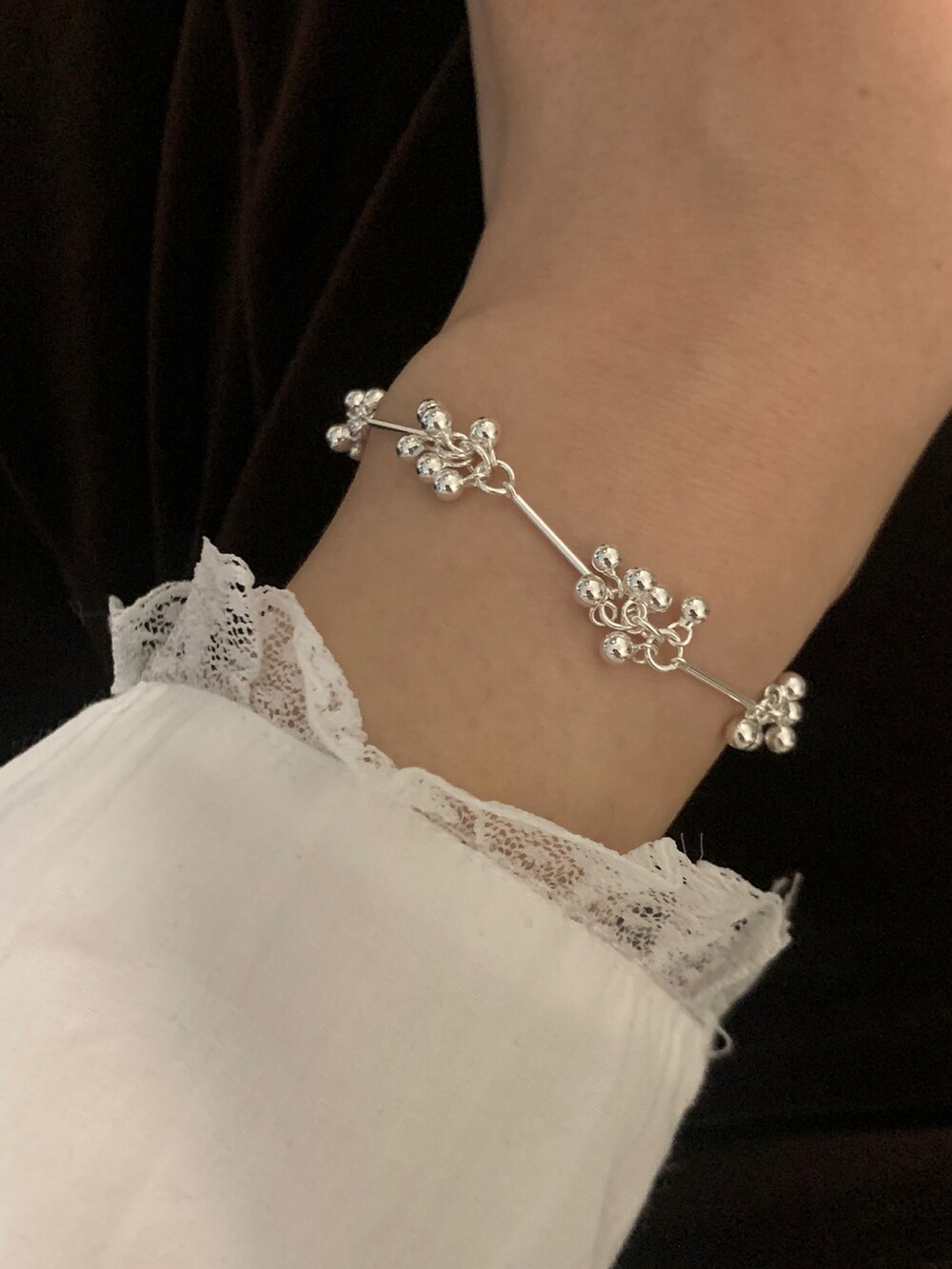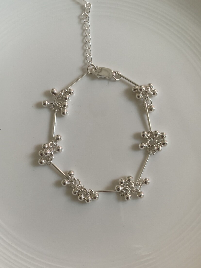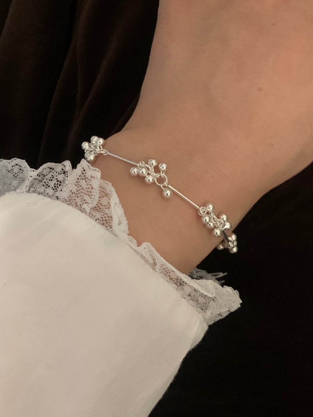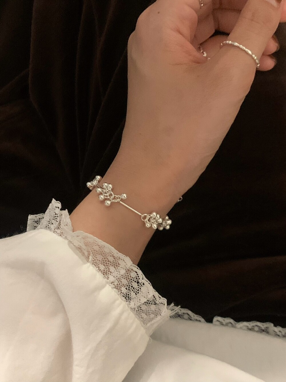 작은 실버 구슬들이 모여 멋스러운 디자인을 완성한 감각적인 브레이슬릿.
