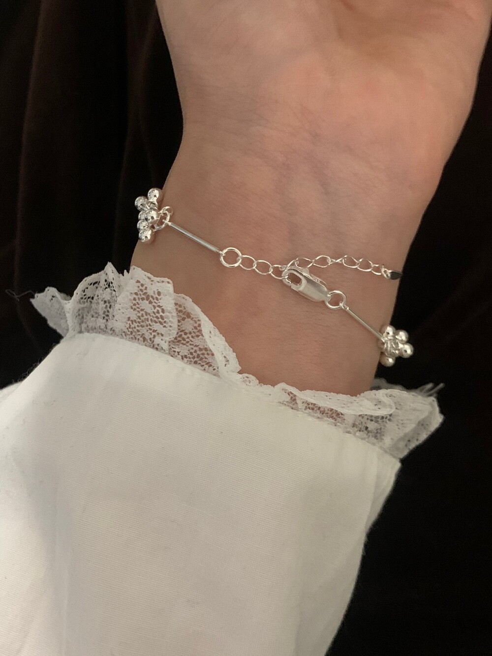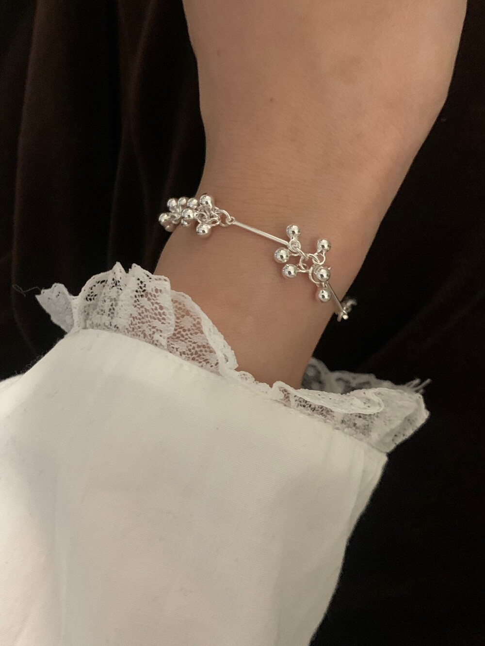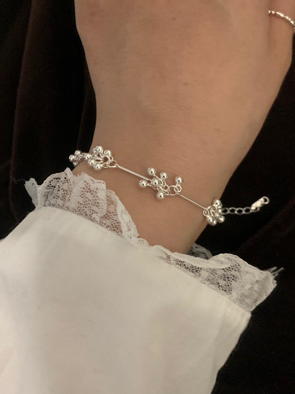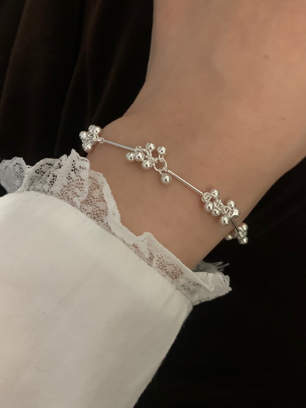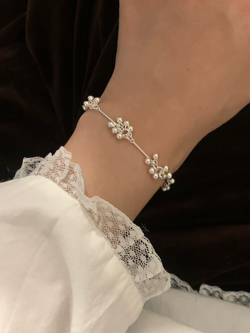 작은 실버 구슬들이 모여 멋스러운 디자인을 완성한 감각적인 브레이슬릿.