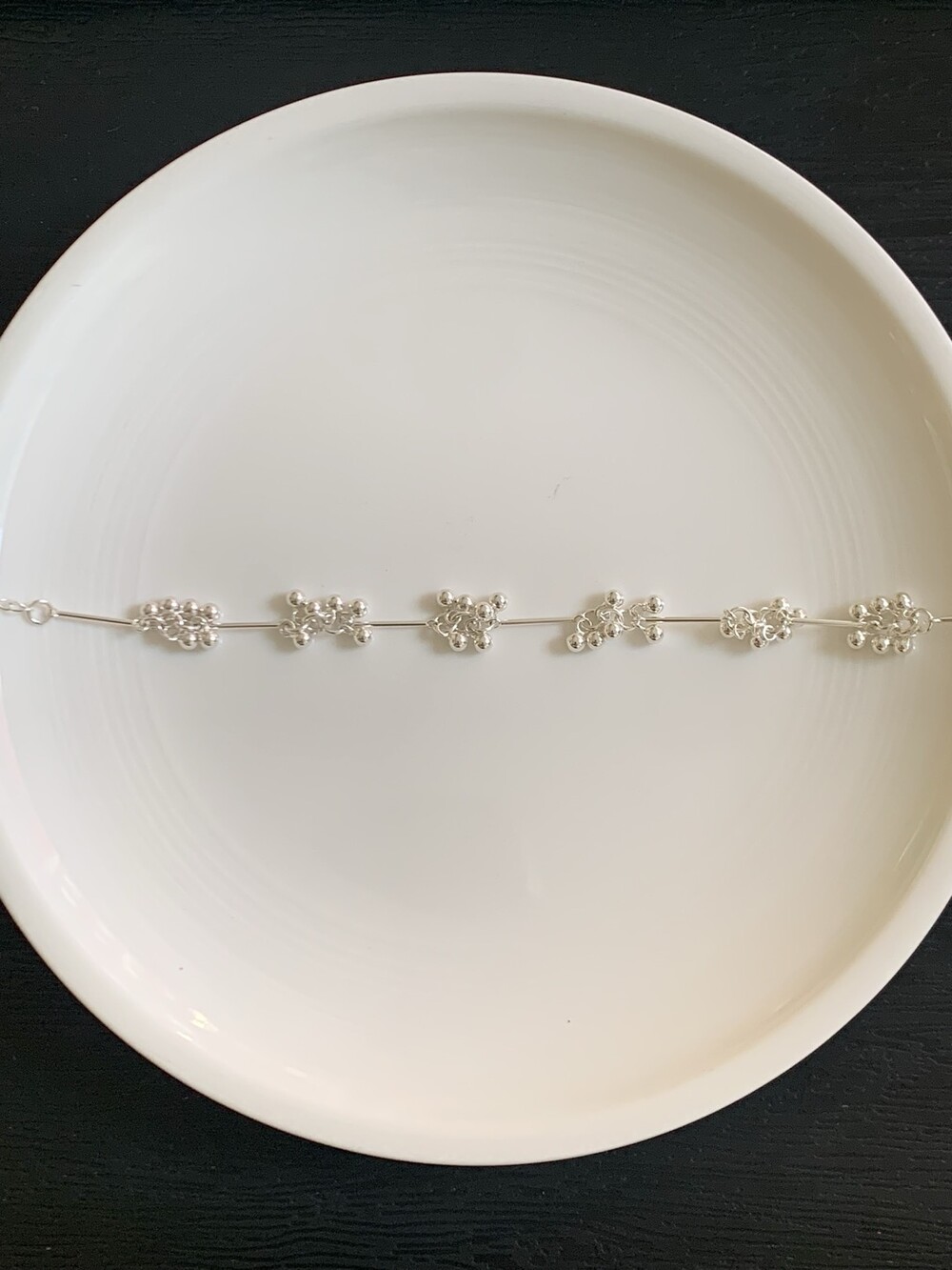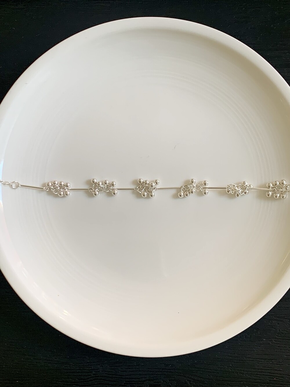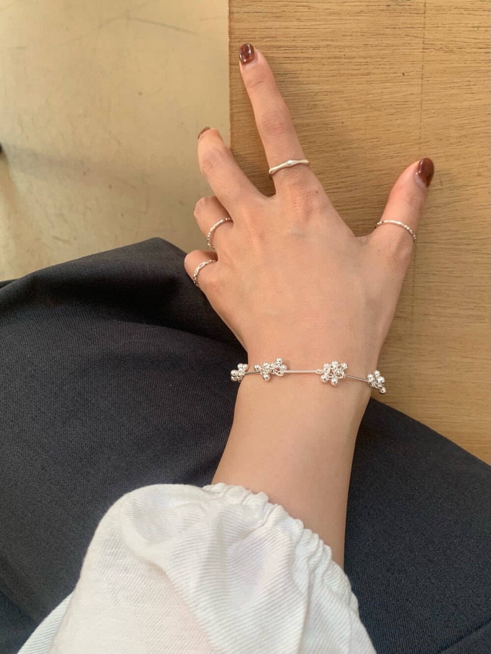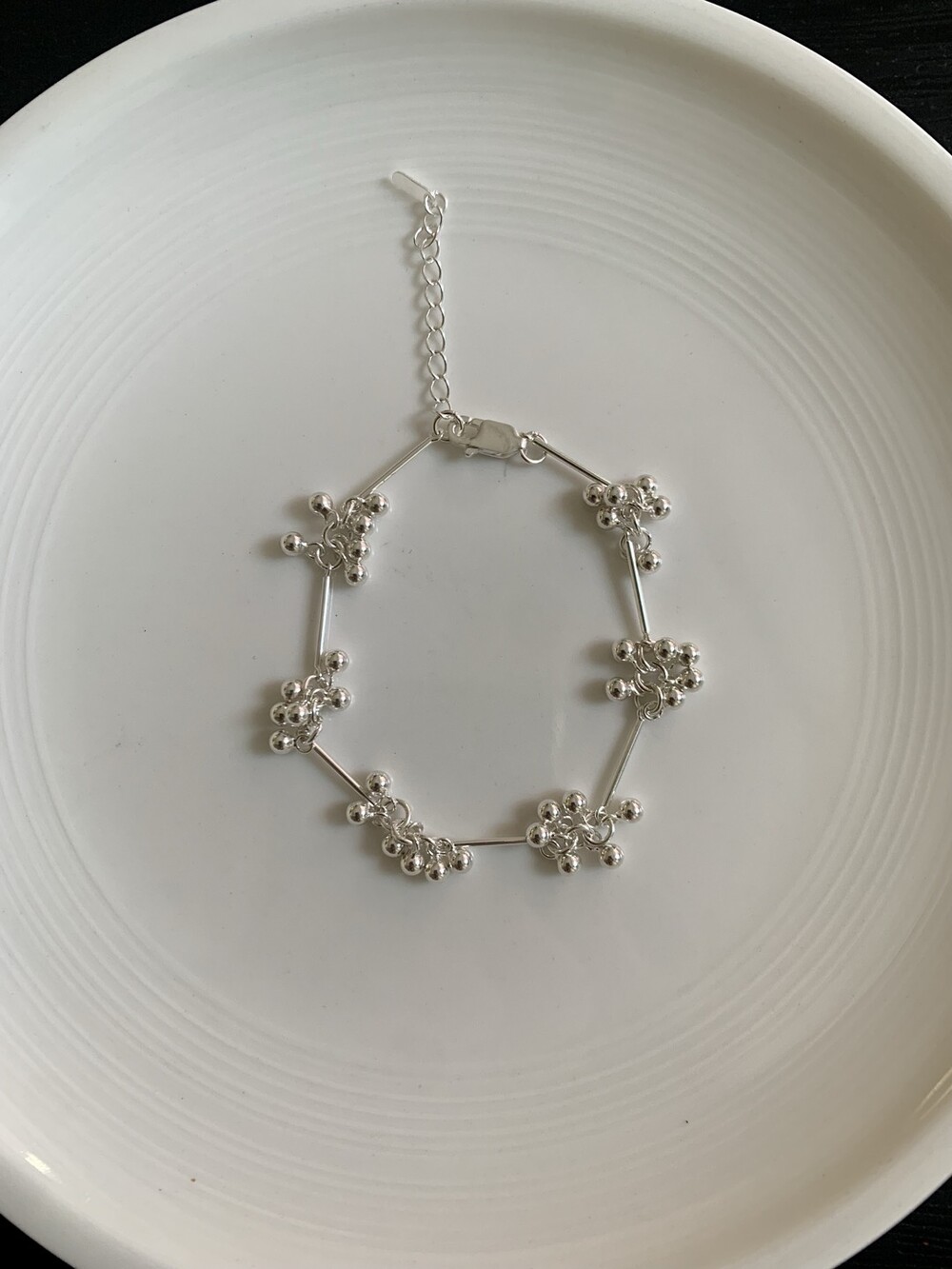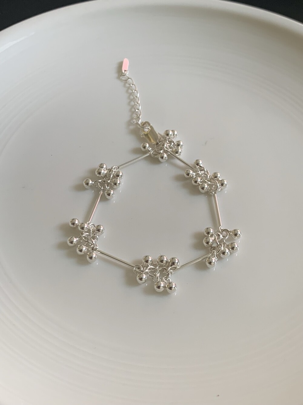 작은 실버 구슬들이 모여 멋스러운 디자인을 완성한 감각적인 브레이슬릿.