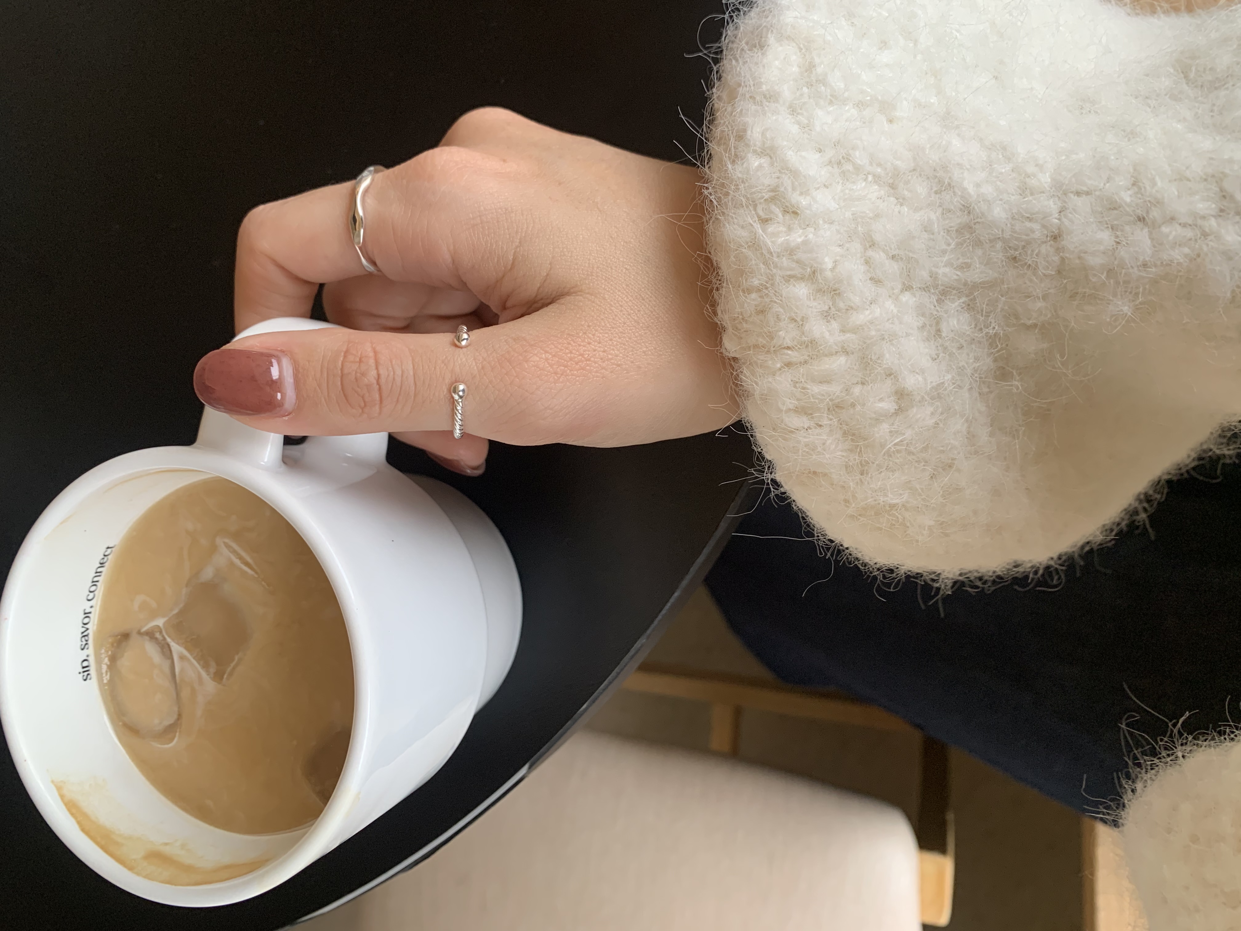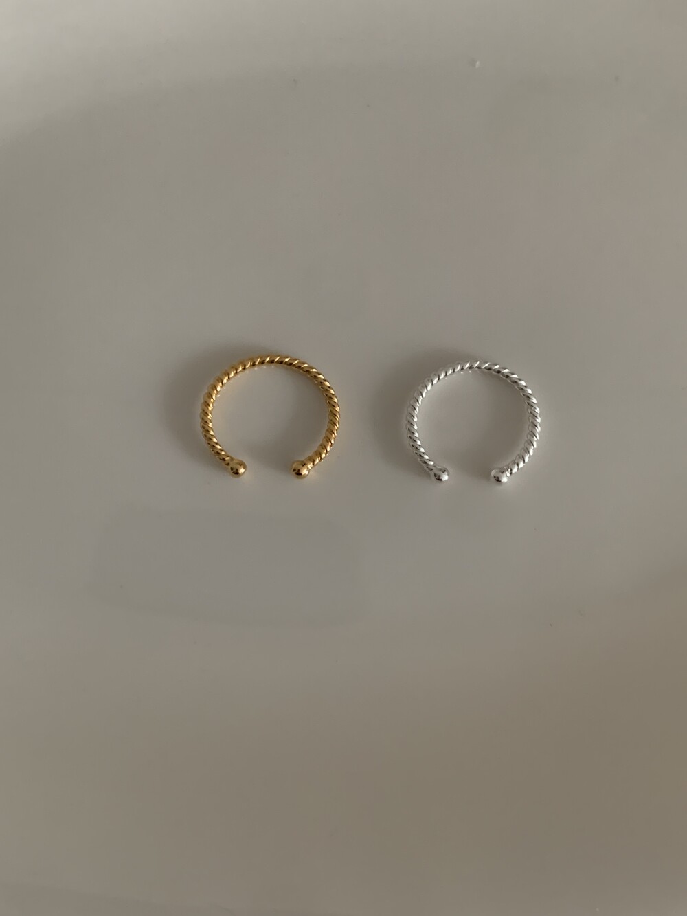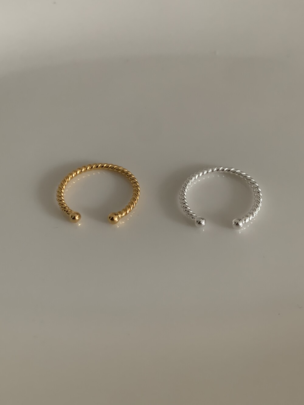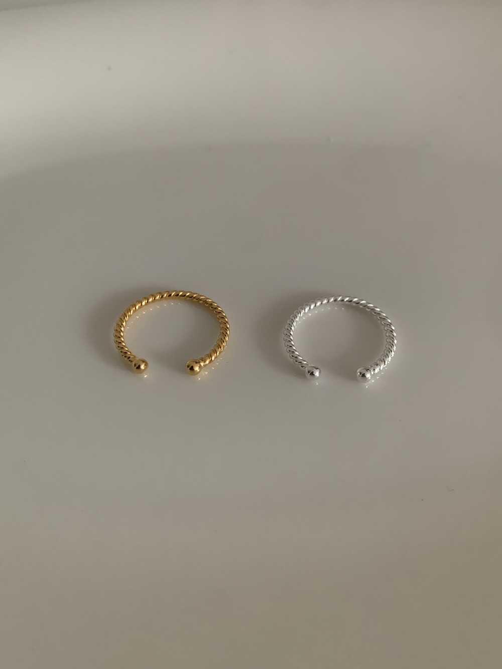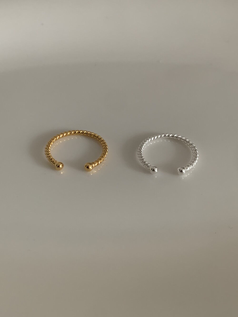 오픈된 부분을 안쪽으로 돌리면 얇은 실반지처럼 정제된 무드로 착용할 수 있는 투웨이 링입니다.
