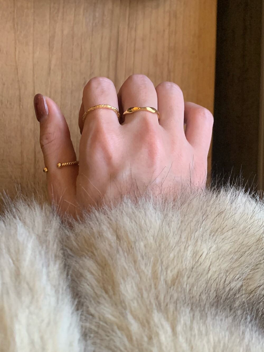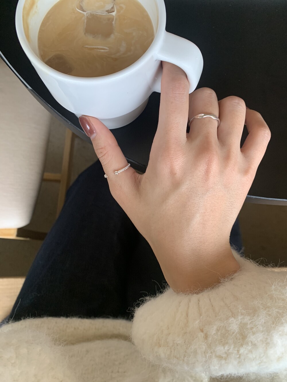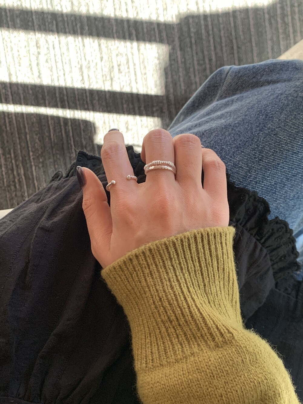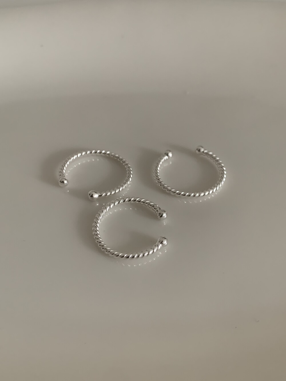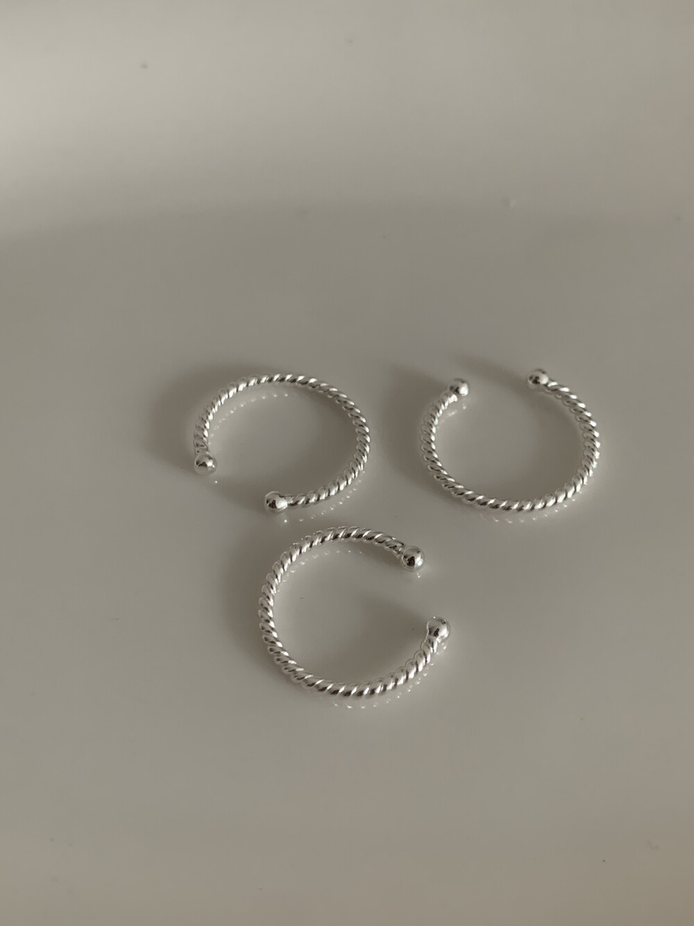오픈된 부분을 안쪽으로 돌리면 얇은 실반지처럼 정제된 무드로 착용할 수 있는 투웨이 링입니다.