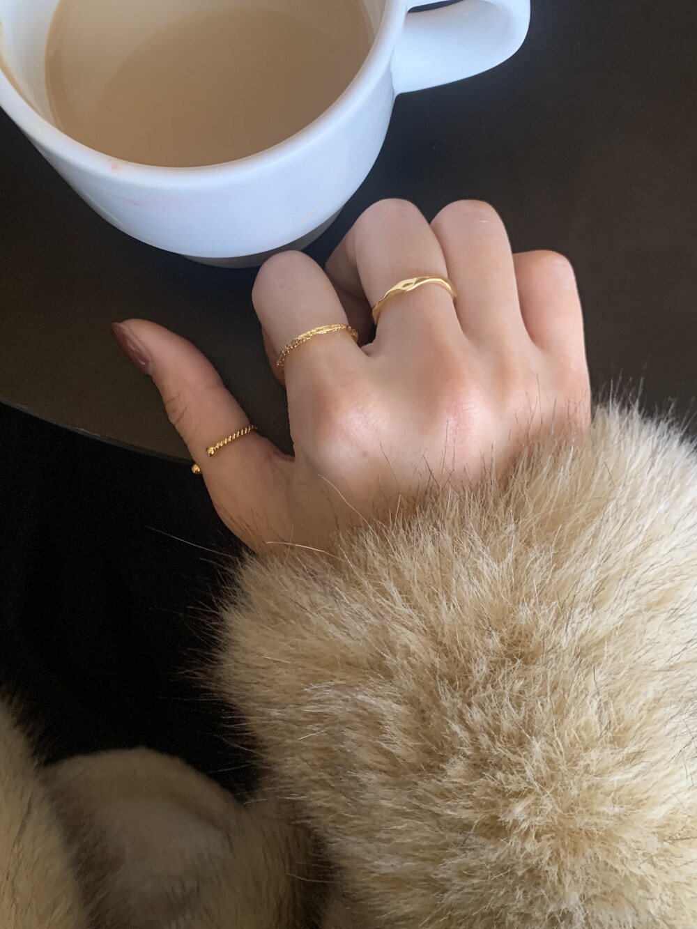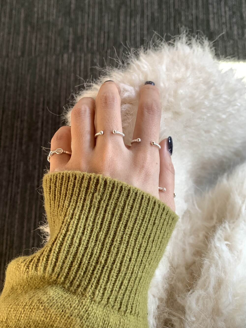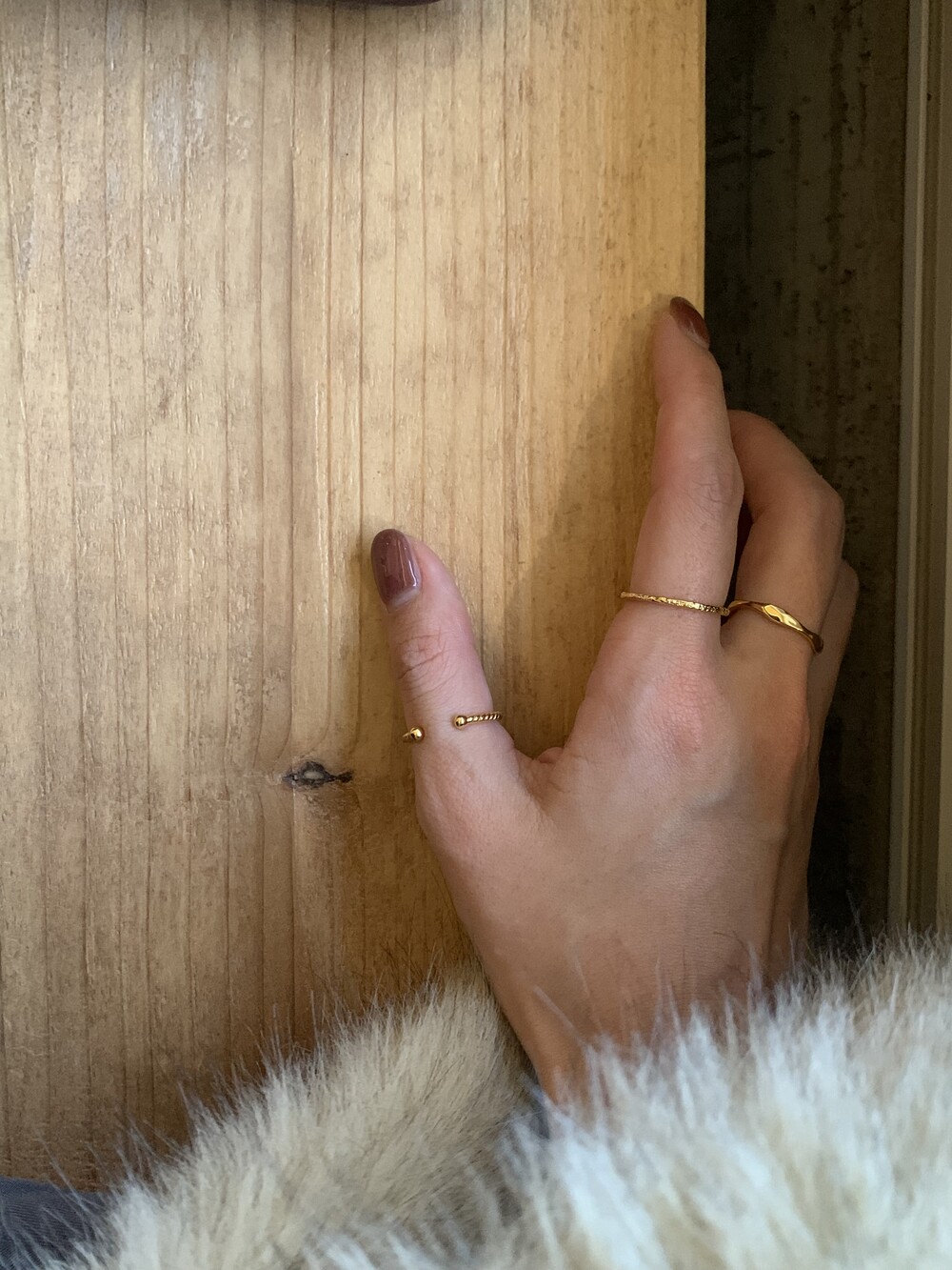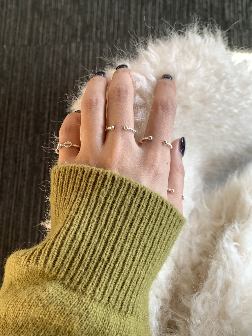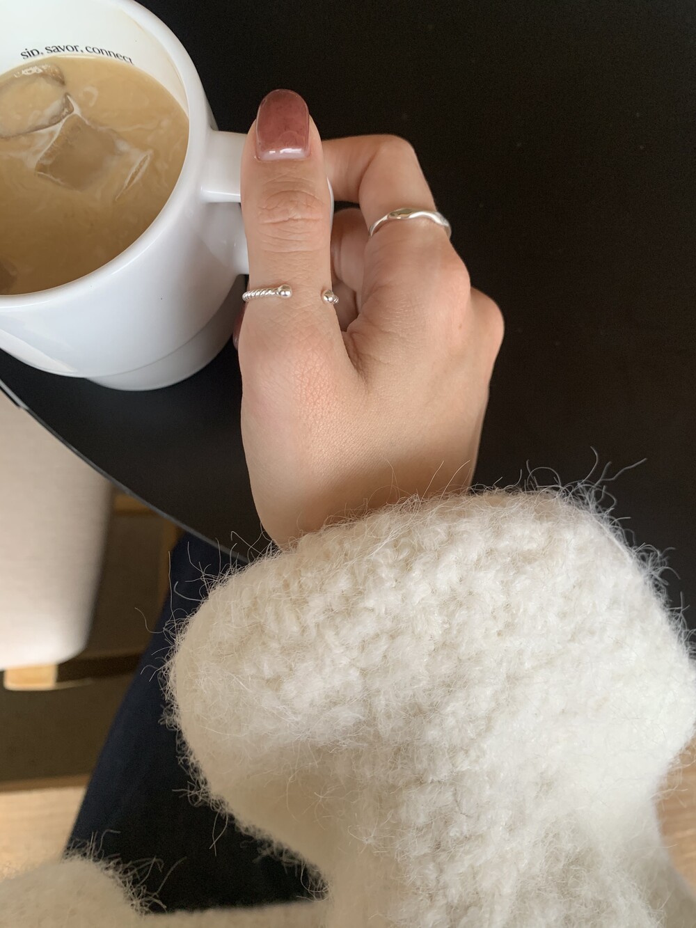 오픈된 부분을 안쪽으로 돌리면 얇은 실반지처럼 정제된 무드로 착용할 수 있는 투웨이 링입니다.