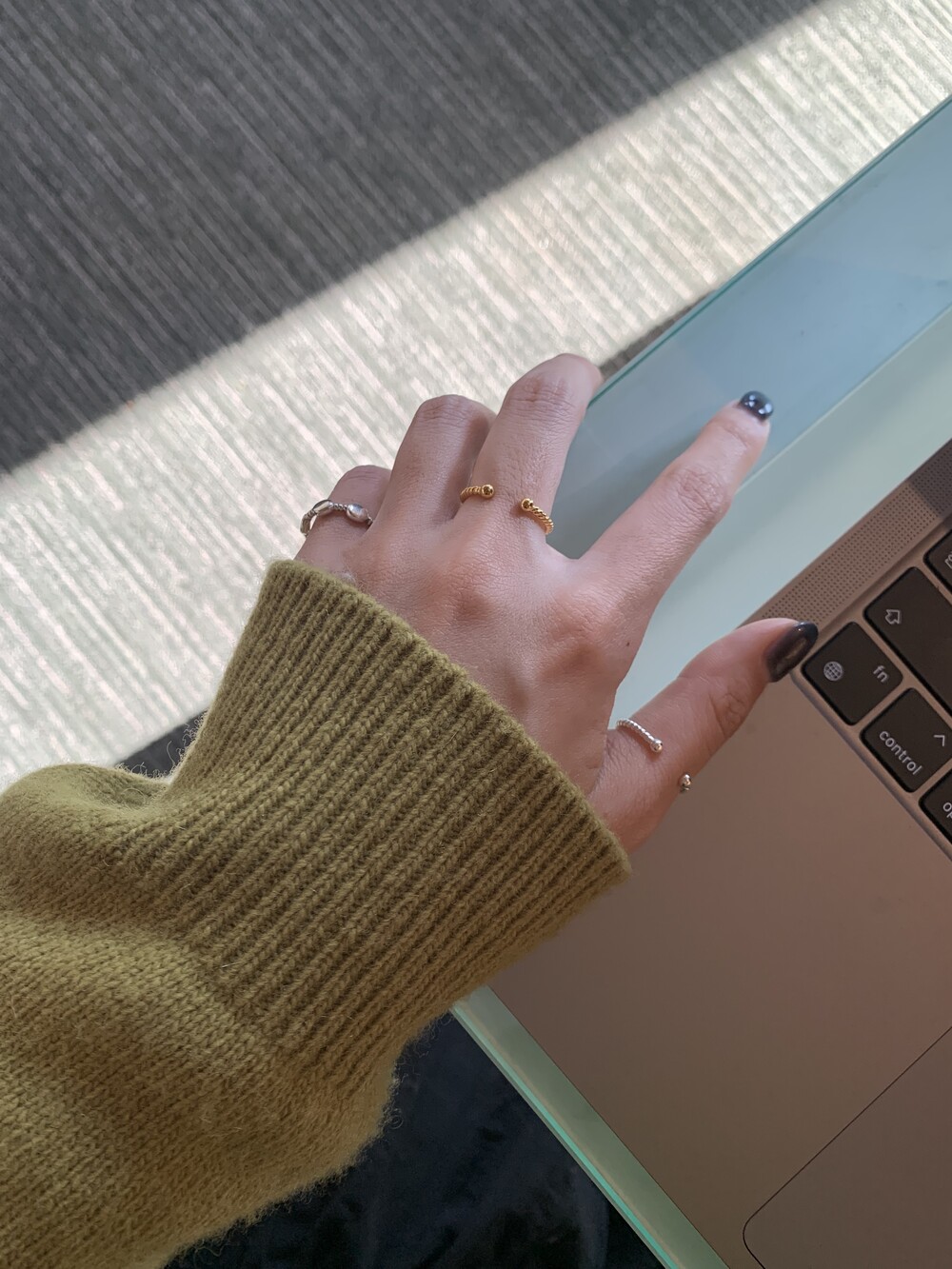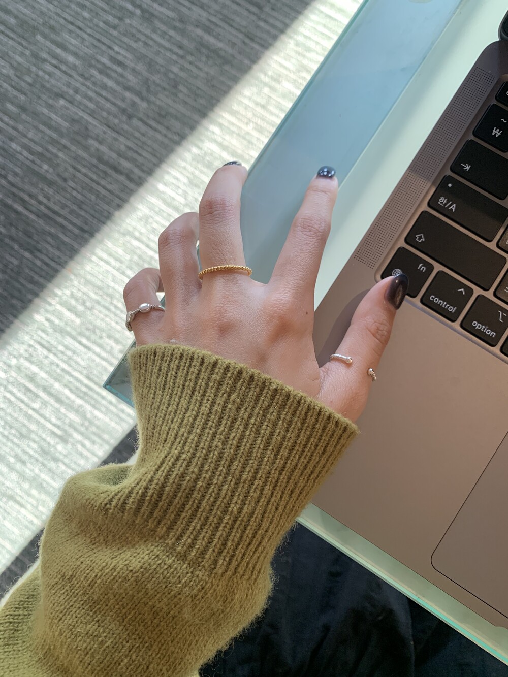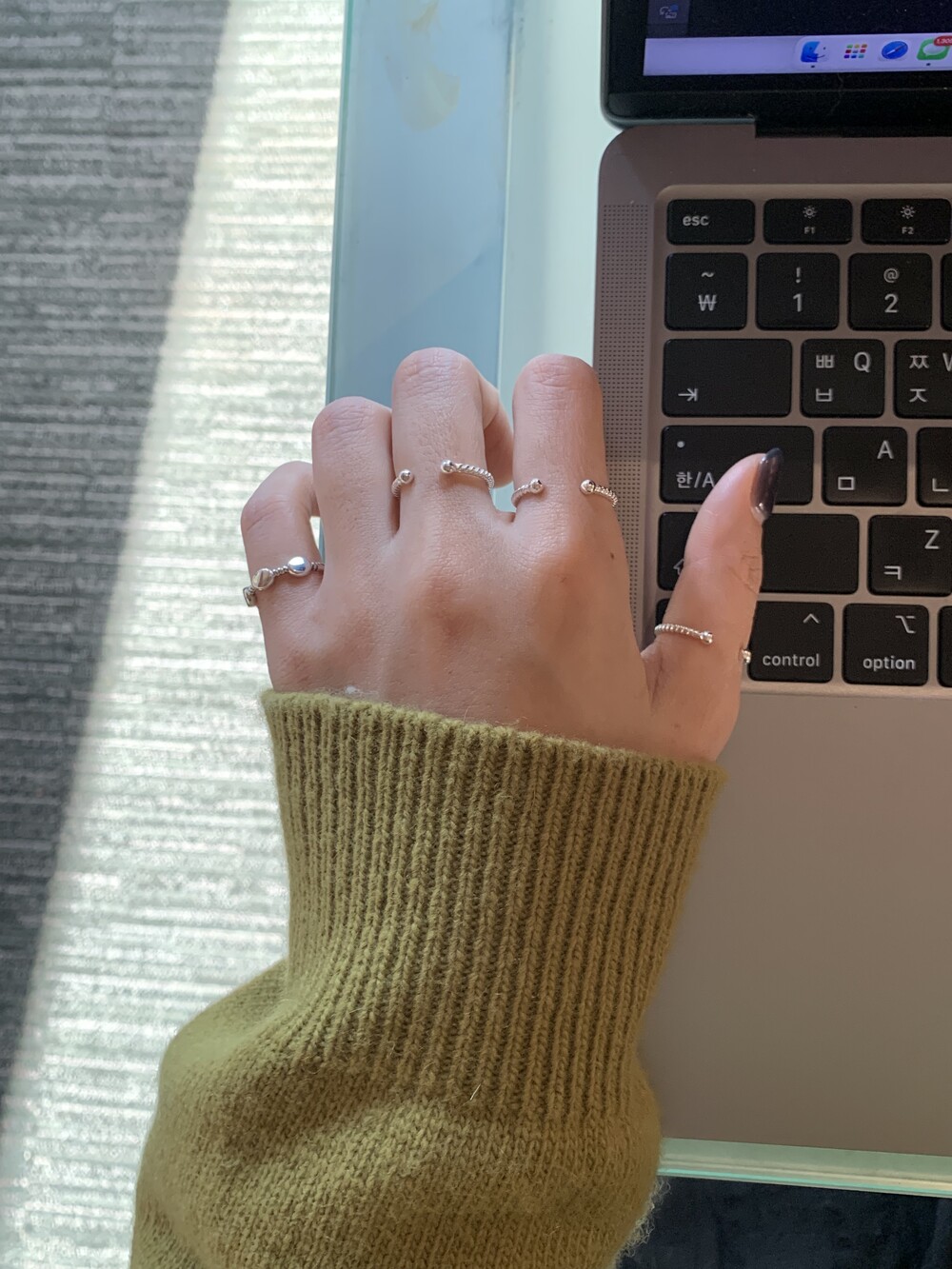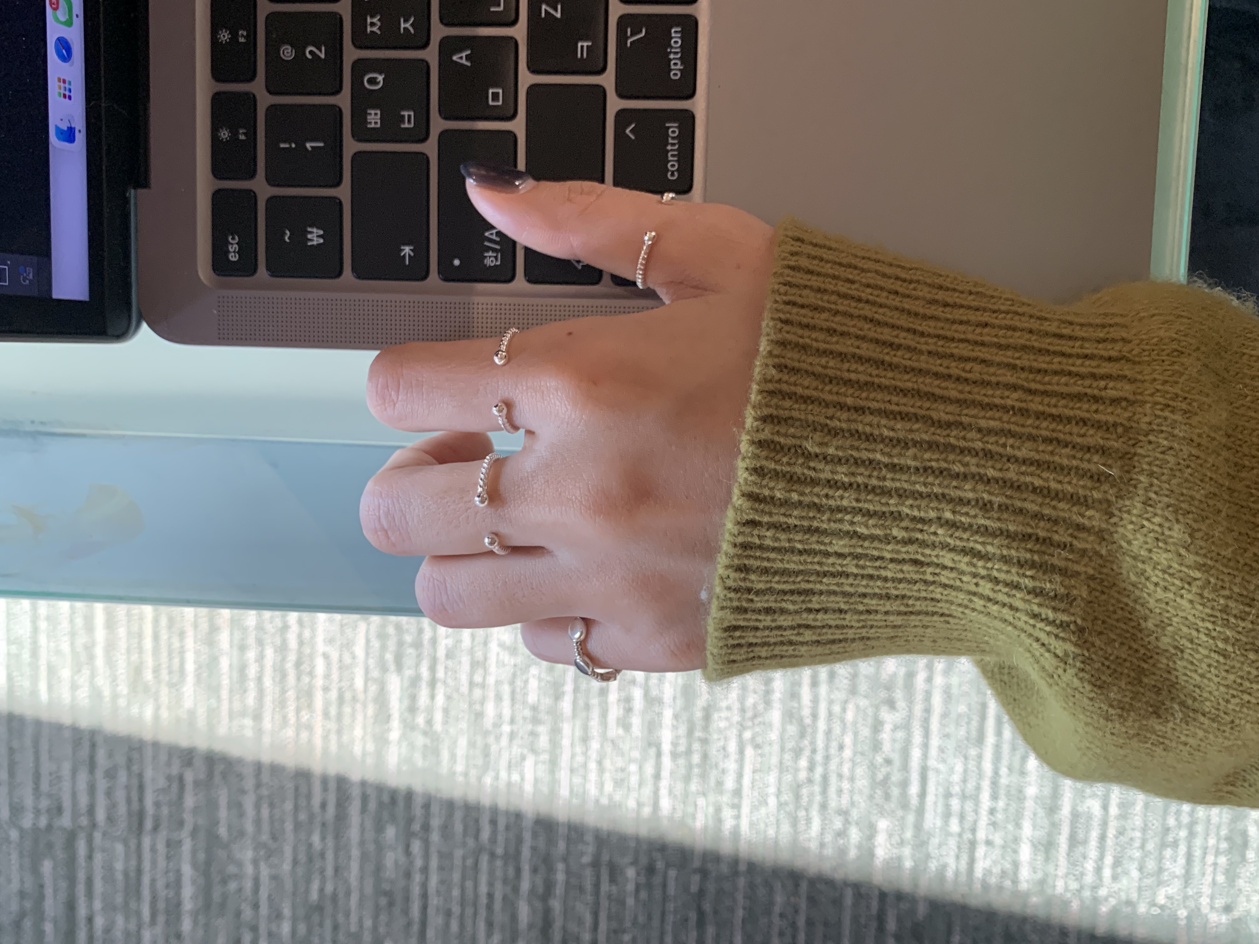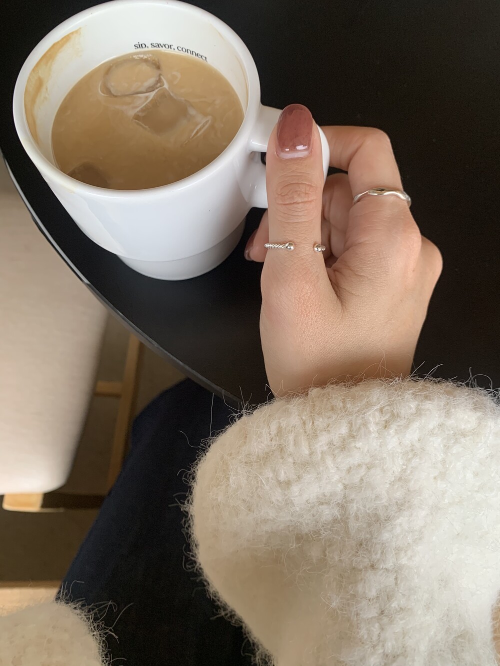 오픈된 부분을 안쪽으로 돌리면 얇은 실반지처럼 정제된 무드로 착용할 수 있는 투웨이 링입니다.