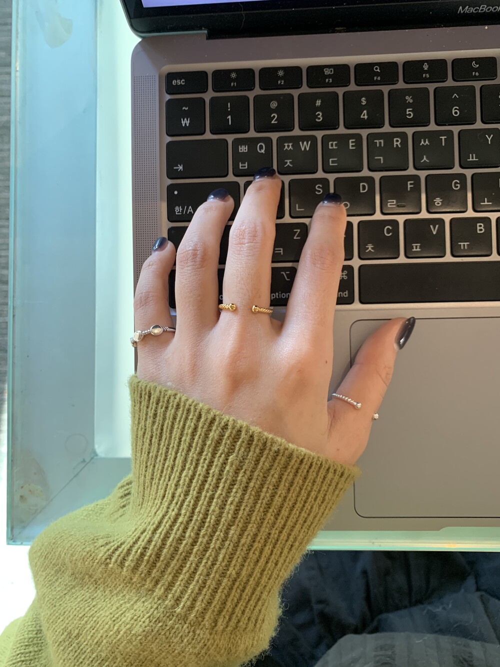오픈된 볼 디테일을 위로 연출하면 포인트 미디링으로,