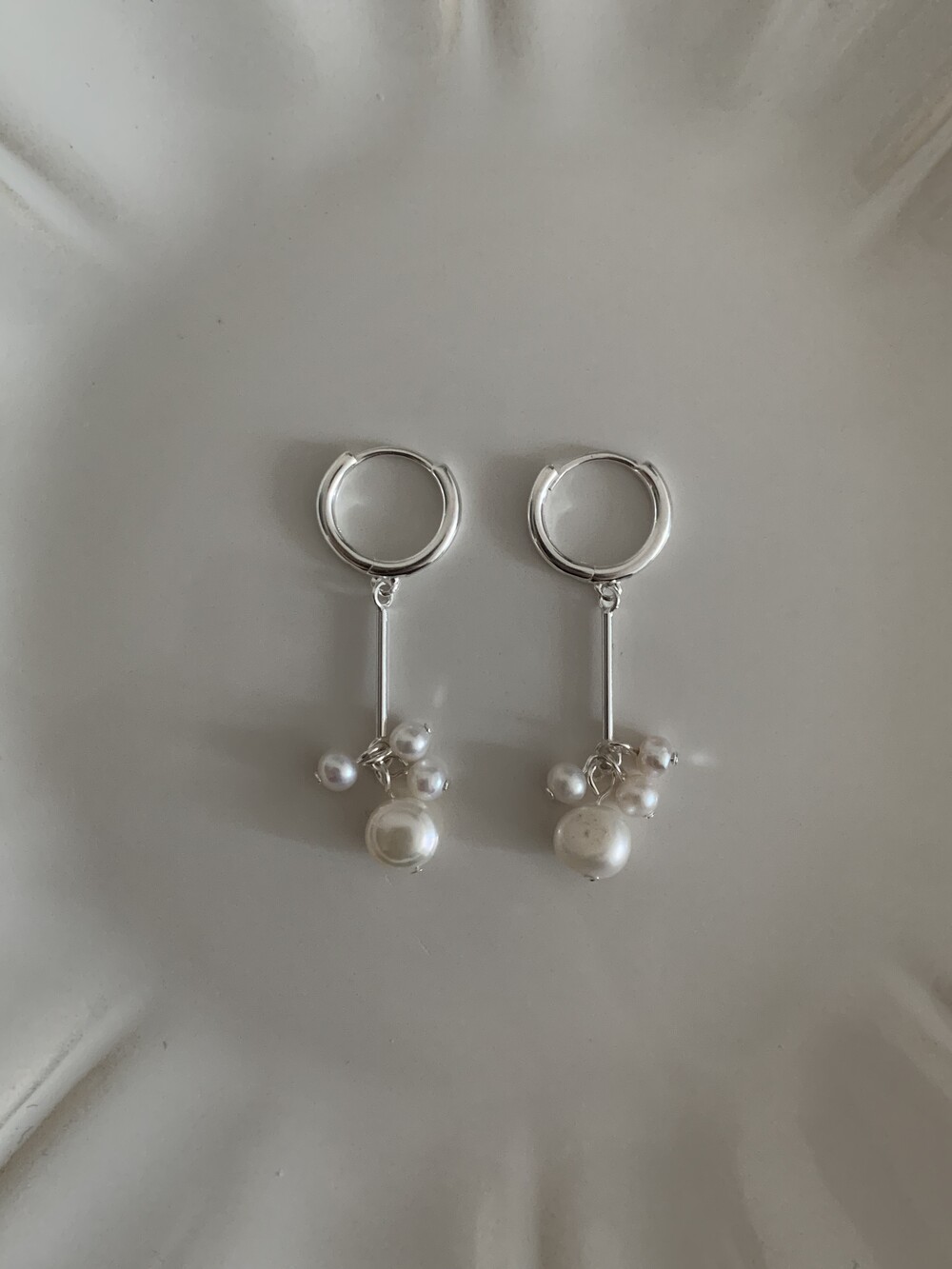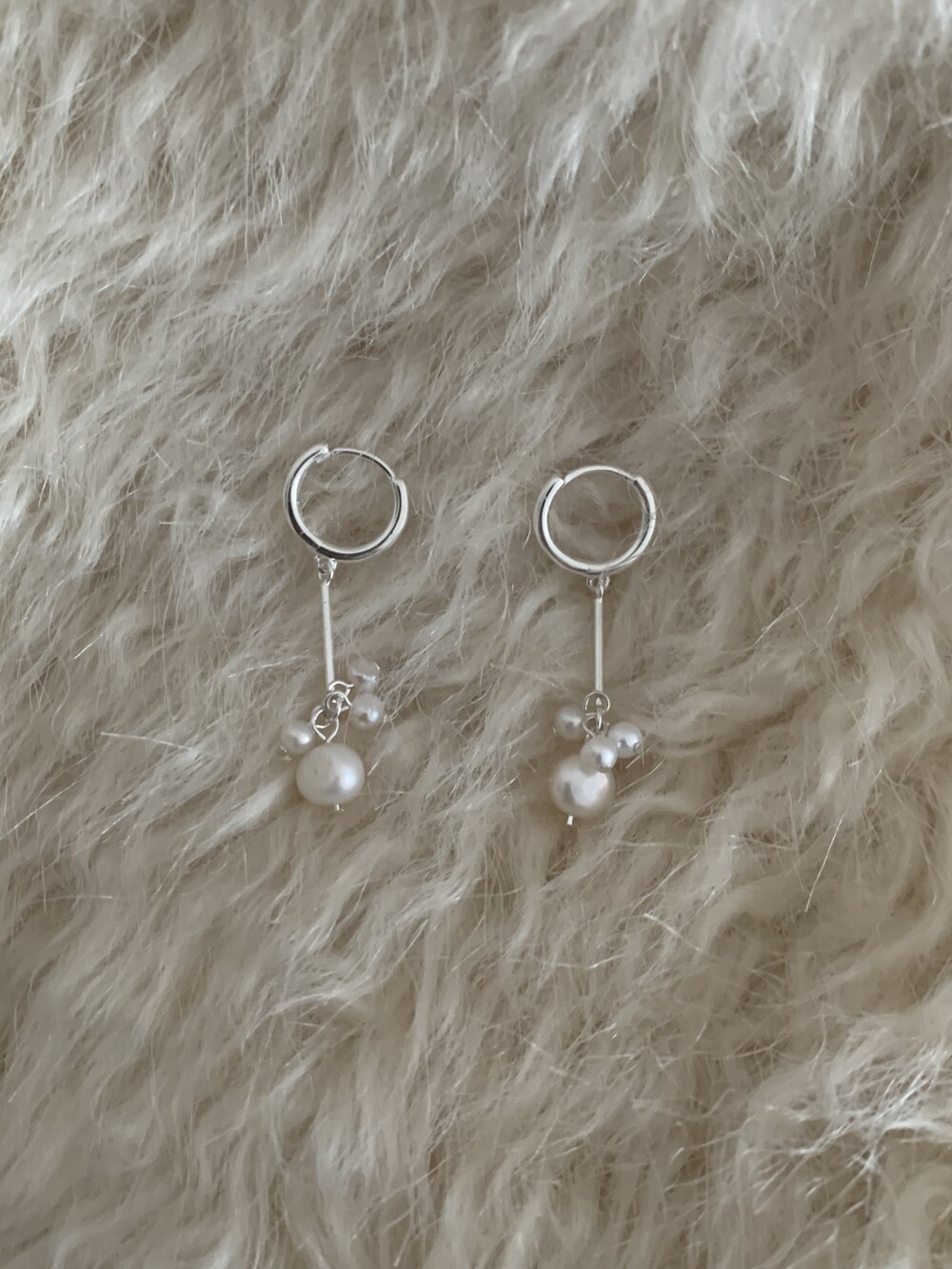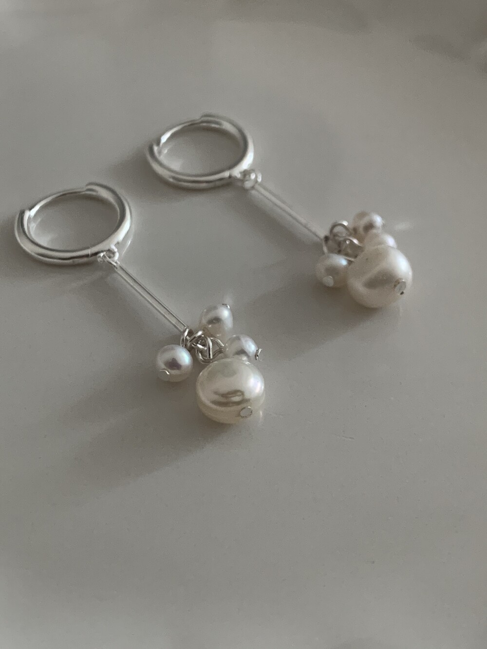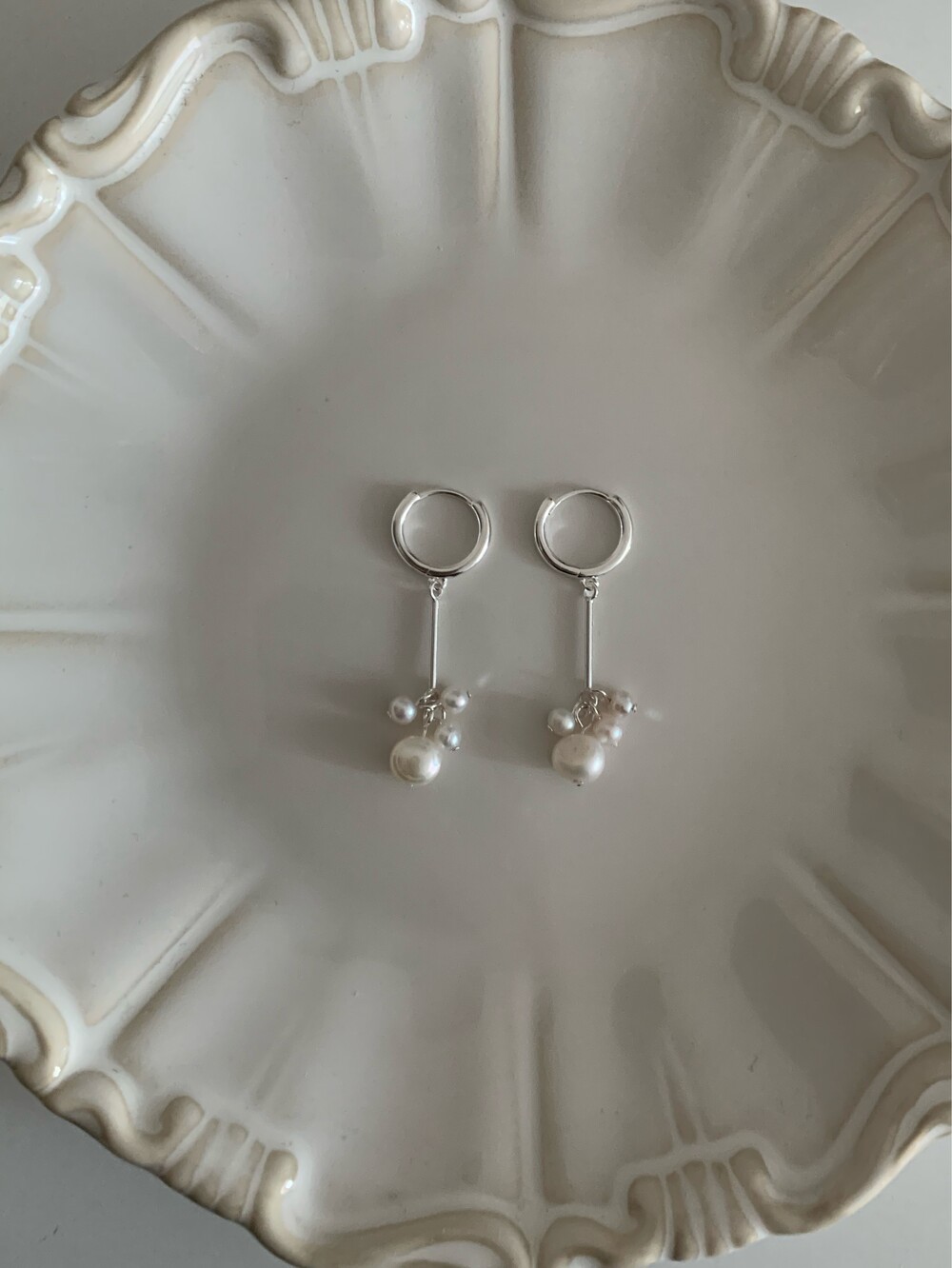 자연스러운 형태의 담수진주가 모여 가볍게 흔들리는 드롭 이어링입니다.