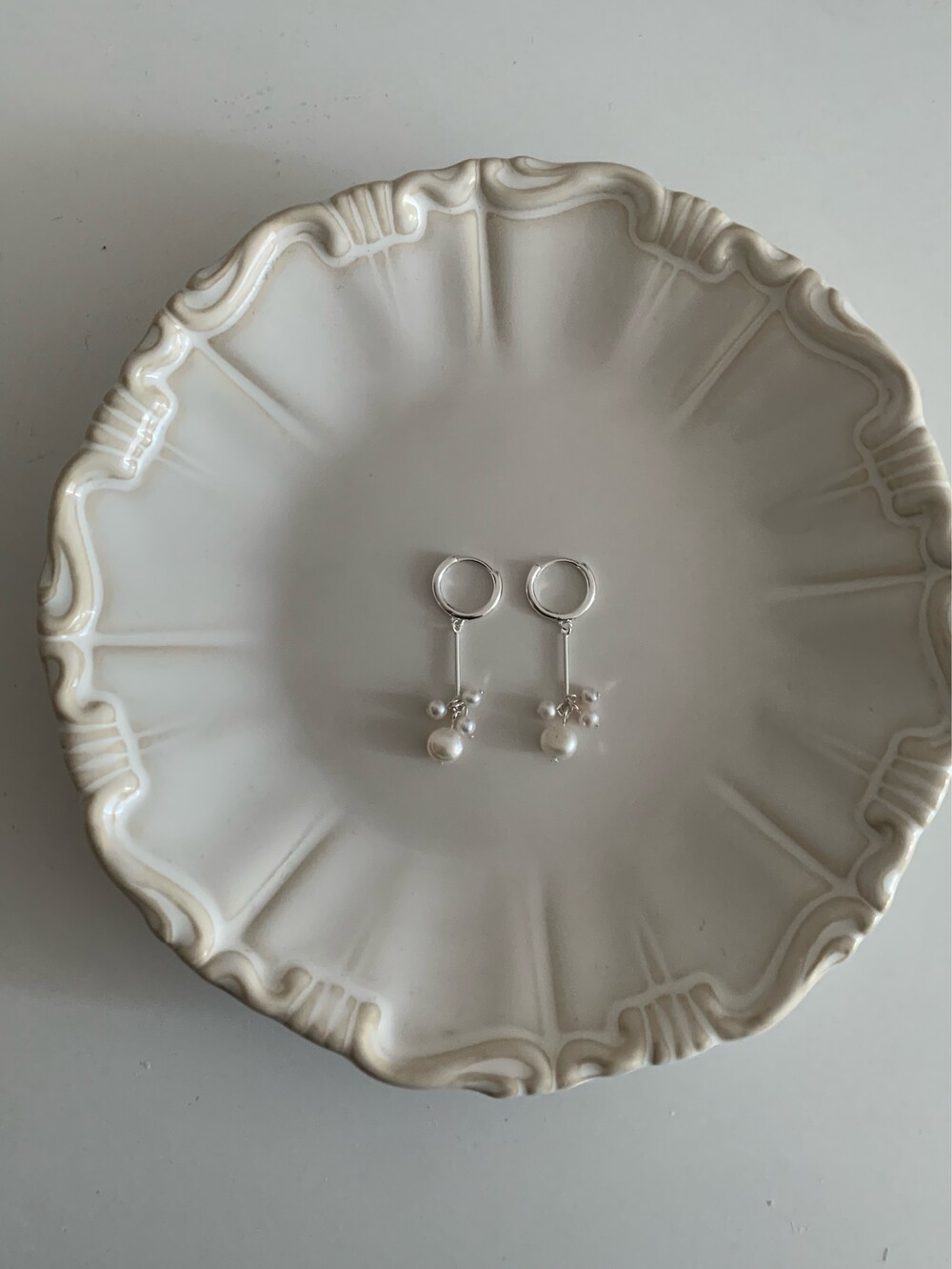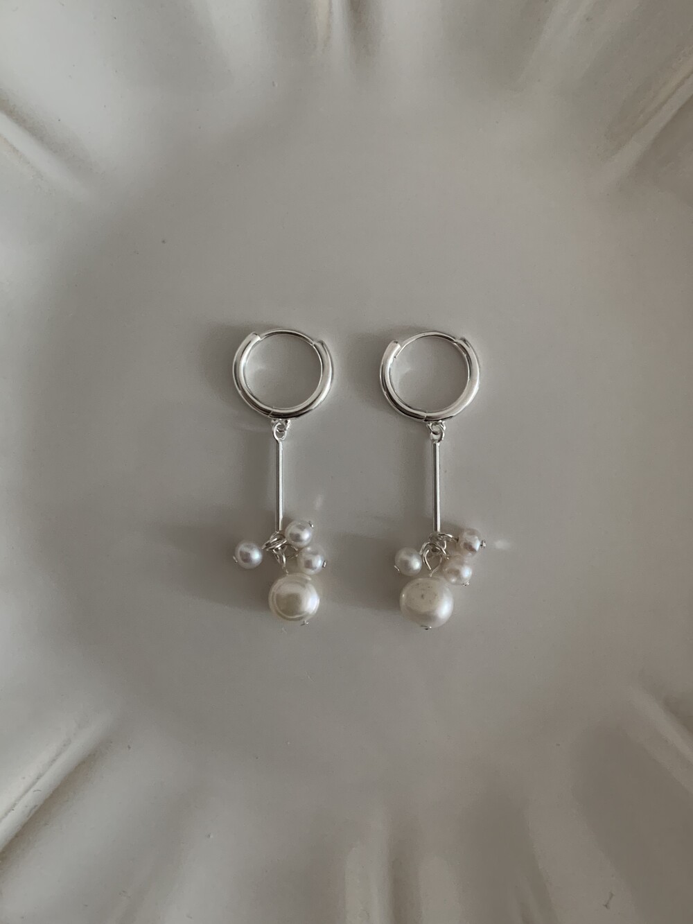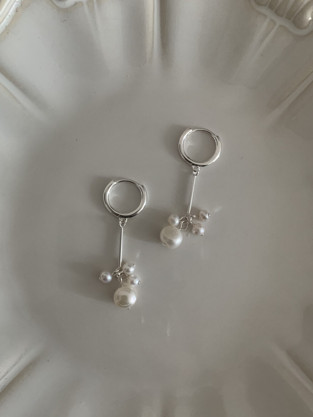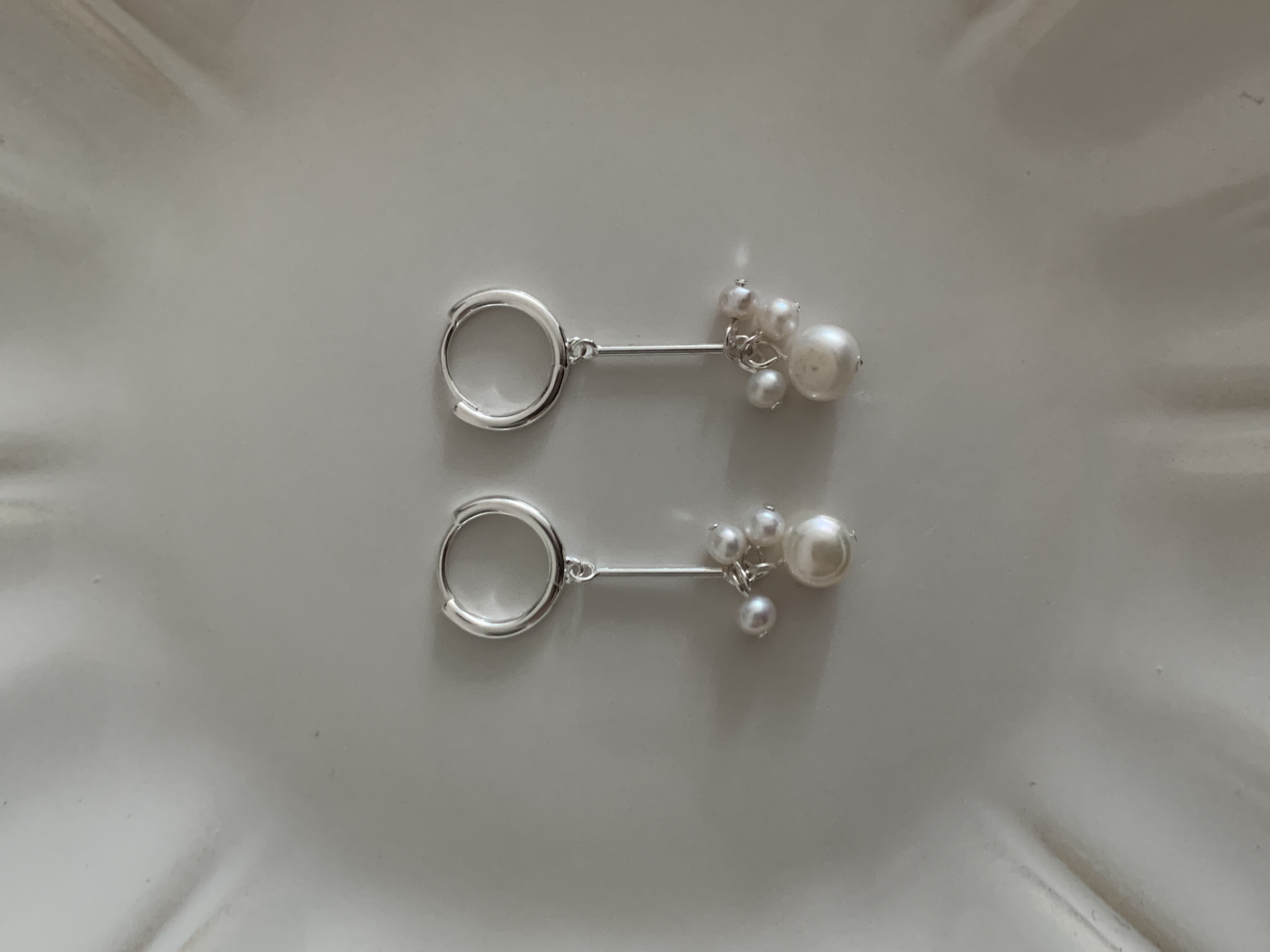 자연스러운 형태의 담수진주가 모여 가볍게 흔들리는 드롭 이어링입니다.