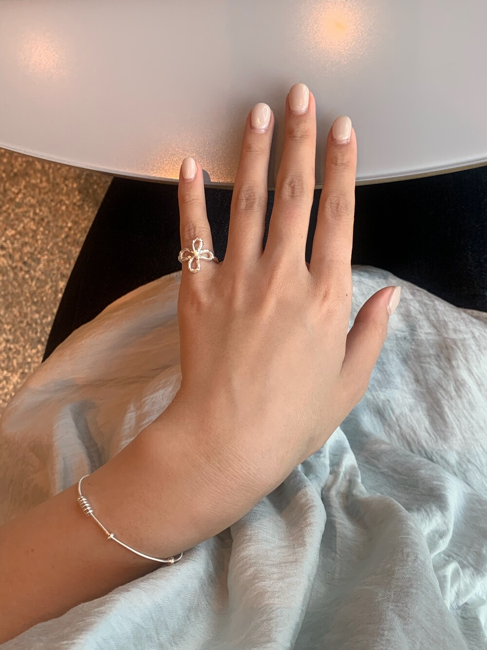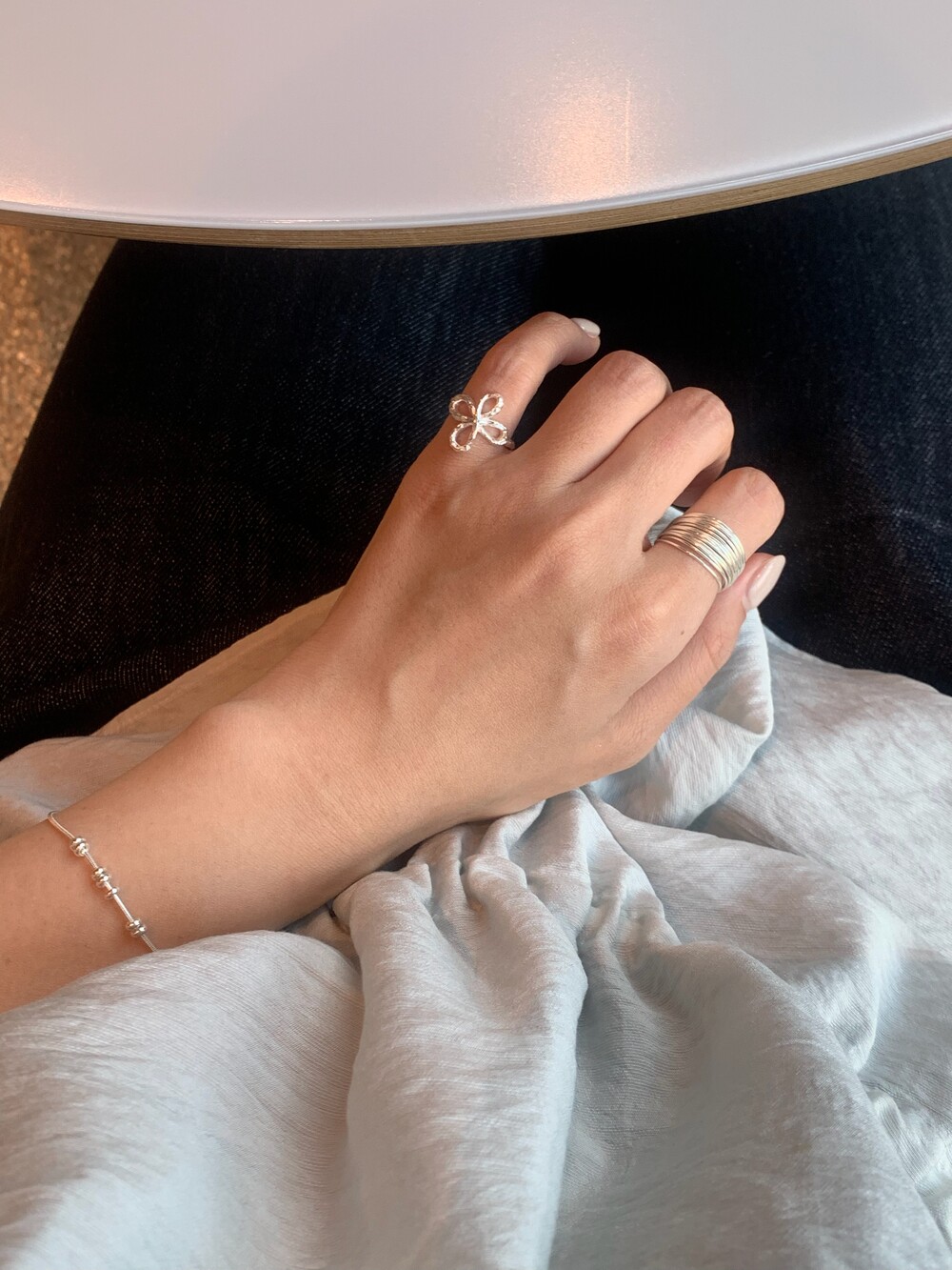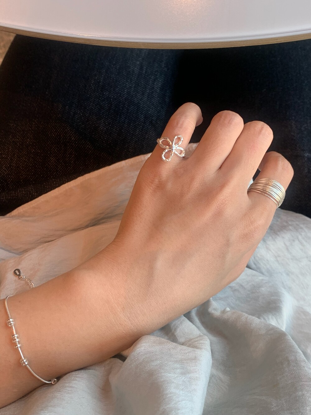 네개의 입체적인 꽃잎이 손끝에서 부드럽게 퍼지며, 단독착용만으로도 특별한 포인트가 됩니다.