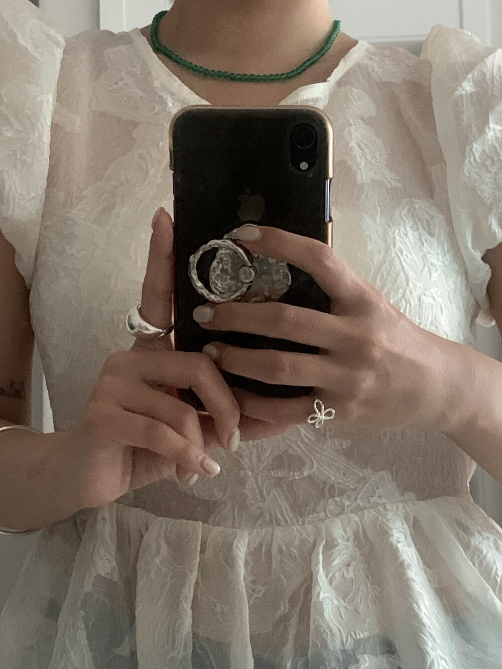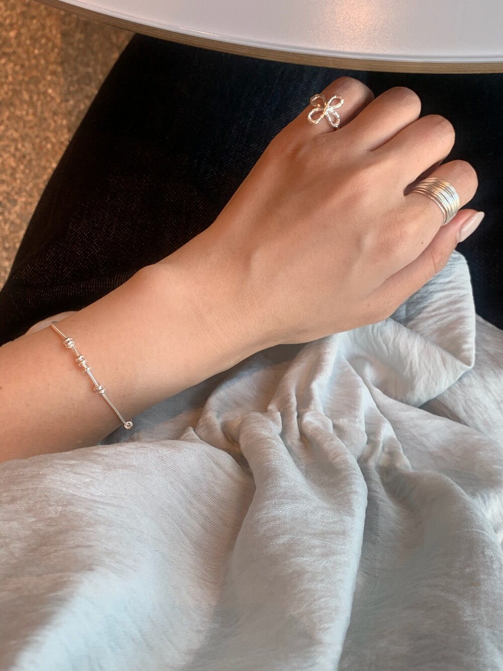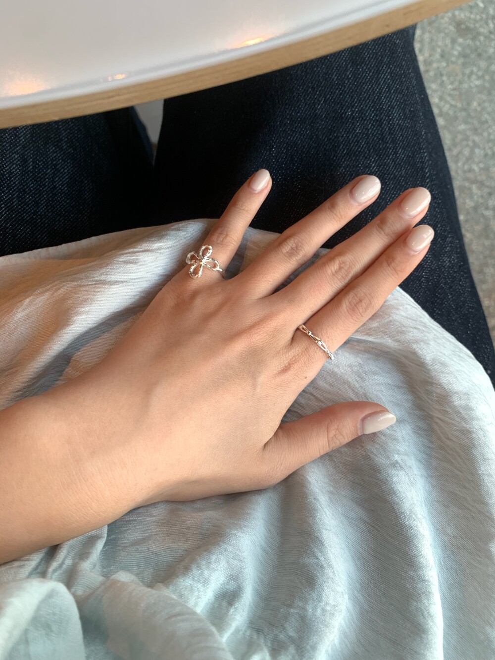 네개의 입체적인 꽃잎이 손끝에서 부드럽게 퍼지며, 단독착용만으로도 특별한 포인트가 됩니다.