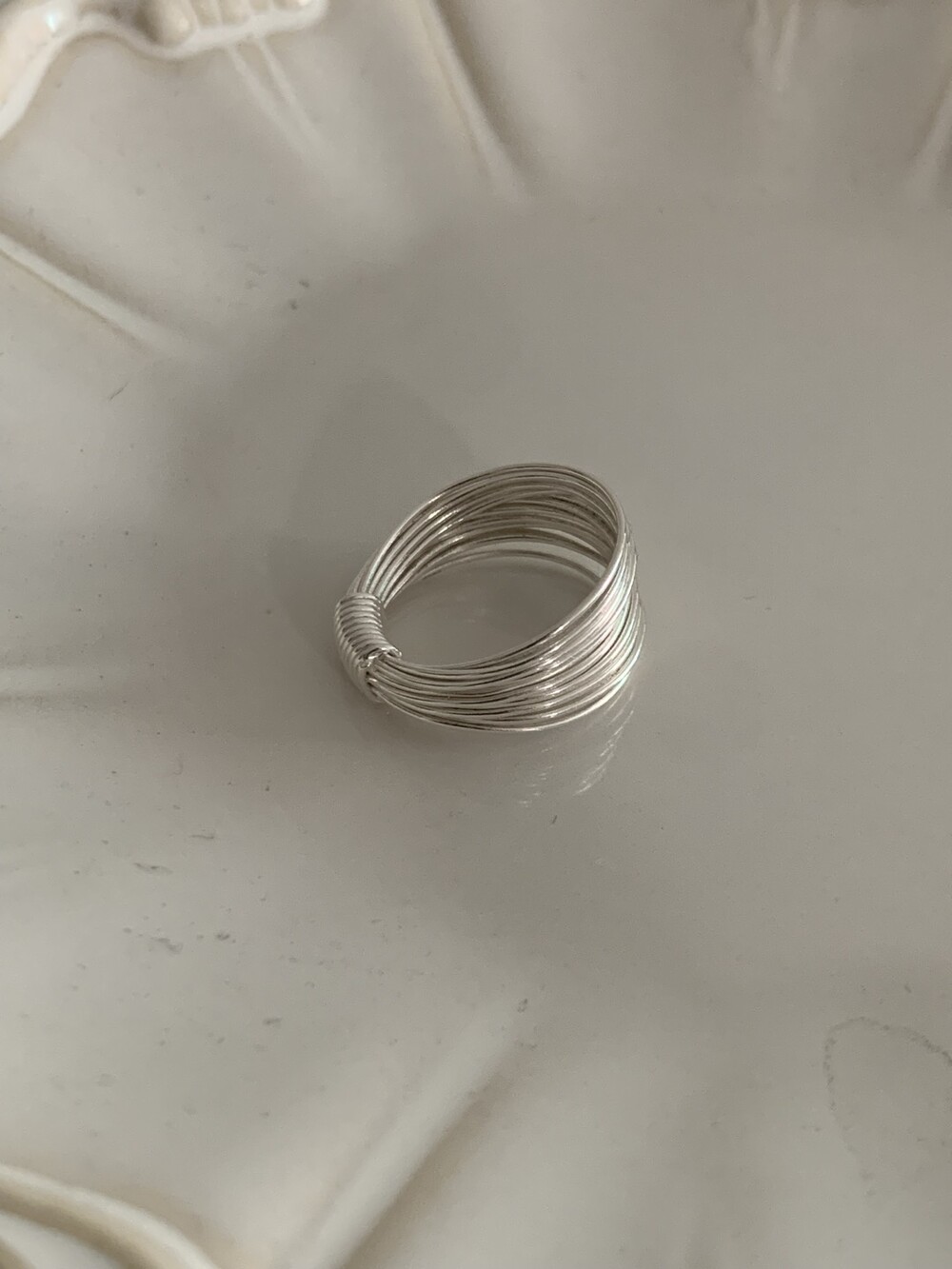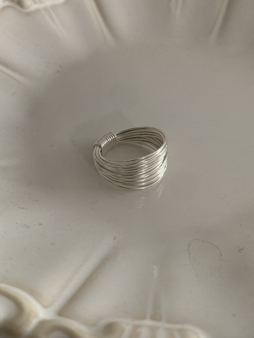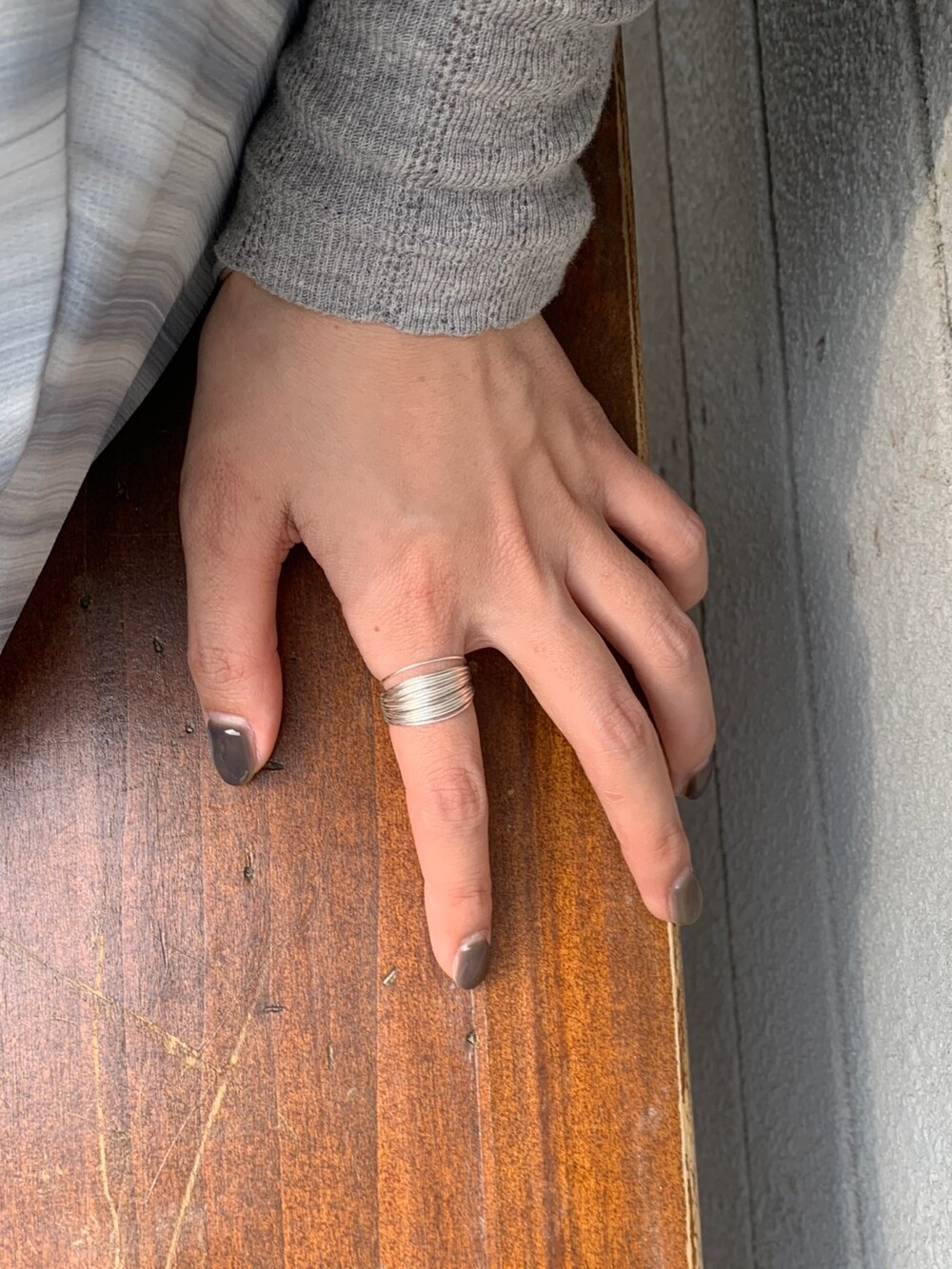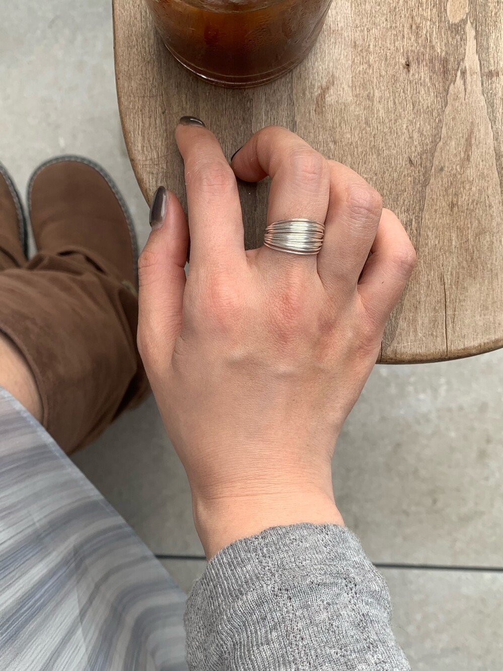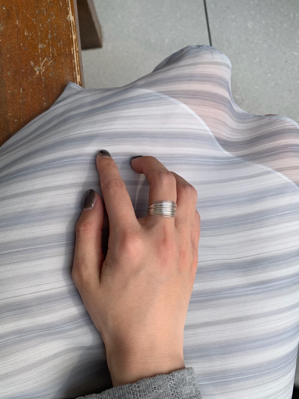 손끝을 감싸듯 겹겹이 감긴 실타래 텍스처가 인상적인 링.