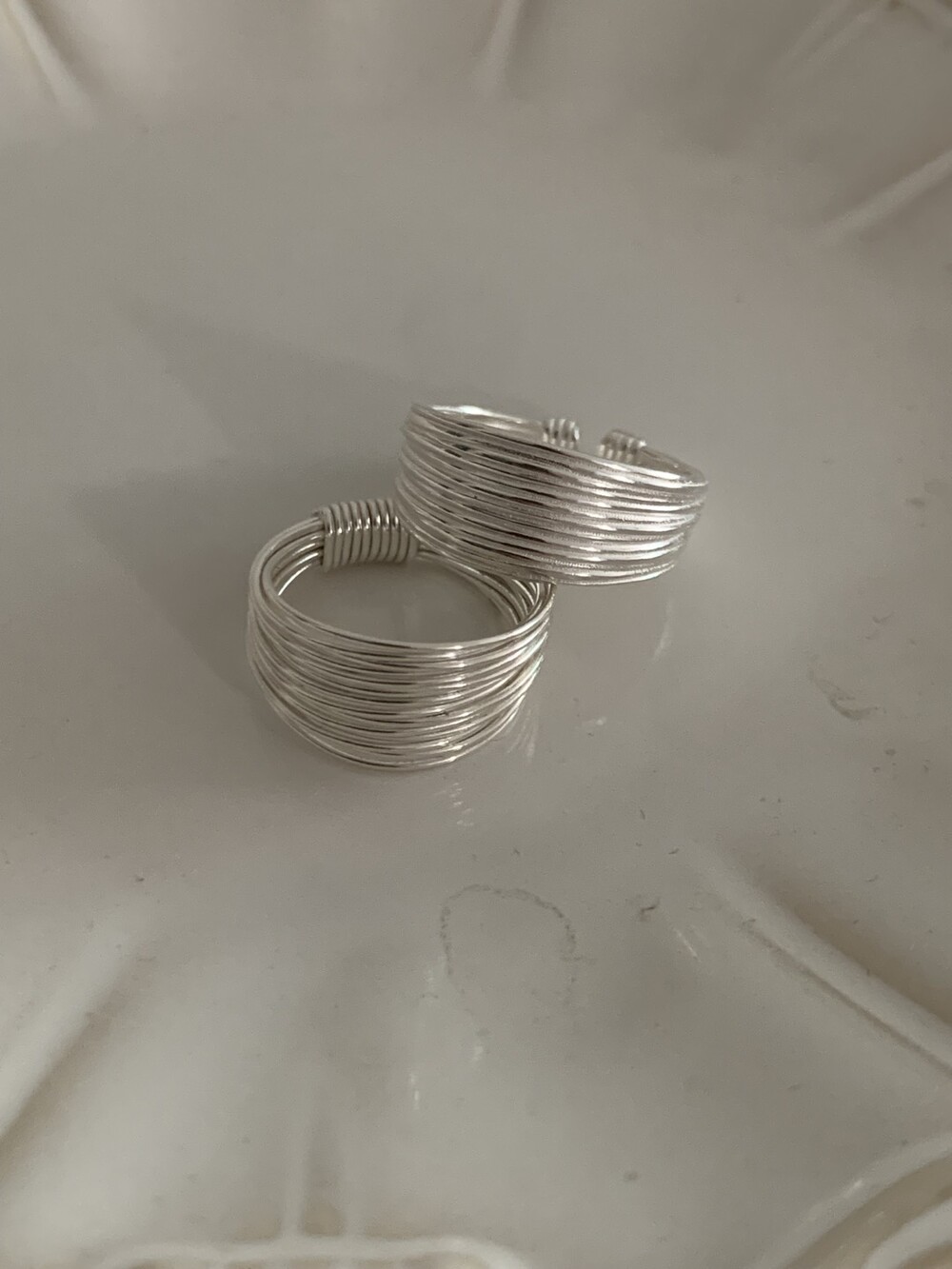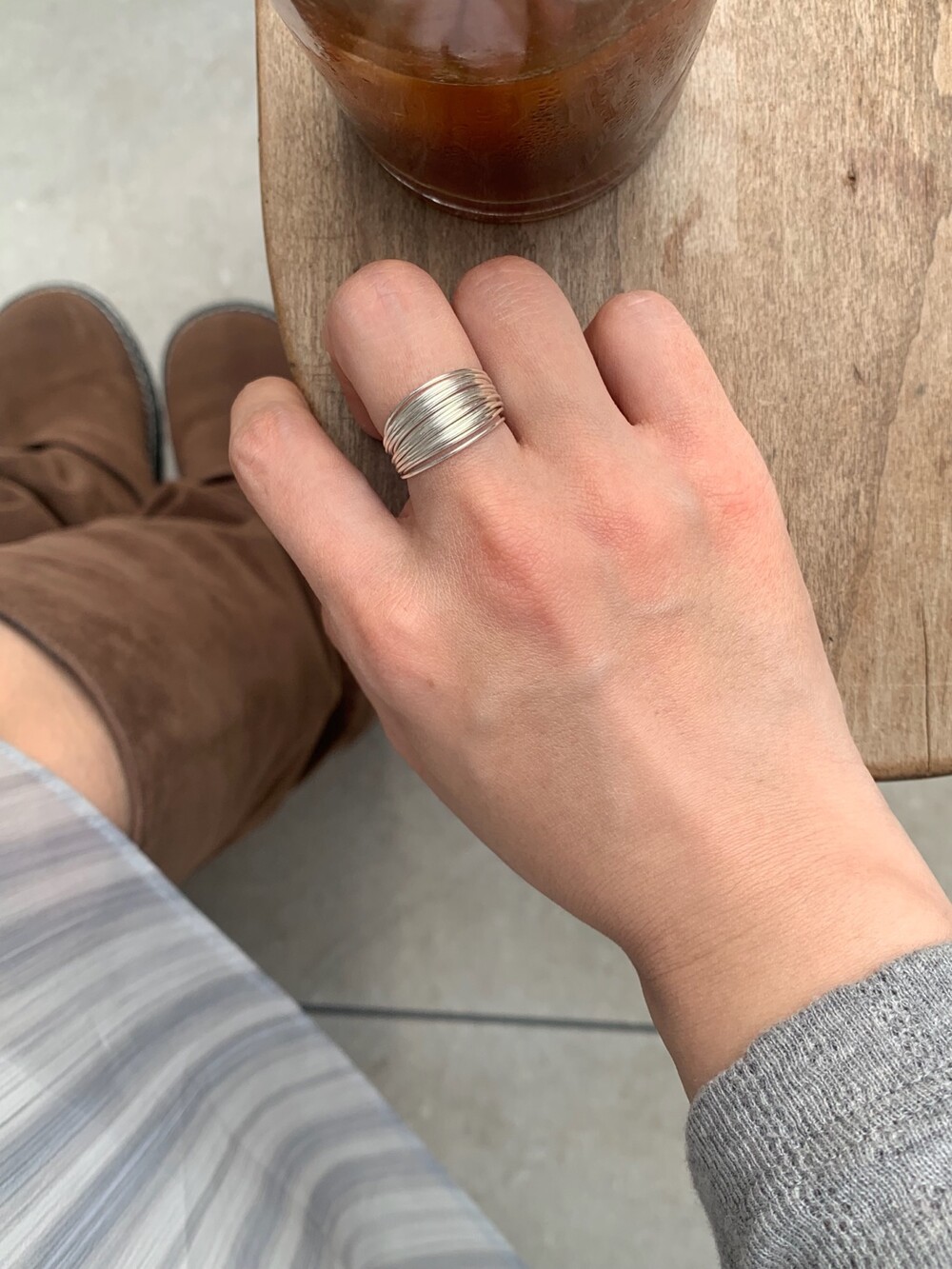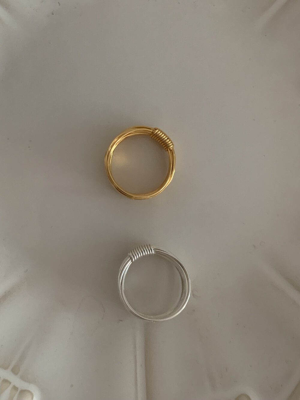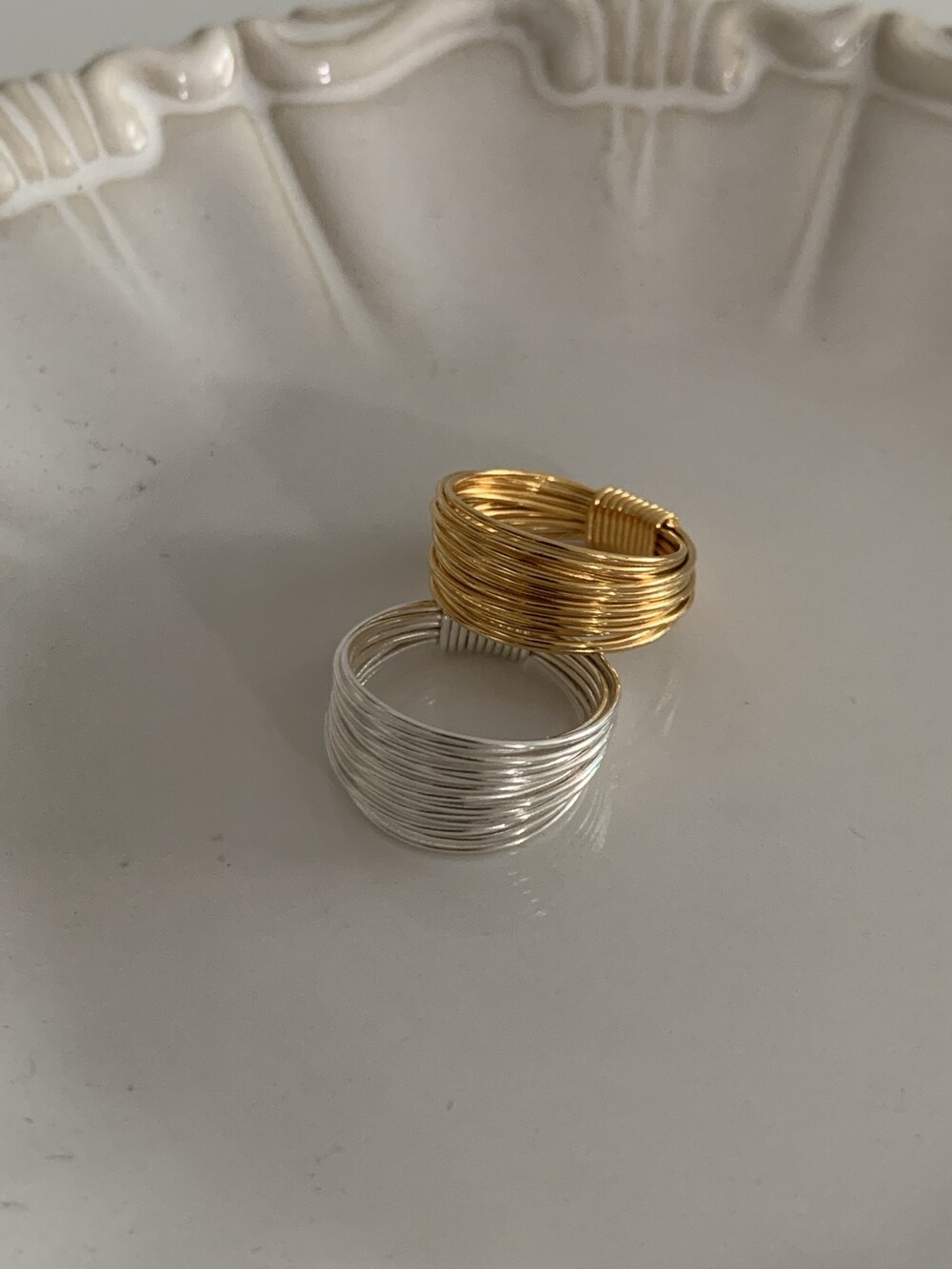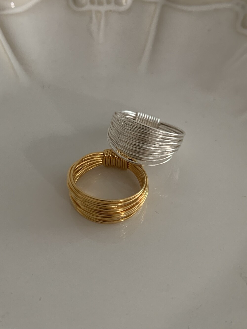 손끝을 감싸듯 겹겹이 감긴 실타래 텍스처가 인상적인 링.