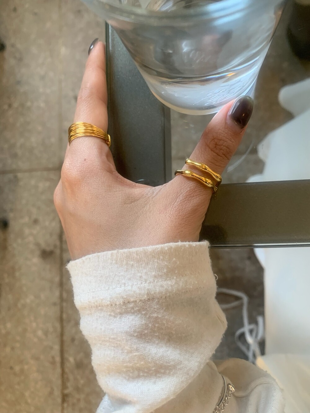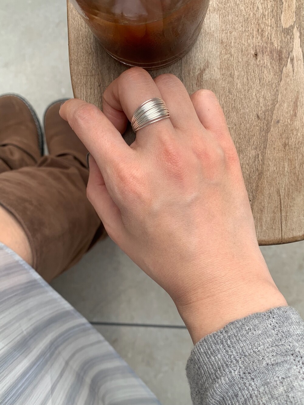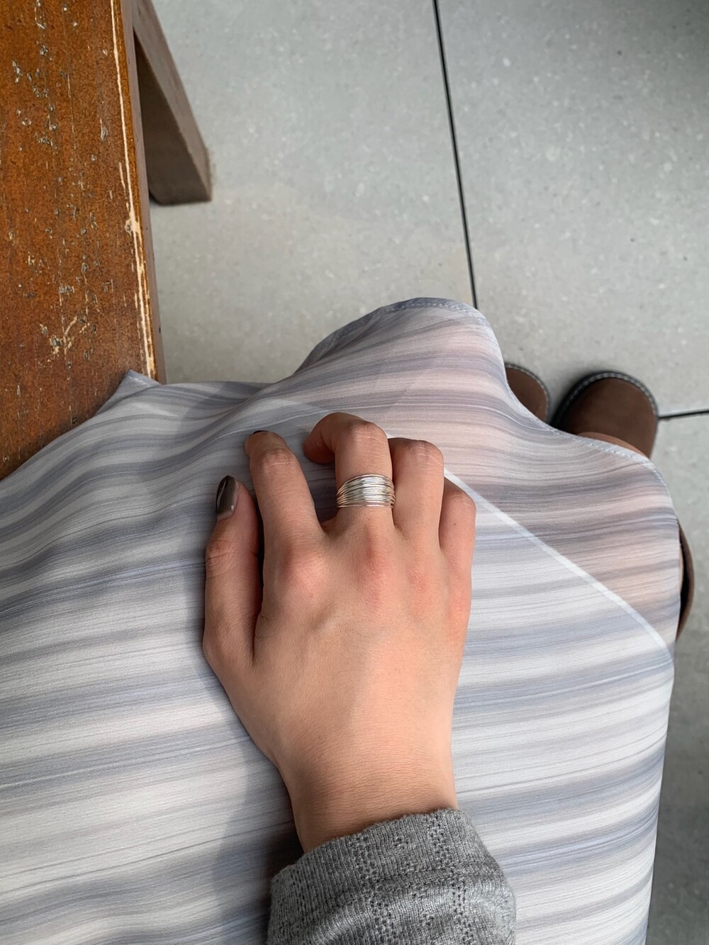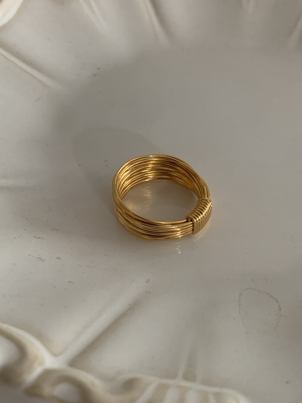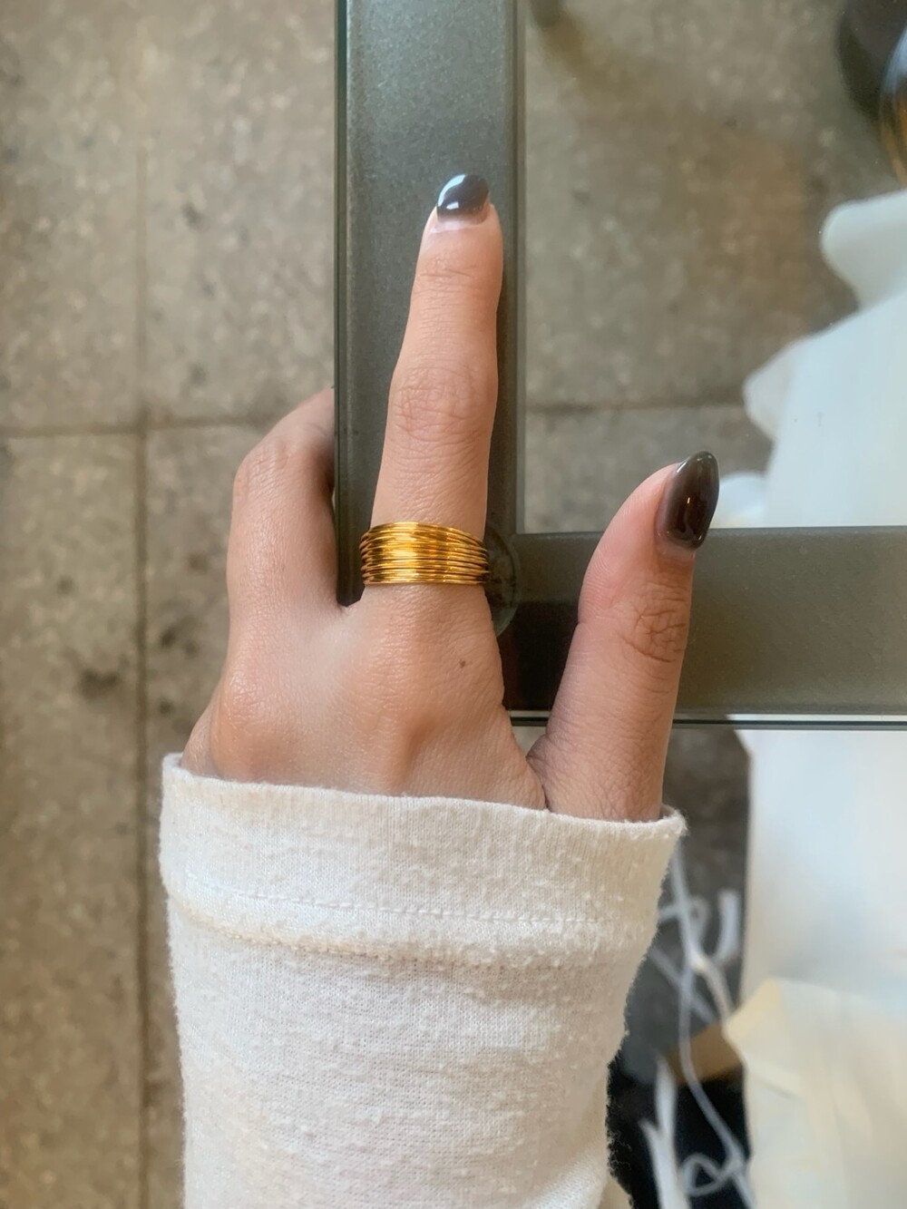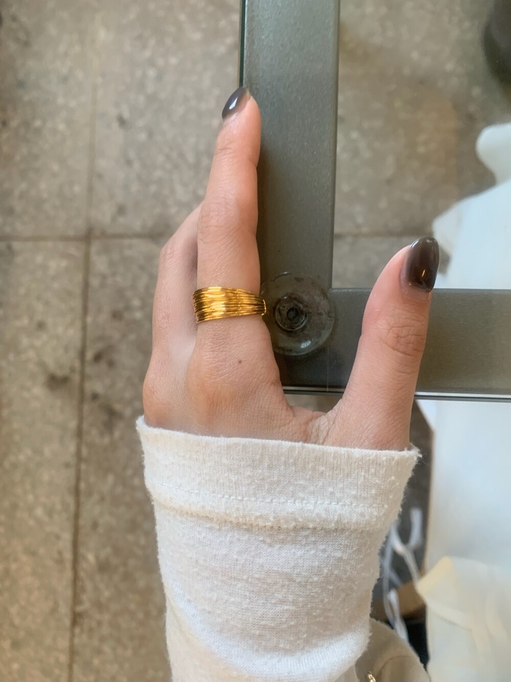 손끝을 감싸듯 겹겹이 감긴 실타래 텍스처가 인상적인 링.