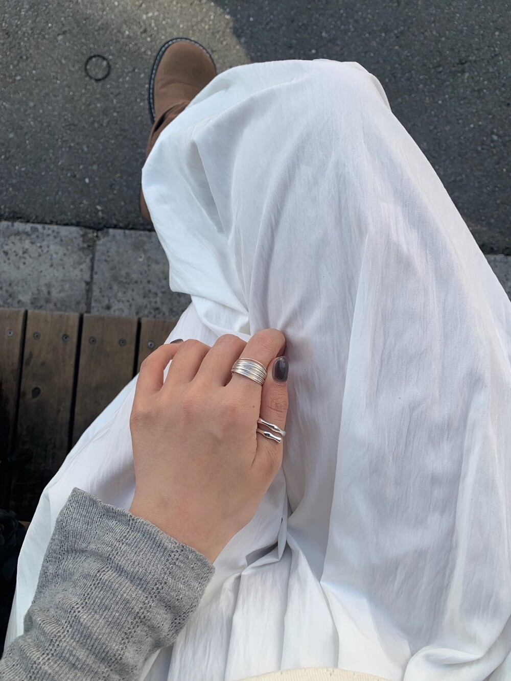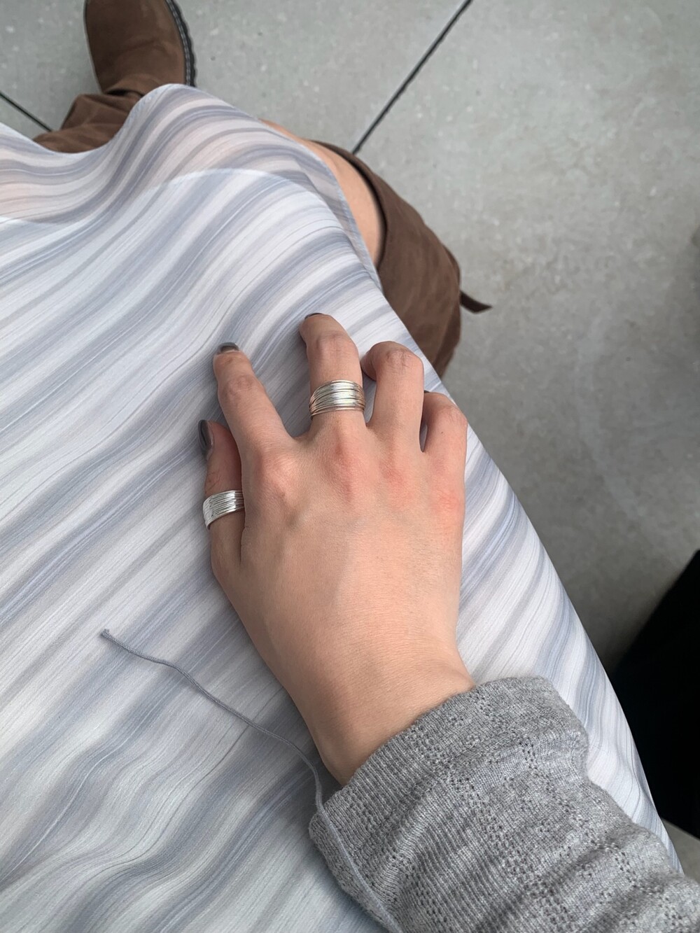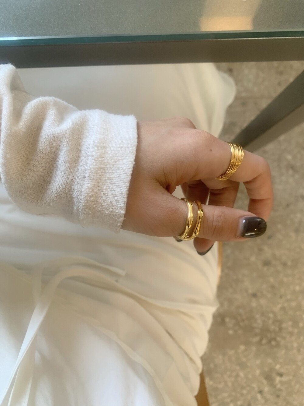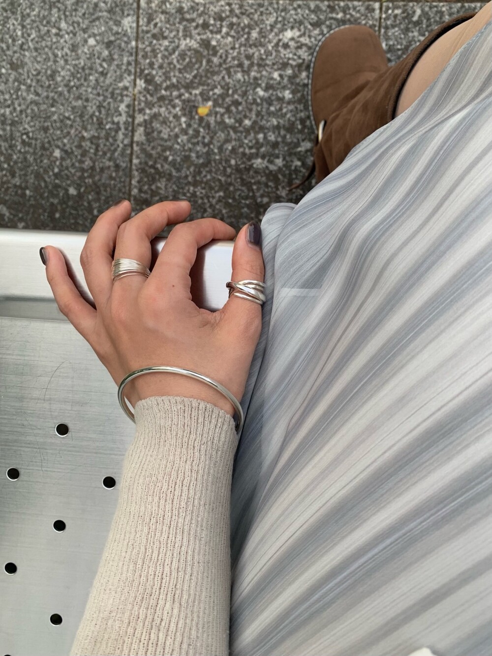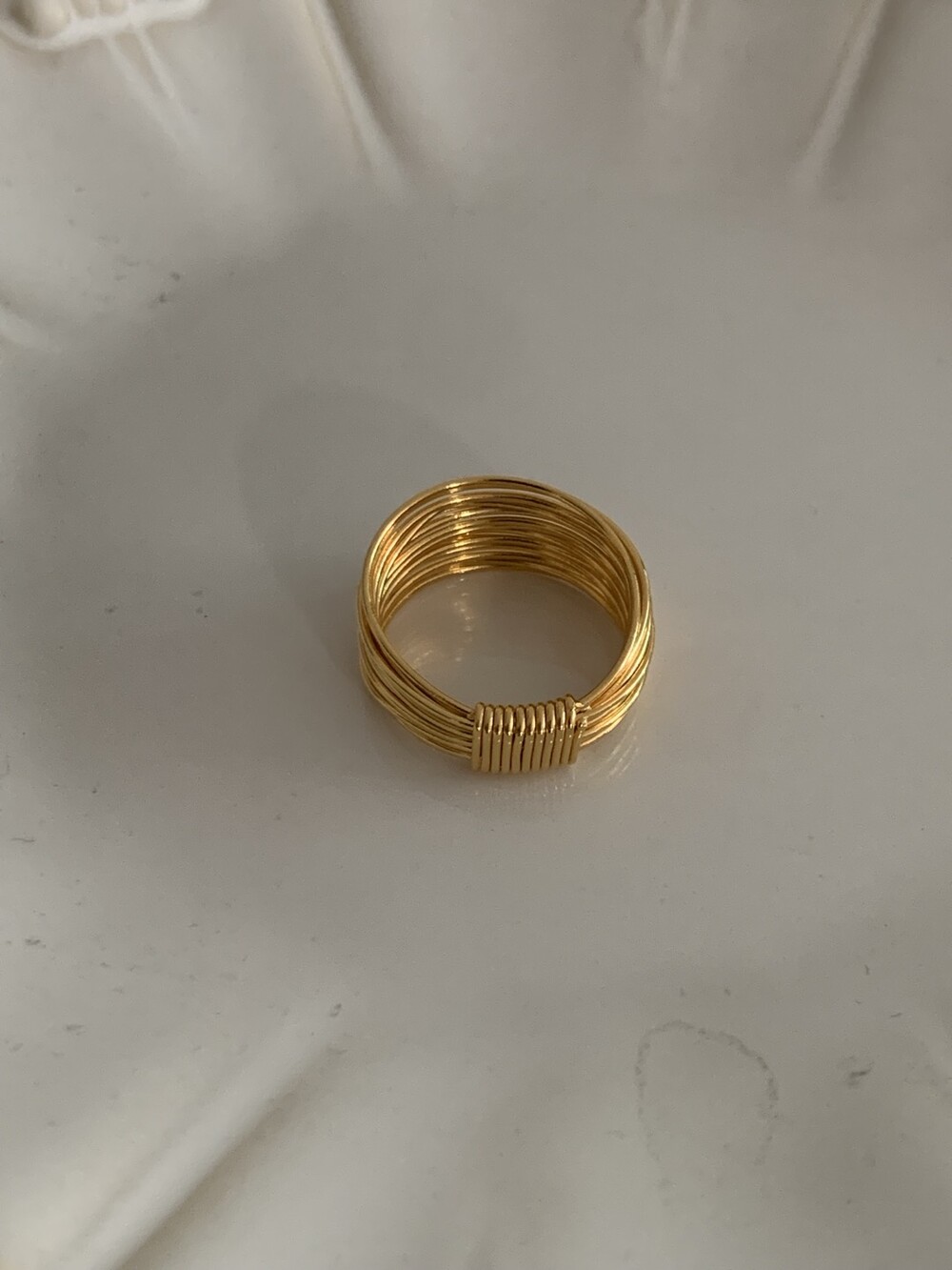 손끝을 감싸듯 겹겹이 감긴 실타래 텍스처가 인상적인 링.