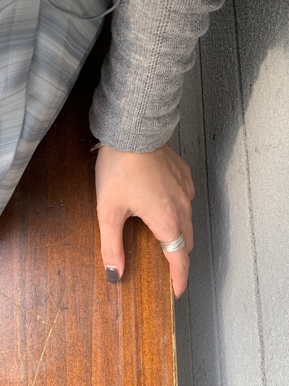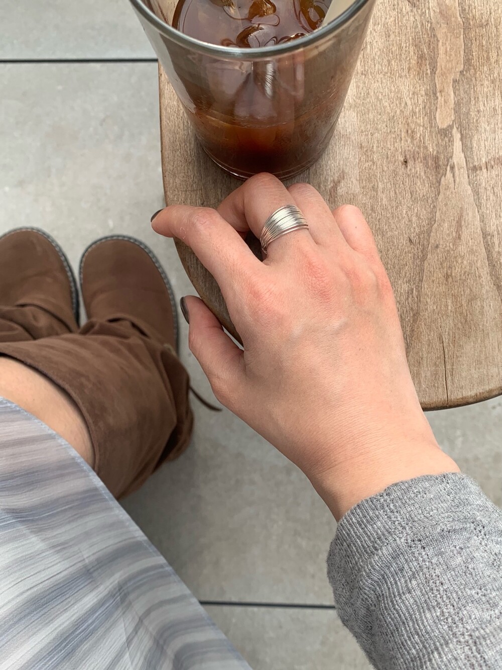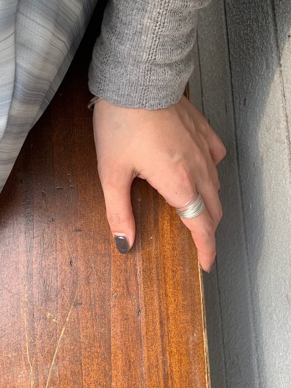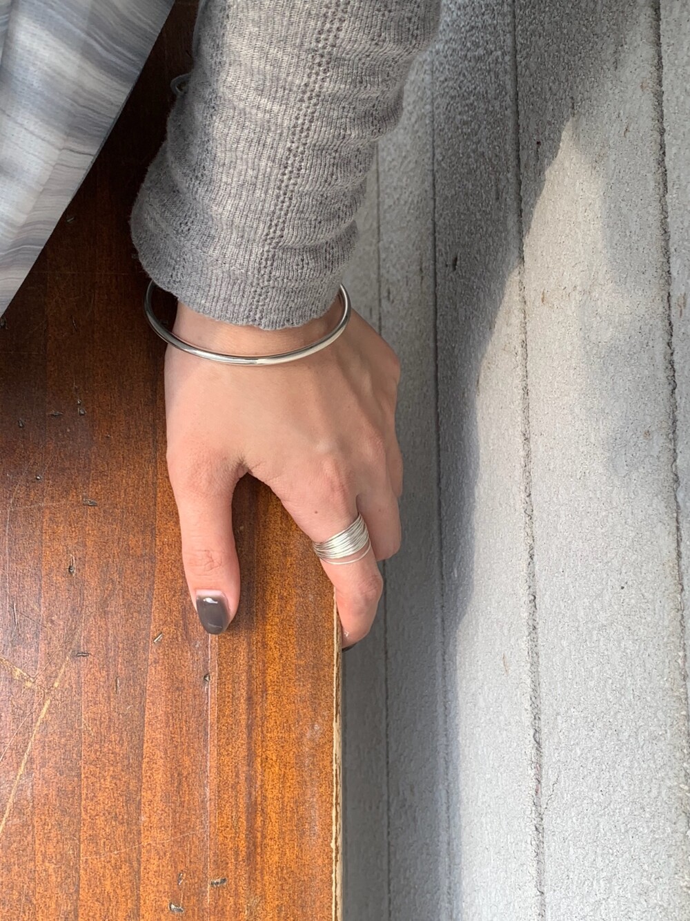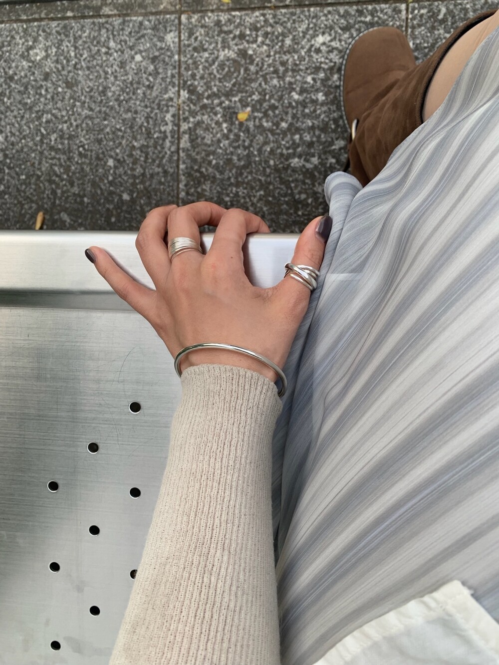 손끝을 감싸듯 겹겹이 감긴 실타래 텍스처가 인상적인 링.