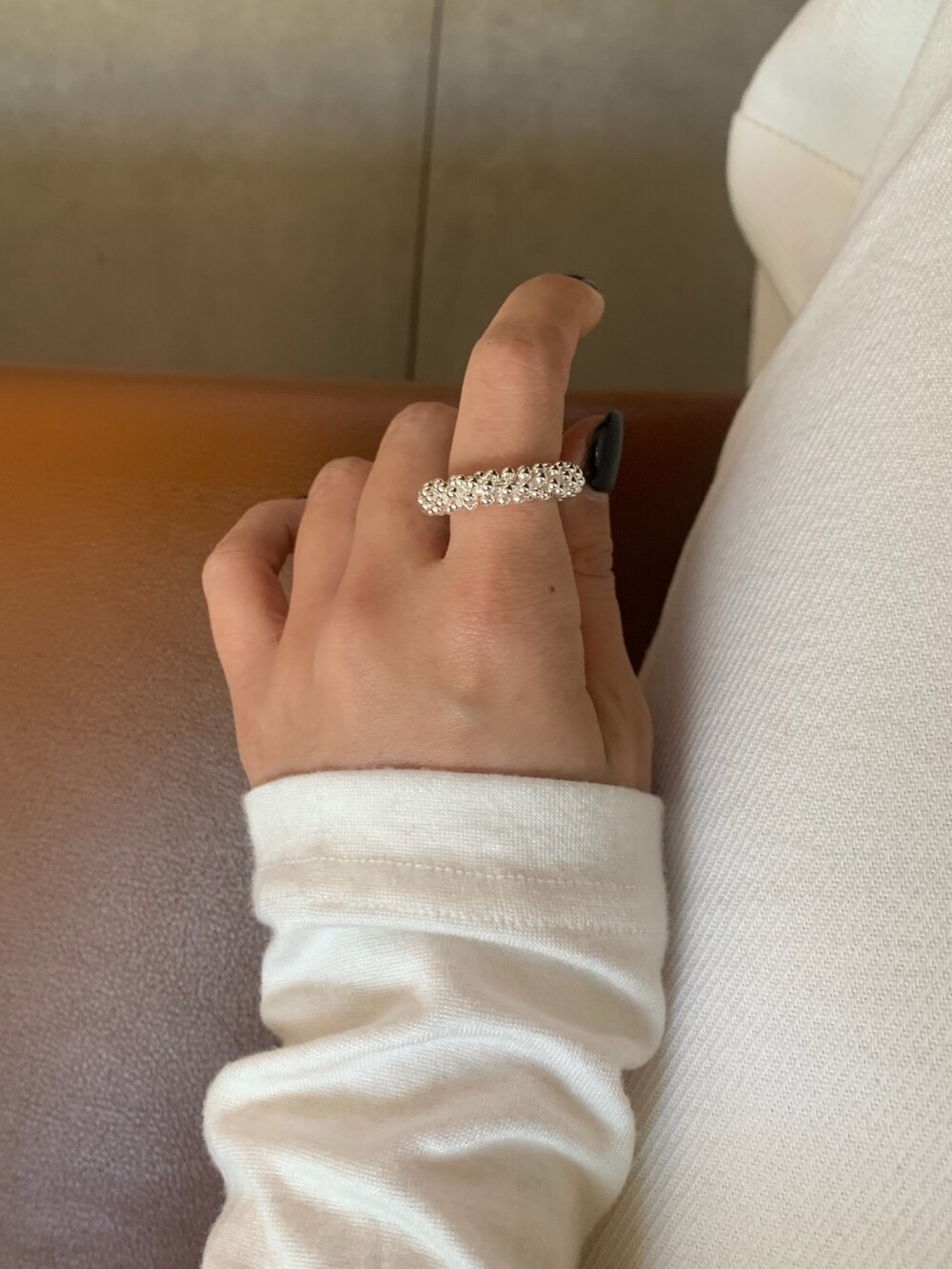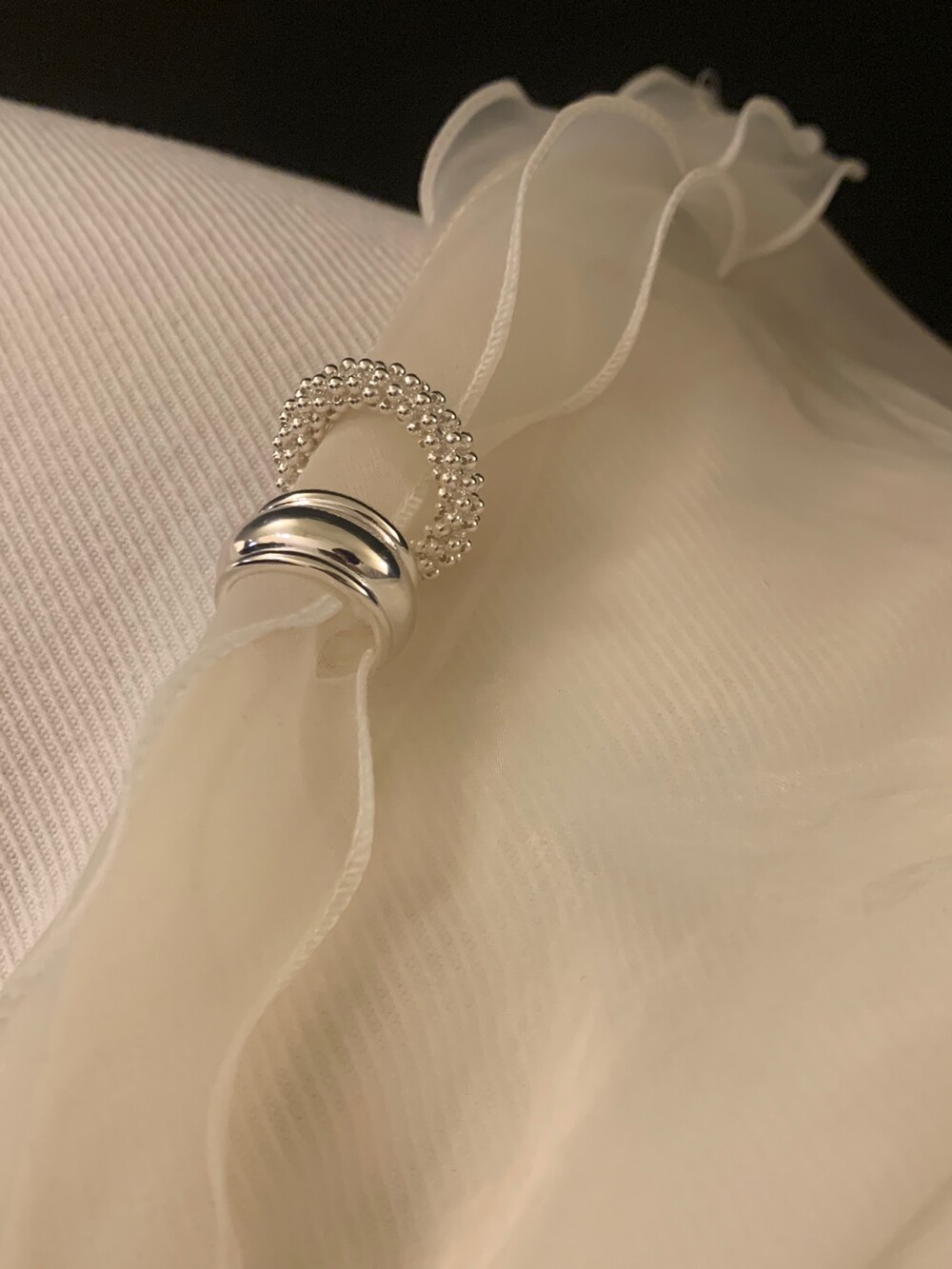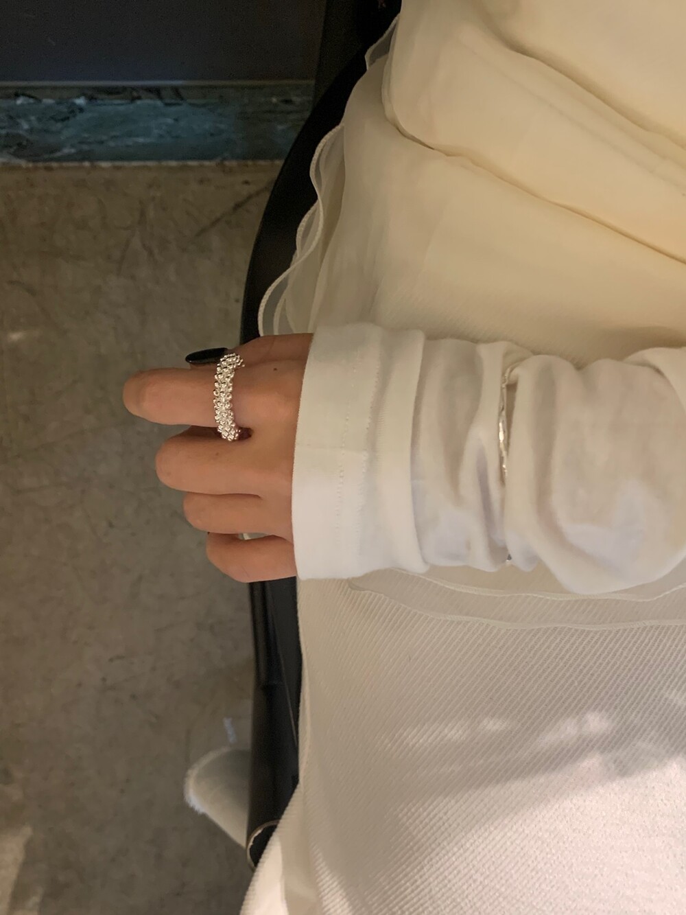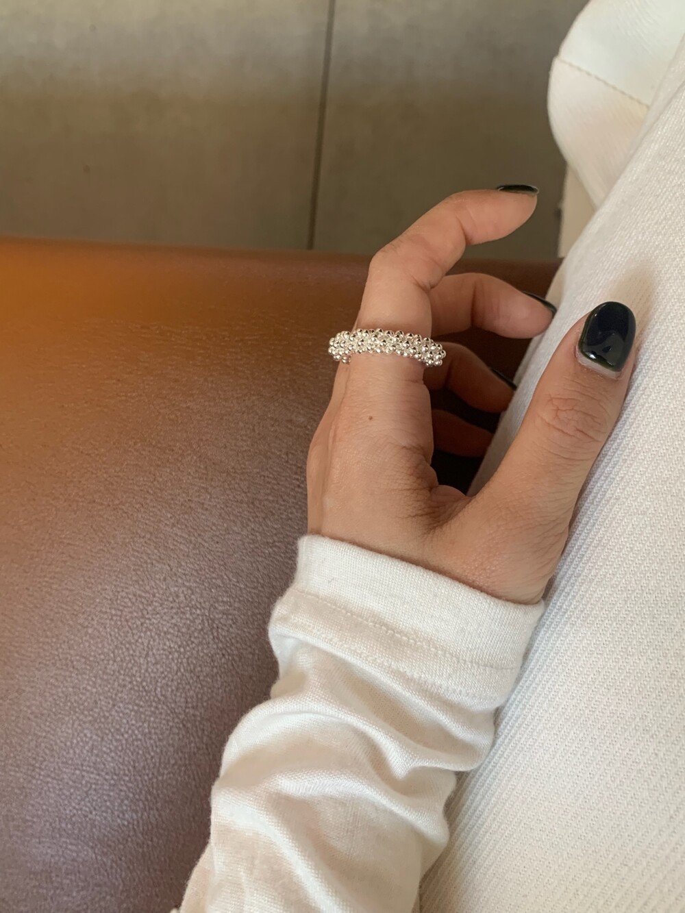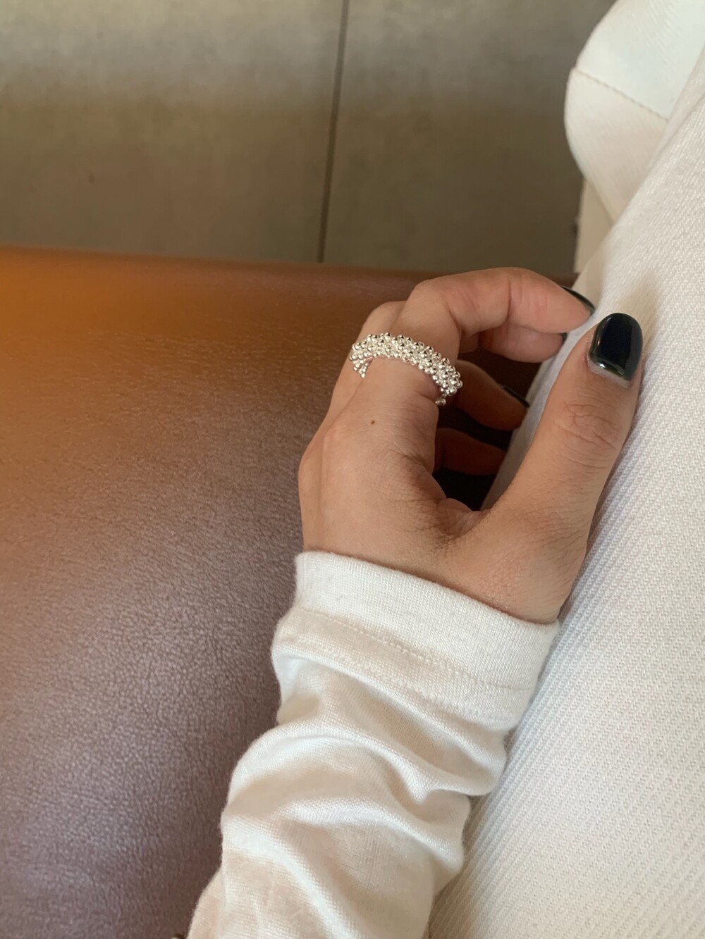 작은 실버볼들이 겹겹이 이어져 입체적인 실루엣을 그려낸 감각적인 오픈링을 소개해드려요.
