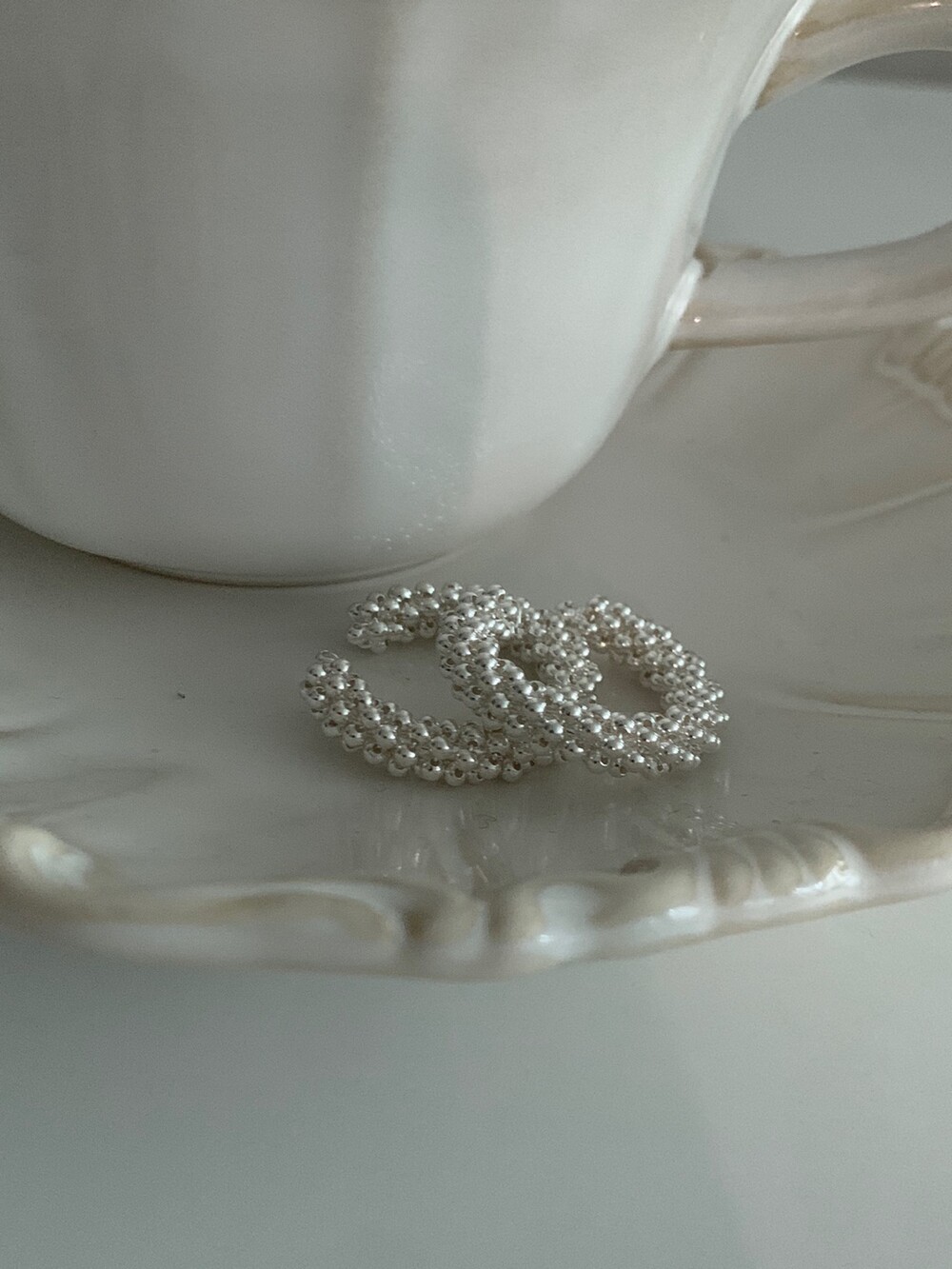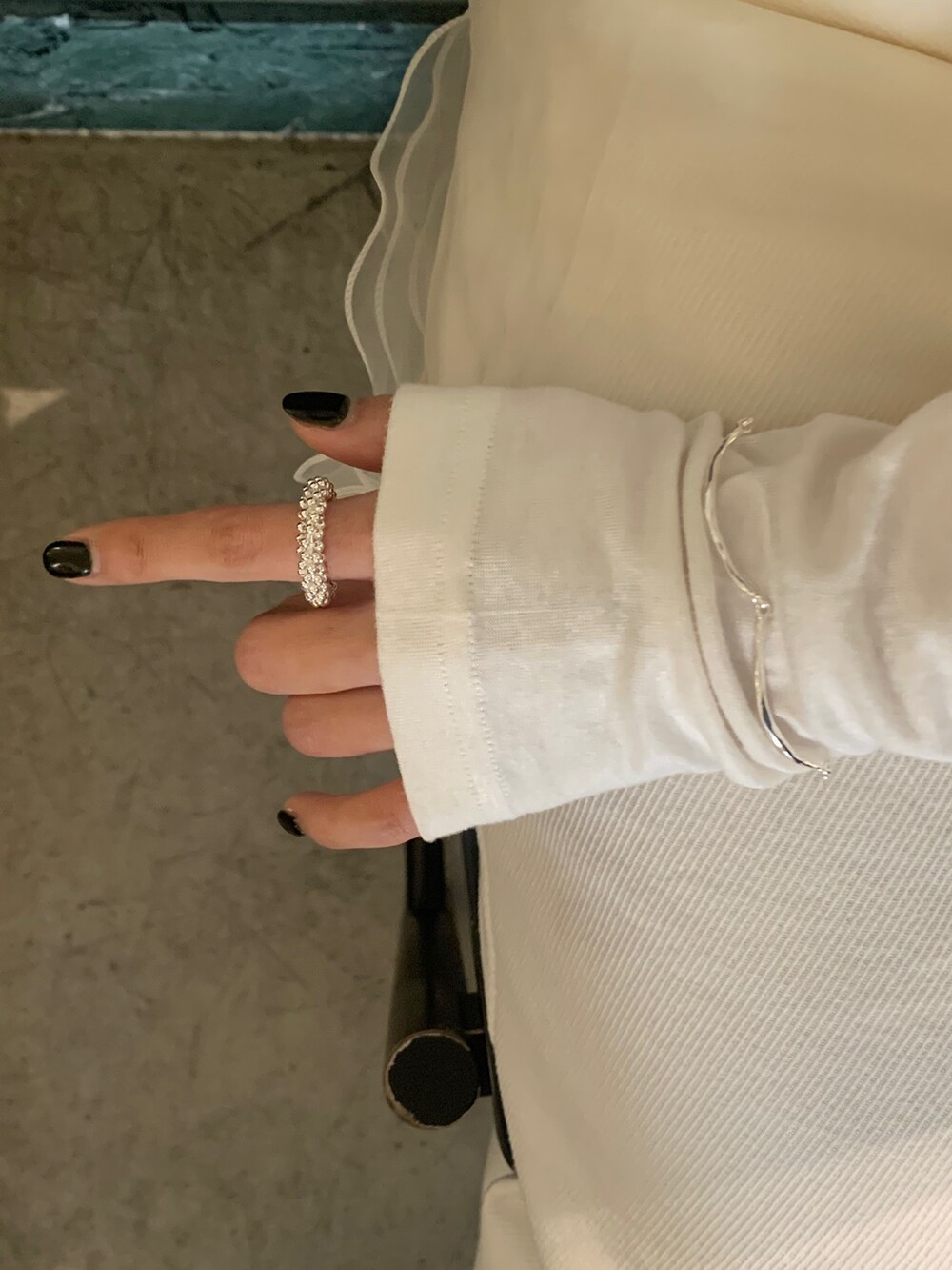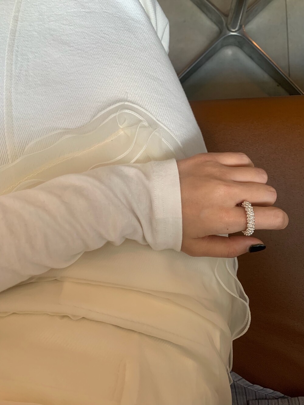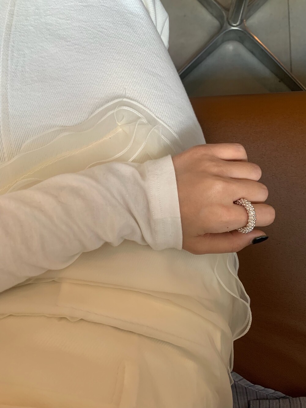 작은 실버볼들이 겹겹이 이어져 입체적인 실루엣을 그려낸 감각적인 오픈링을 소개해드려요.