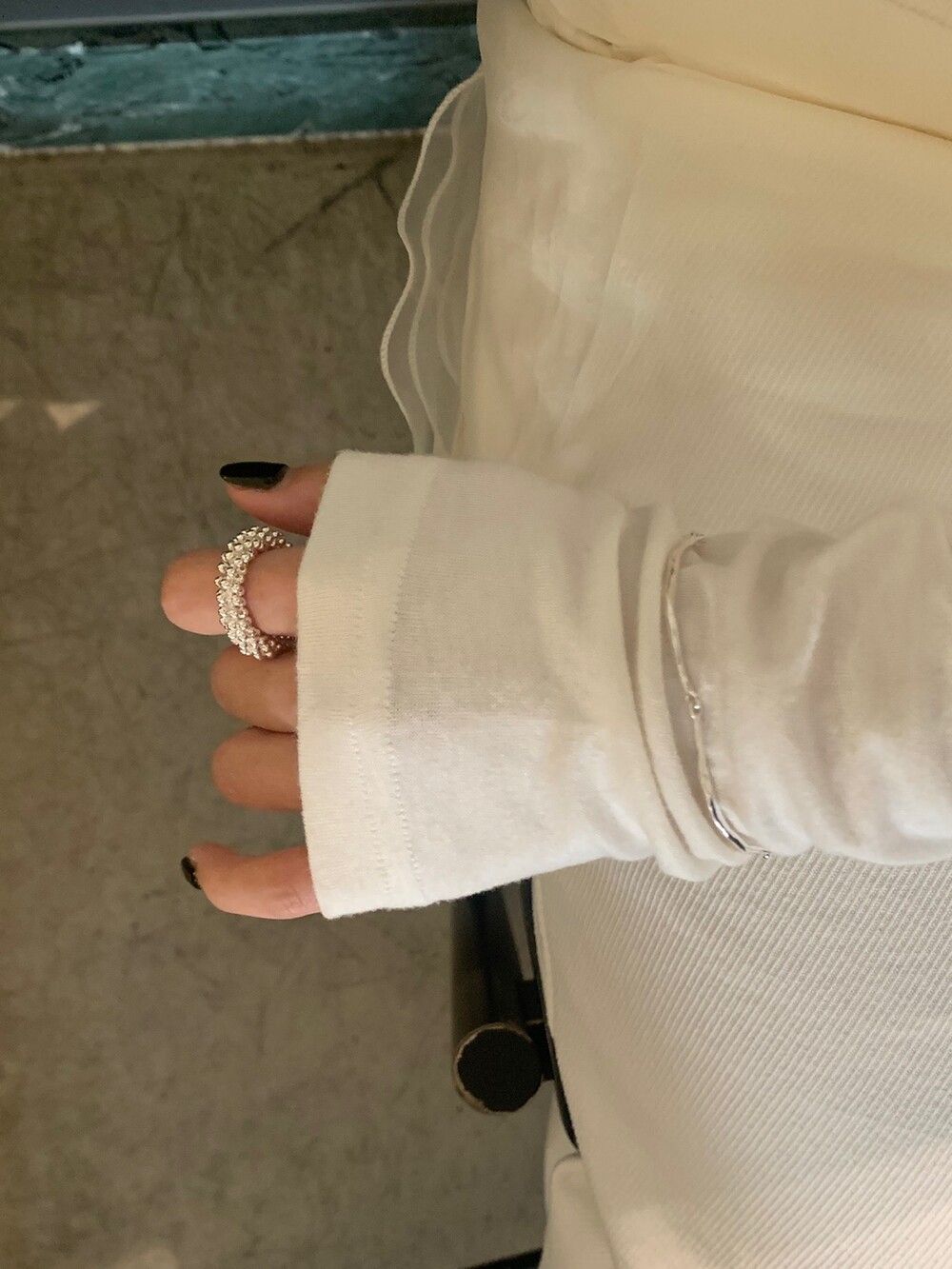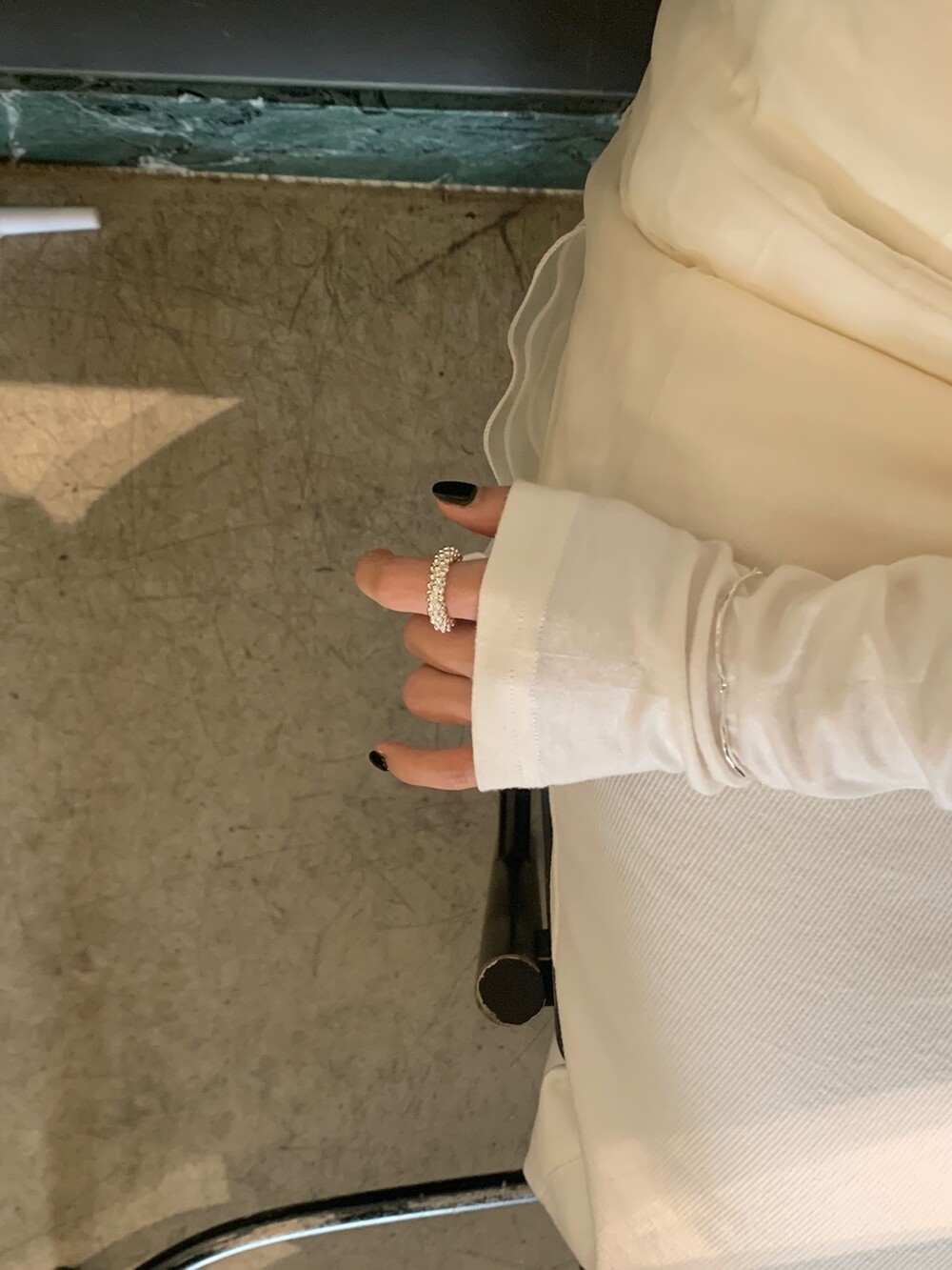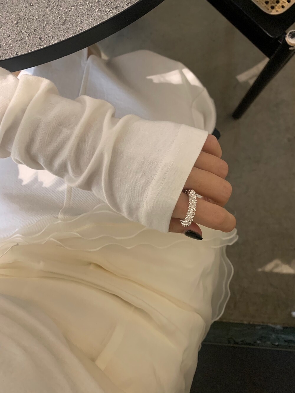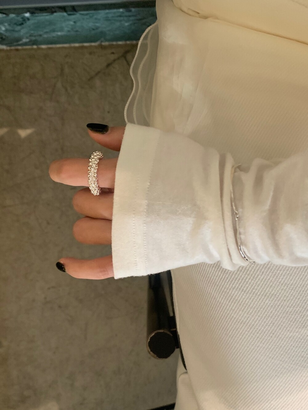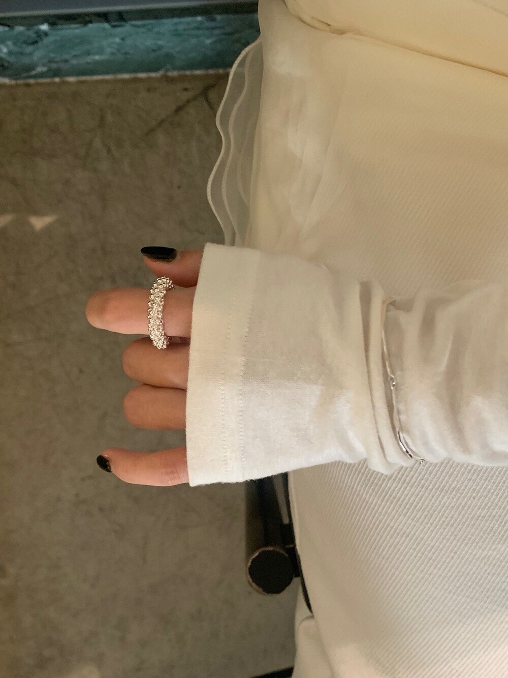 작은 실버볼들이 겹겹이 이어져 입체적인 실루엣을 그려낸 감각적인 오픈링을 소개해드려요.